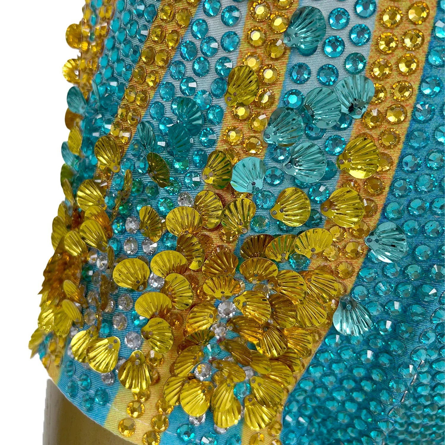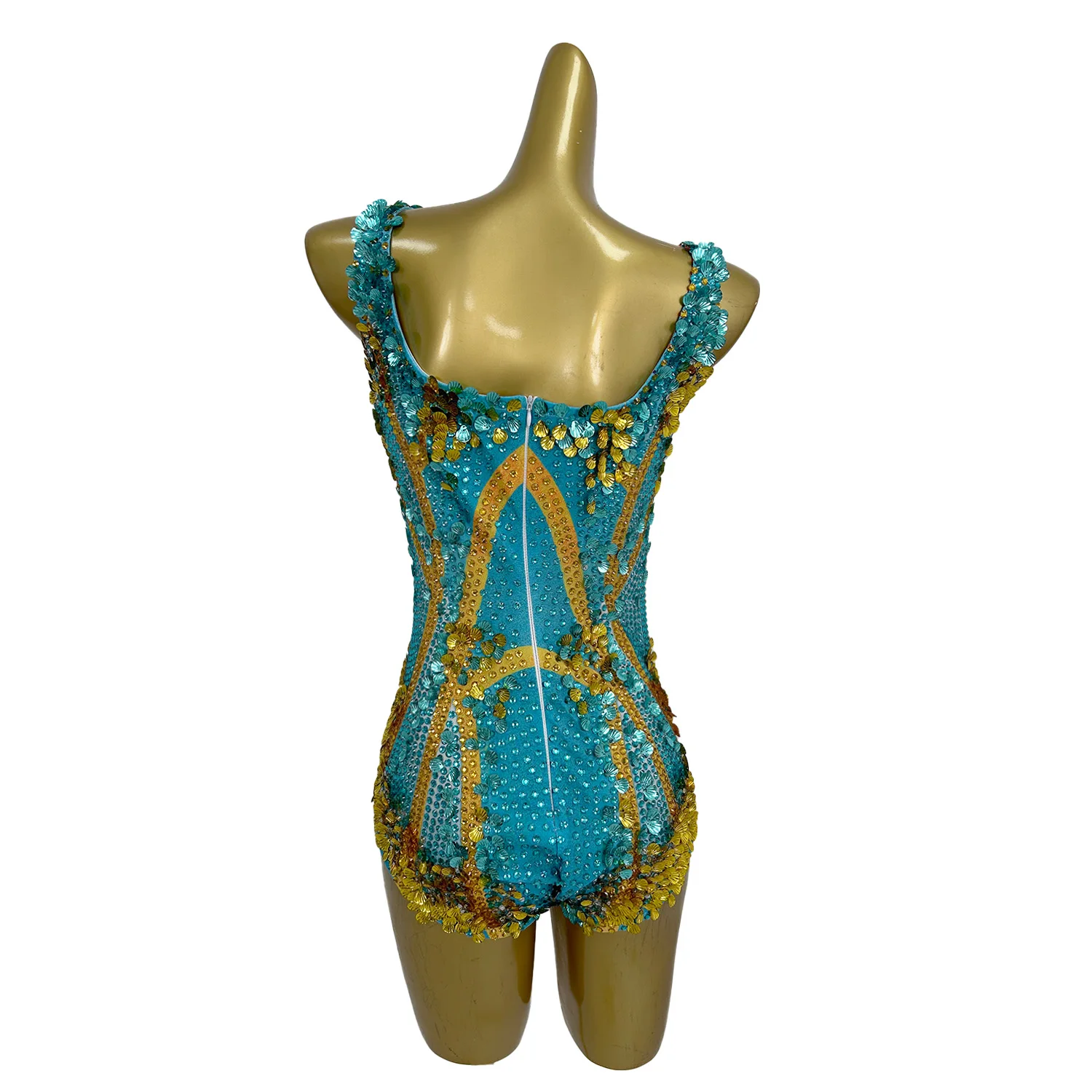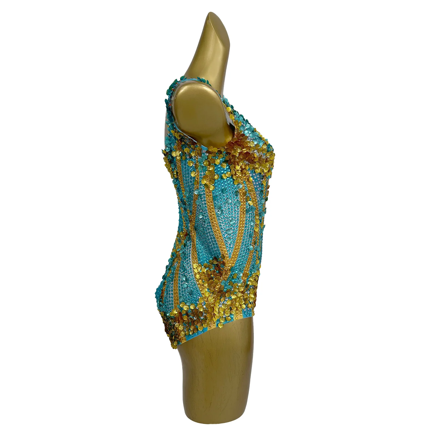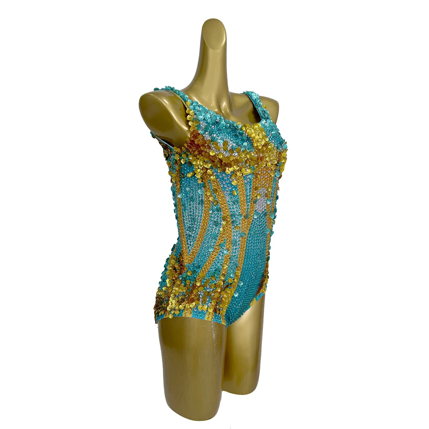 Singer Sexy Stage Costume Sparkly Gold Full Rhinestones Sequins Sling Bodysuit Nightclub Party Disco Sleeveless Leotard Meimei