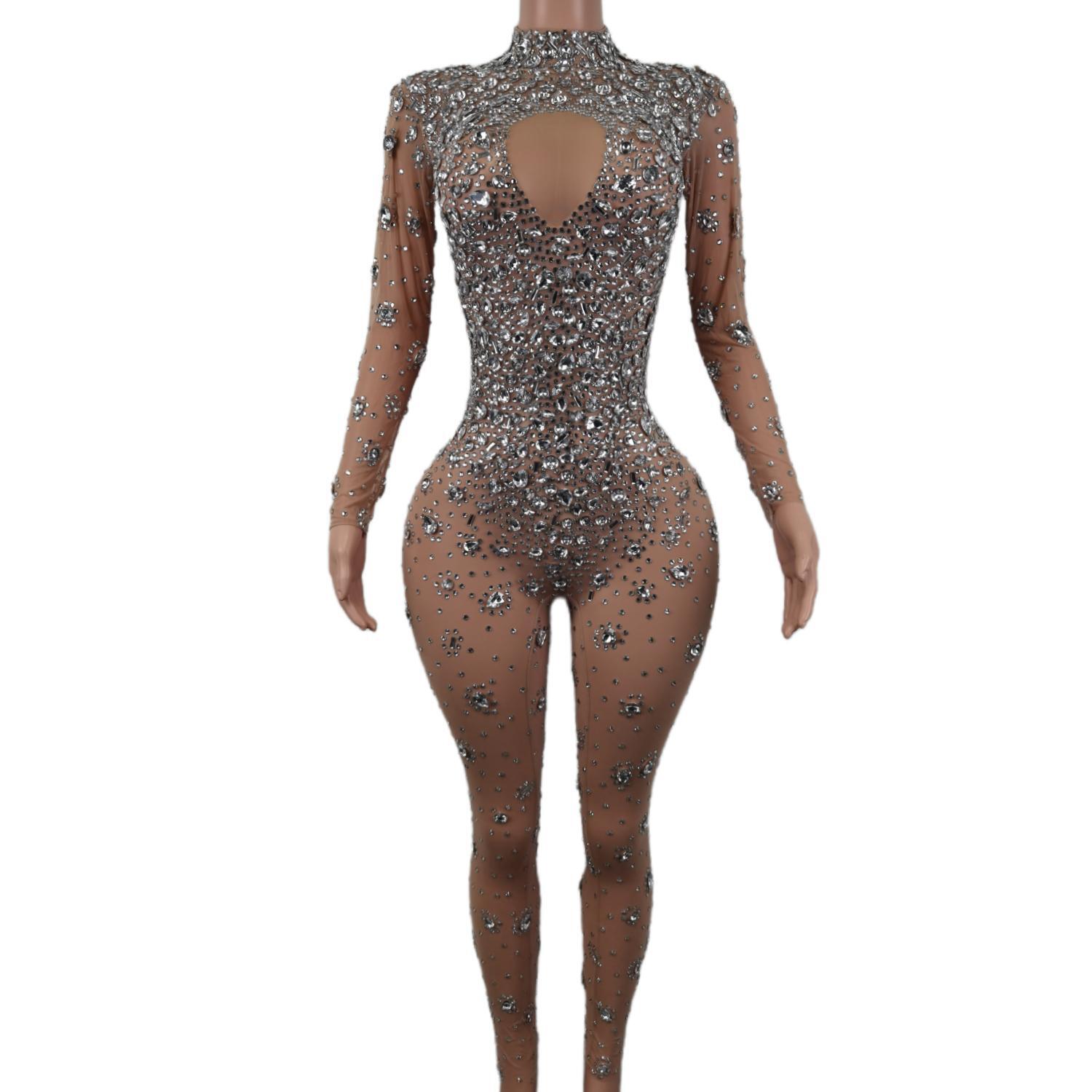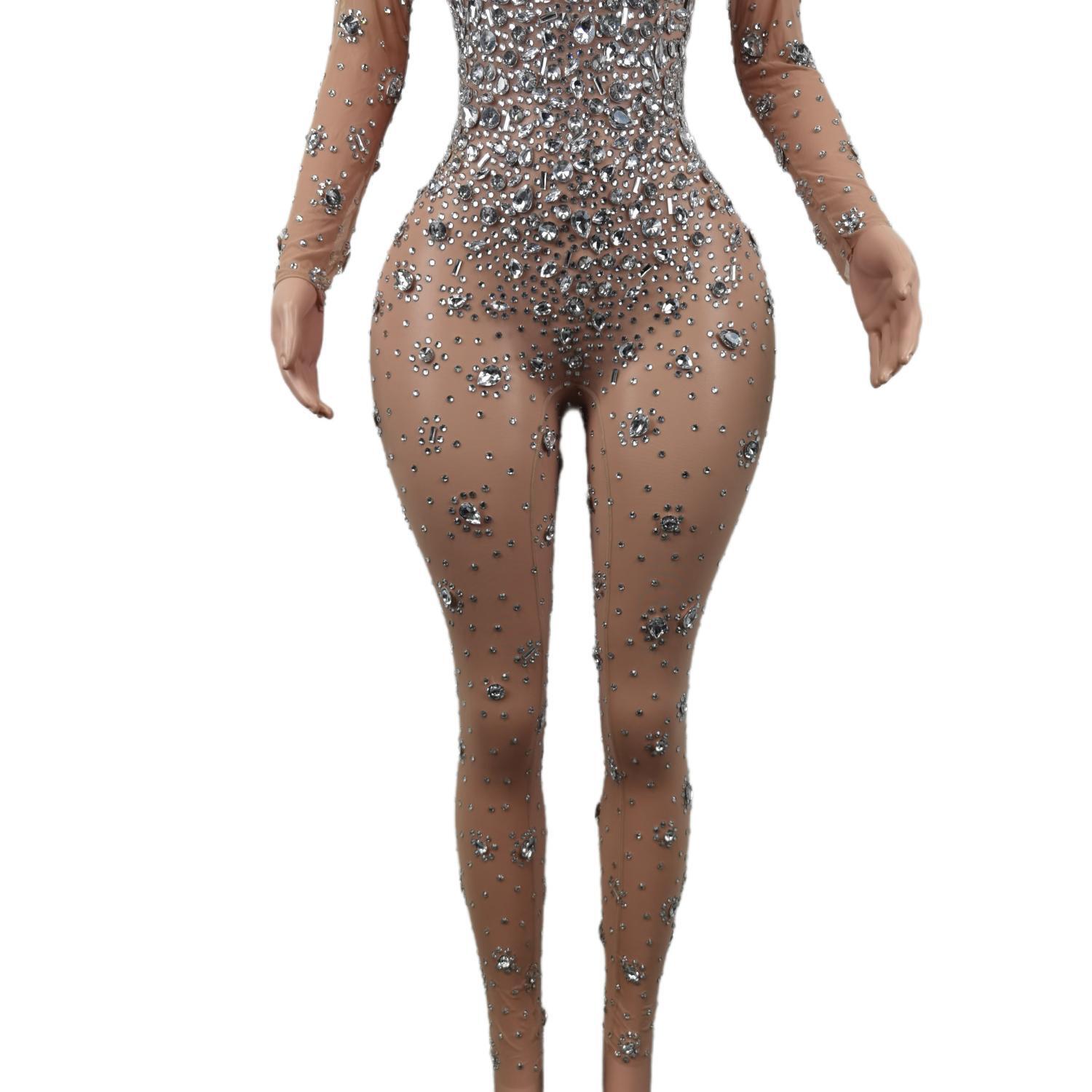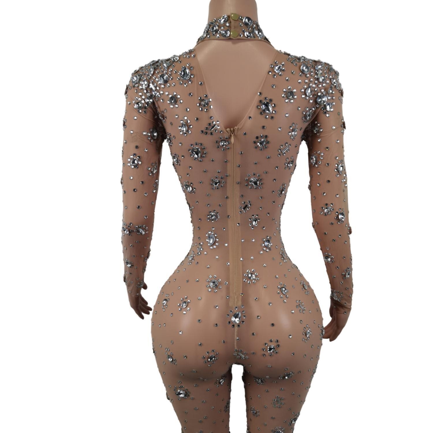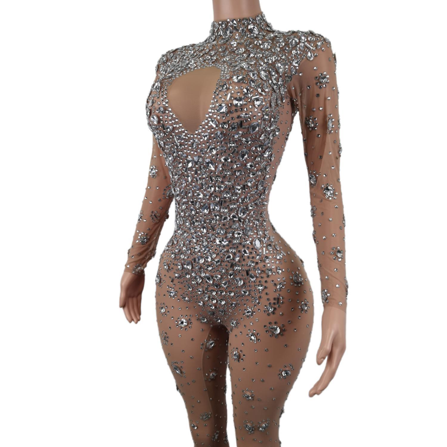 Skinny Crystals Jumpsuit Female Singer Dancer Stones Costume Sexy One-piece Bodysuit Nightclub Oufit Party Leggings Cuican