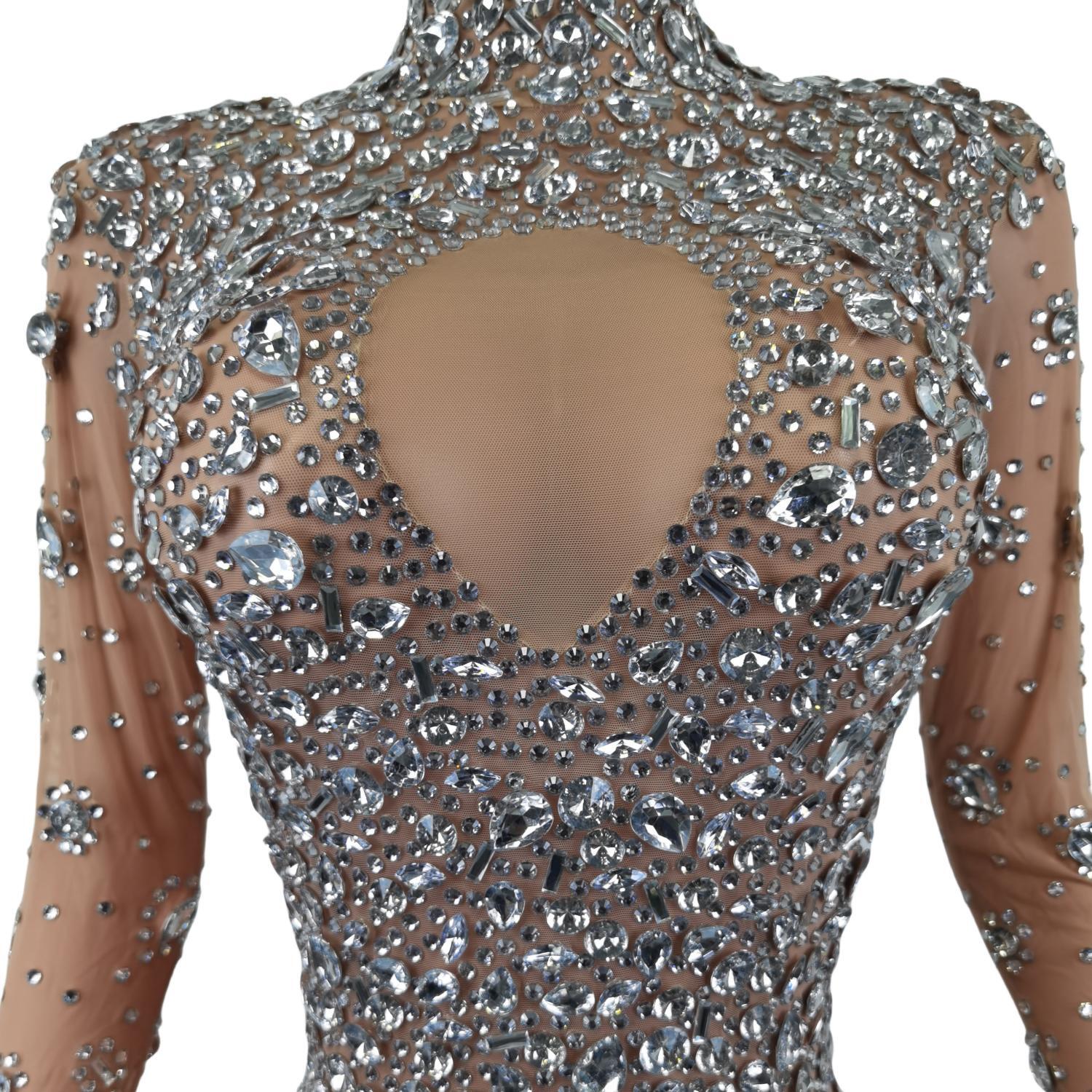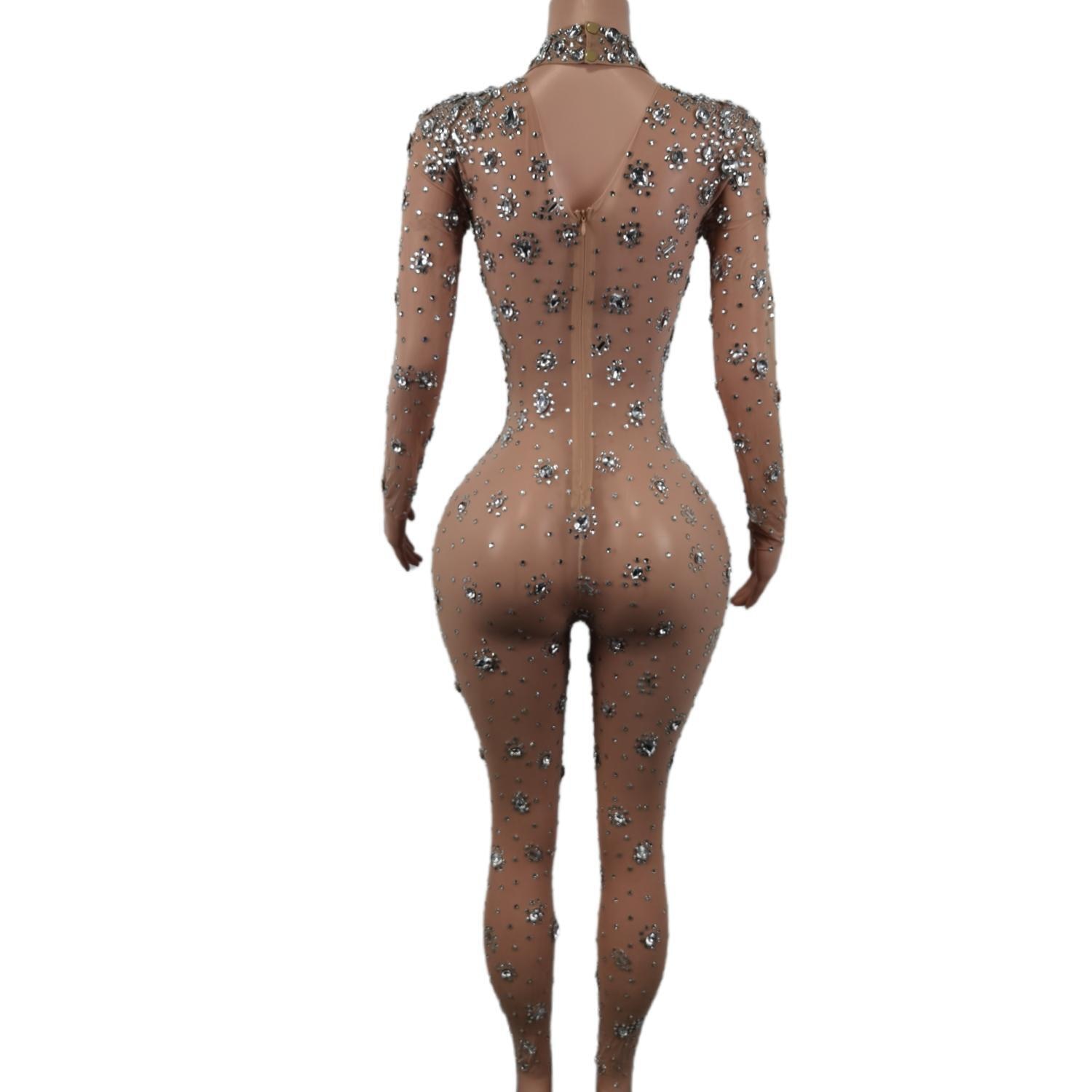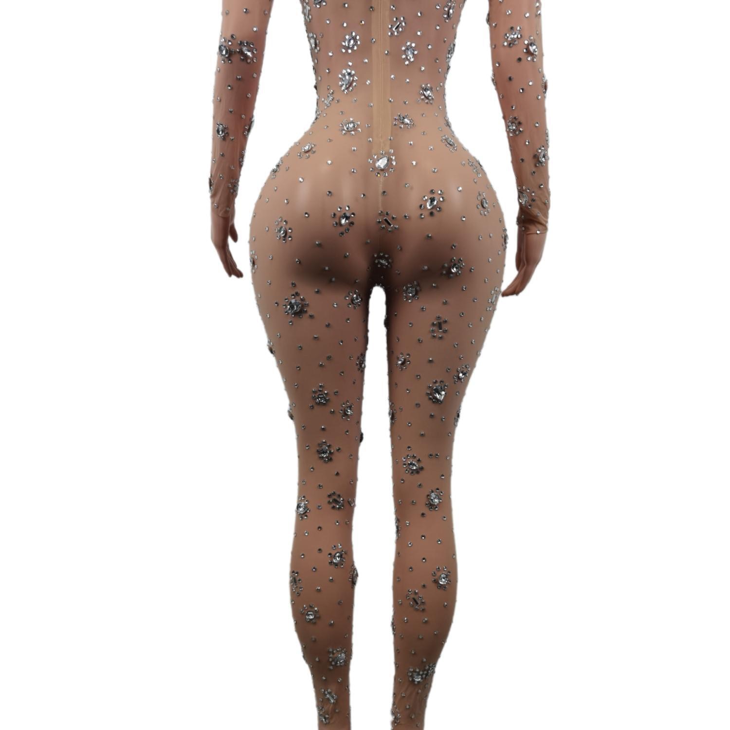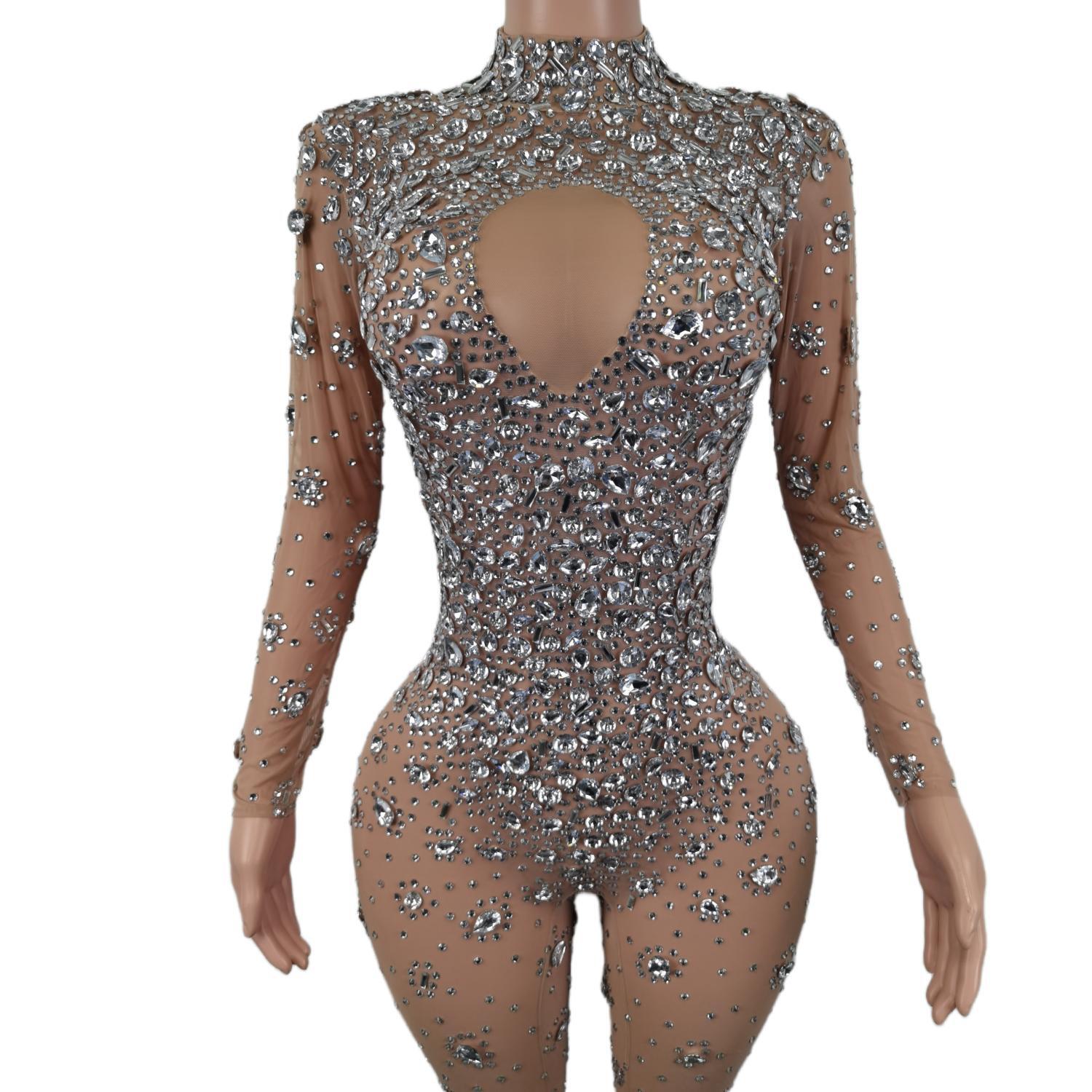 Skinny Crystals Jumpsuit Female Singer Dancer Stones Costume Sexy One-piece Bodysuit Nightclub Oufit Party Leggings Cuican