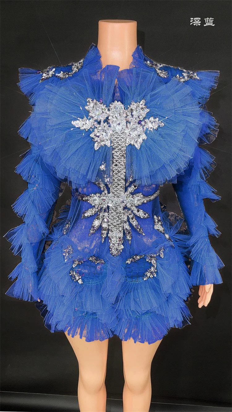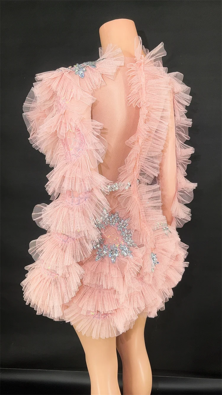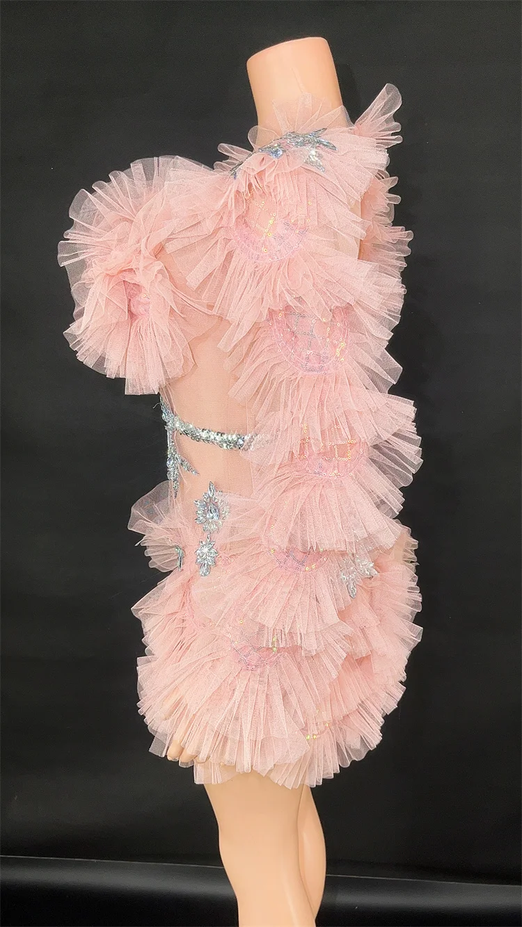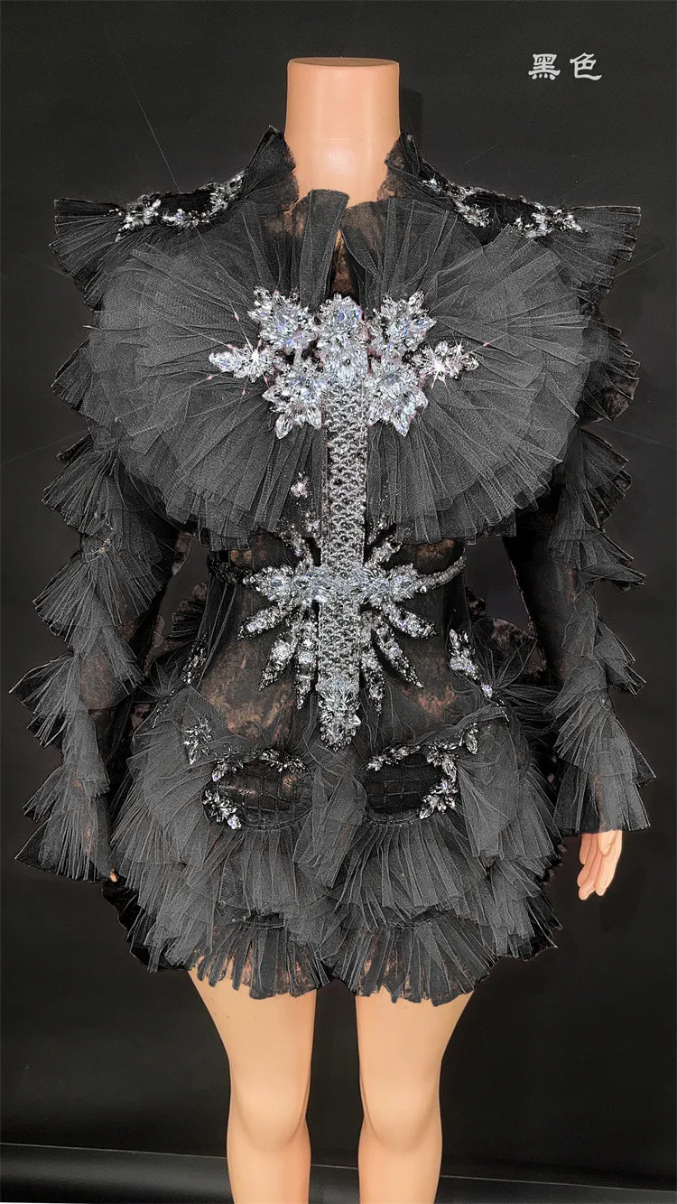 This stunning bodycon mini dress features sparkling diamonds and crystal embellishments, with a sexy mesh see-through design. Perfect for women to wear at birthday parties, celebrations, and performances. It's the ultimate costume for making a statement and turning heads.