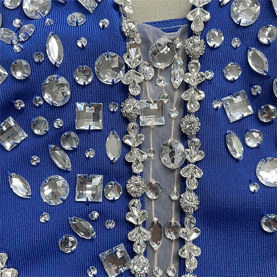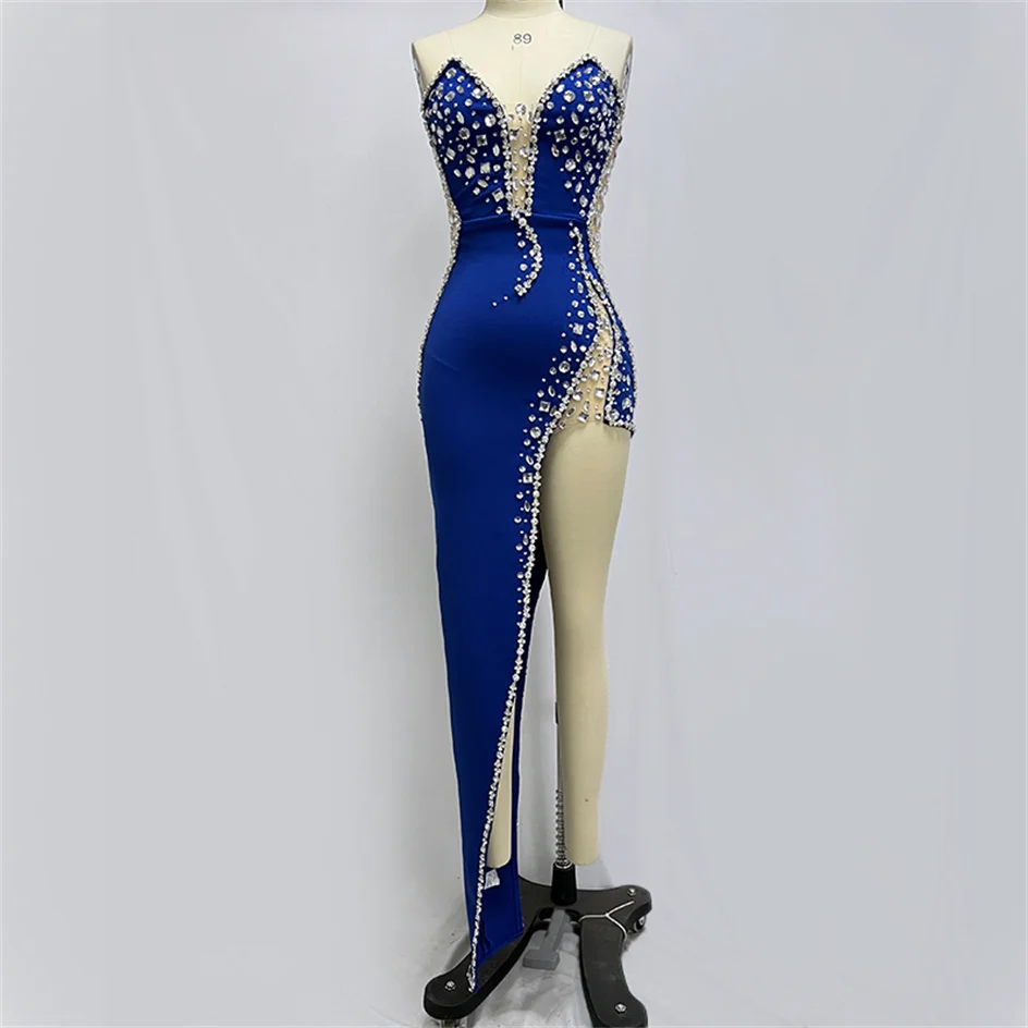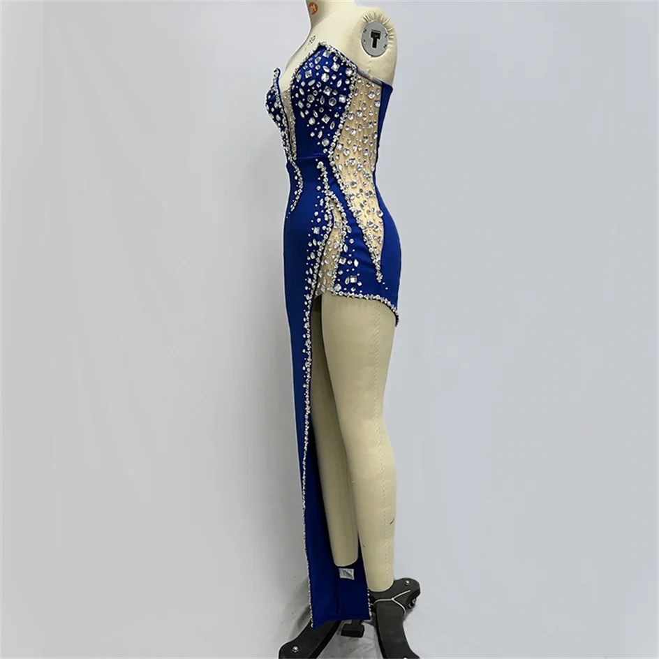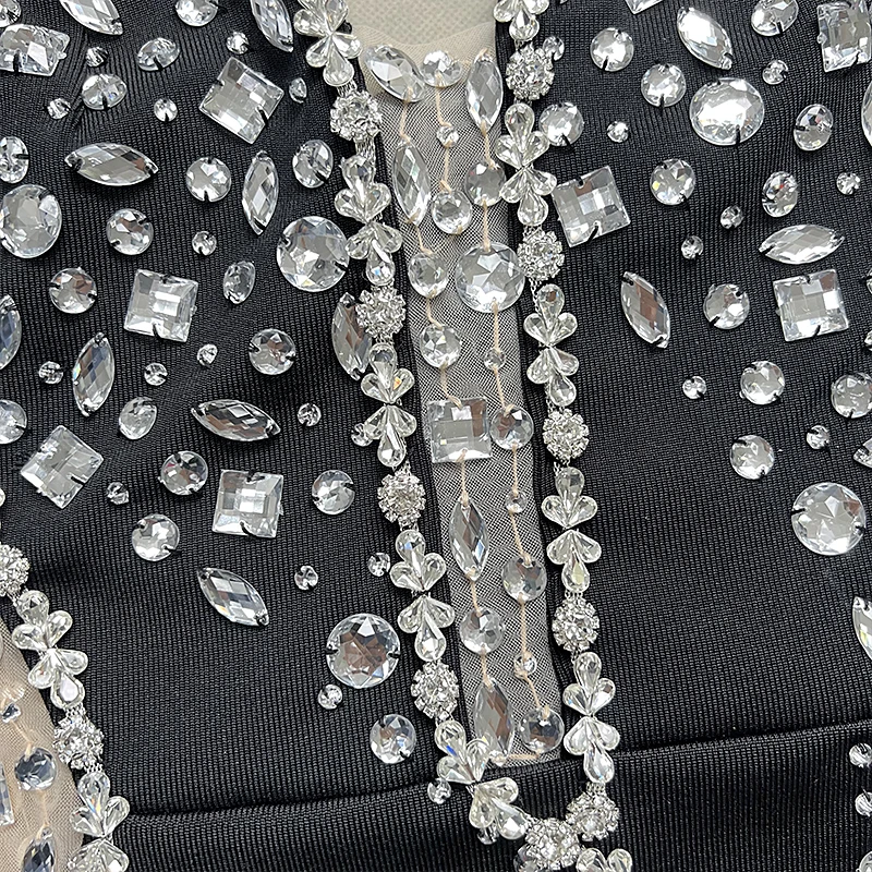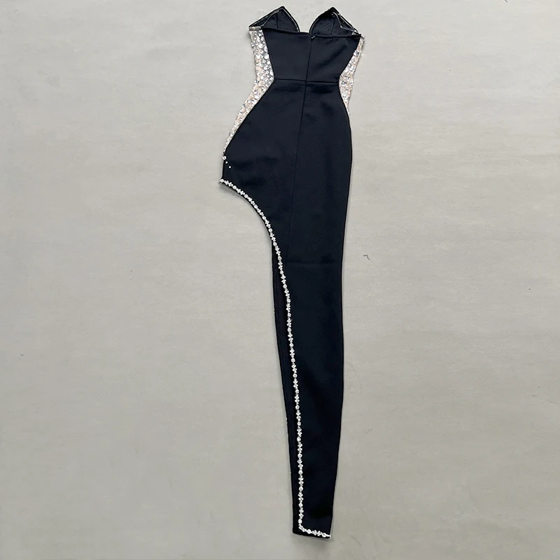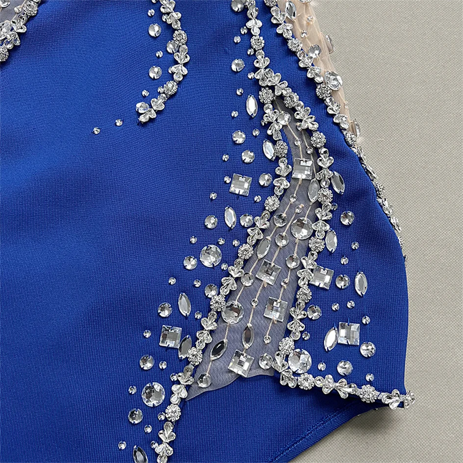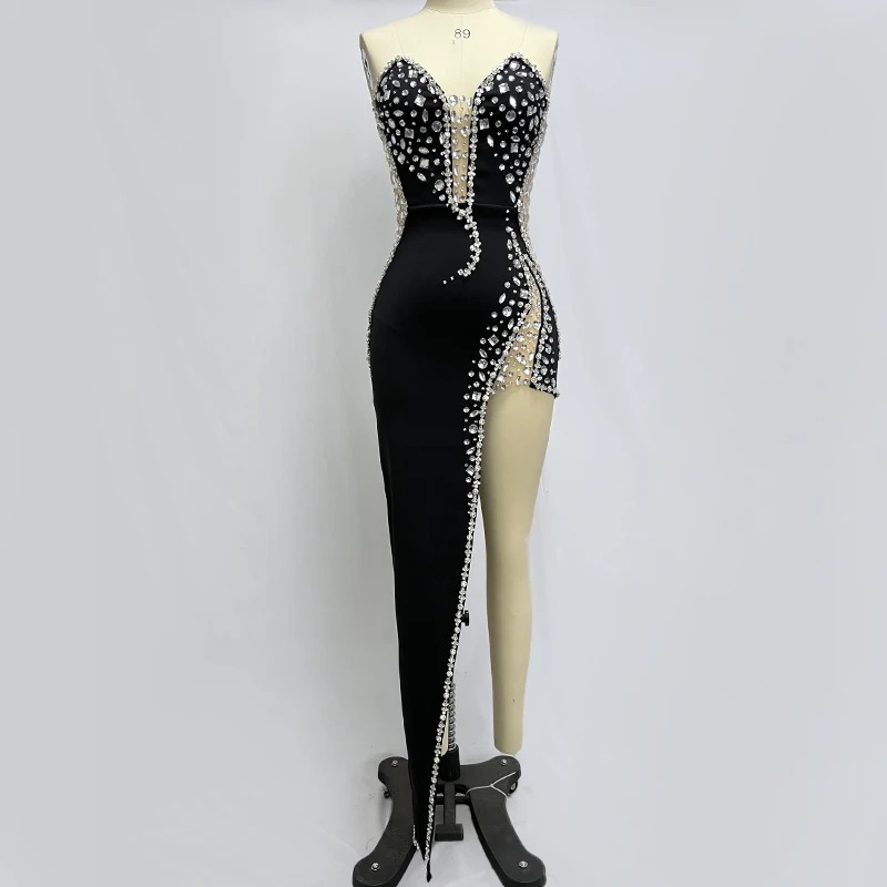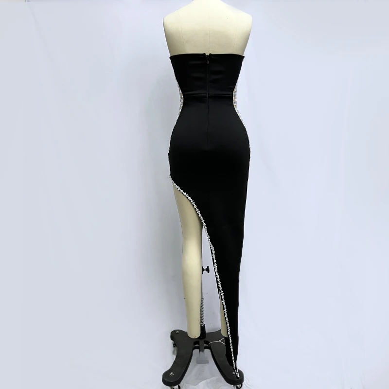 Sparking Rhinestone Diamond Inlay Women Strapless Sexy Mesh Splicing Bandage Irregularity Bodycon Dress Evening Party Dress