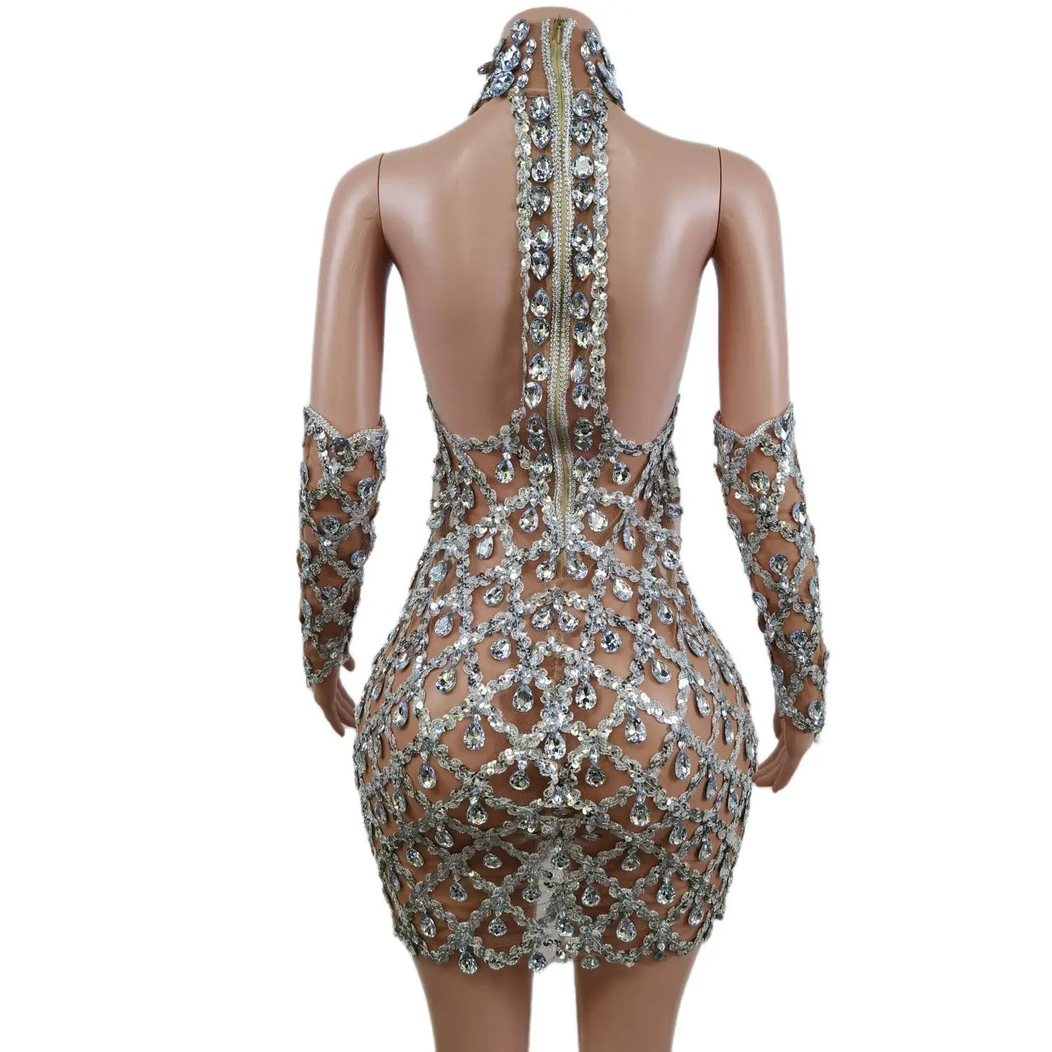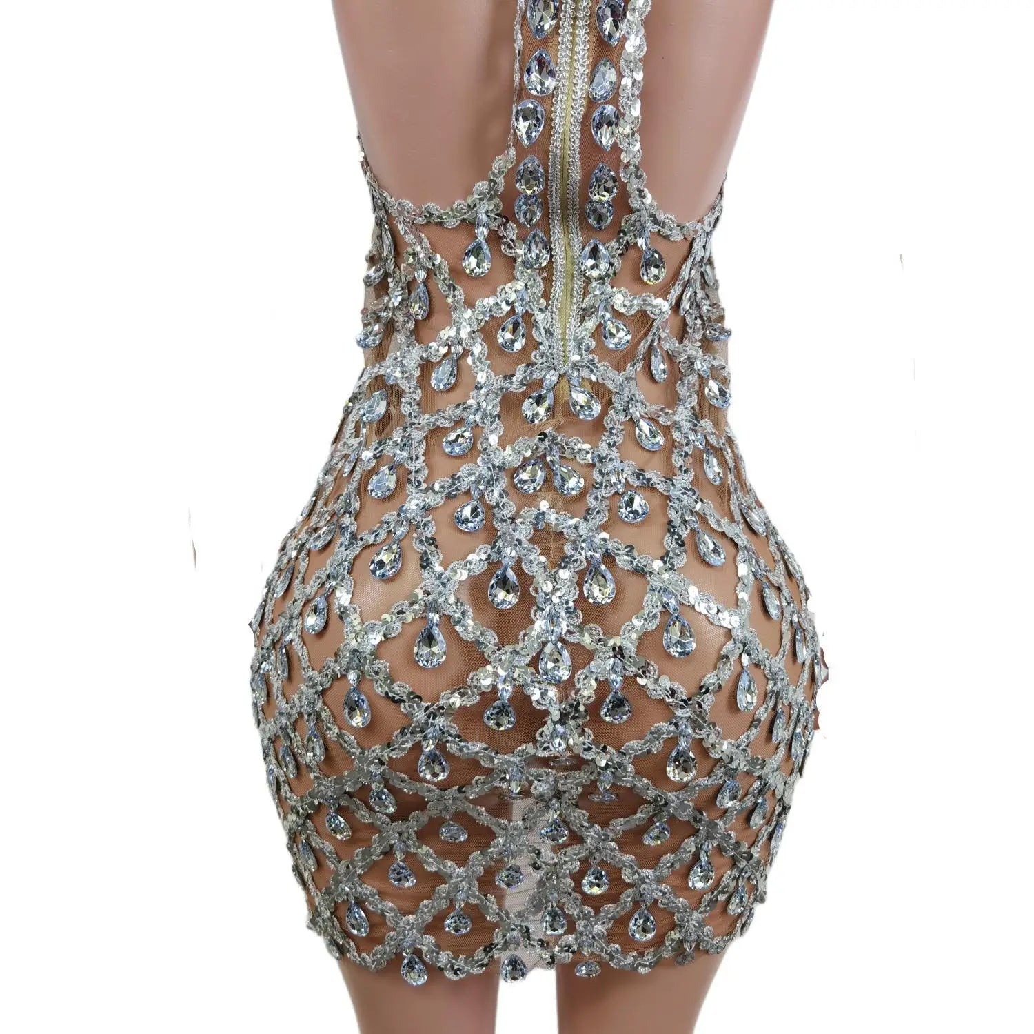 The Sparkle Crystal Sequin Short Prom Dress features a mesh transparent, sexy backless design, making it an ideal choice for birthday parties, proms, and drag queen costumes. This dress is designed to sparkle and make a statement, perfect for standing out at any special event.