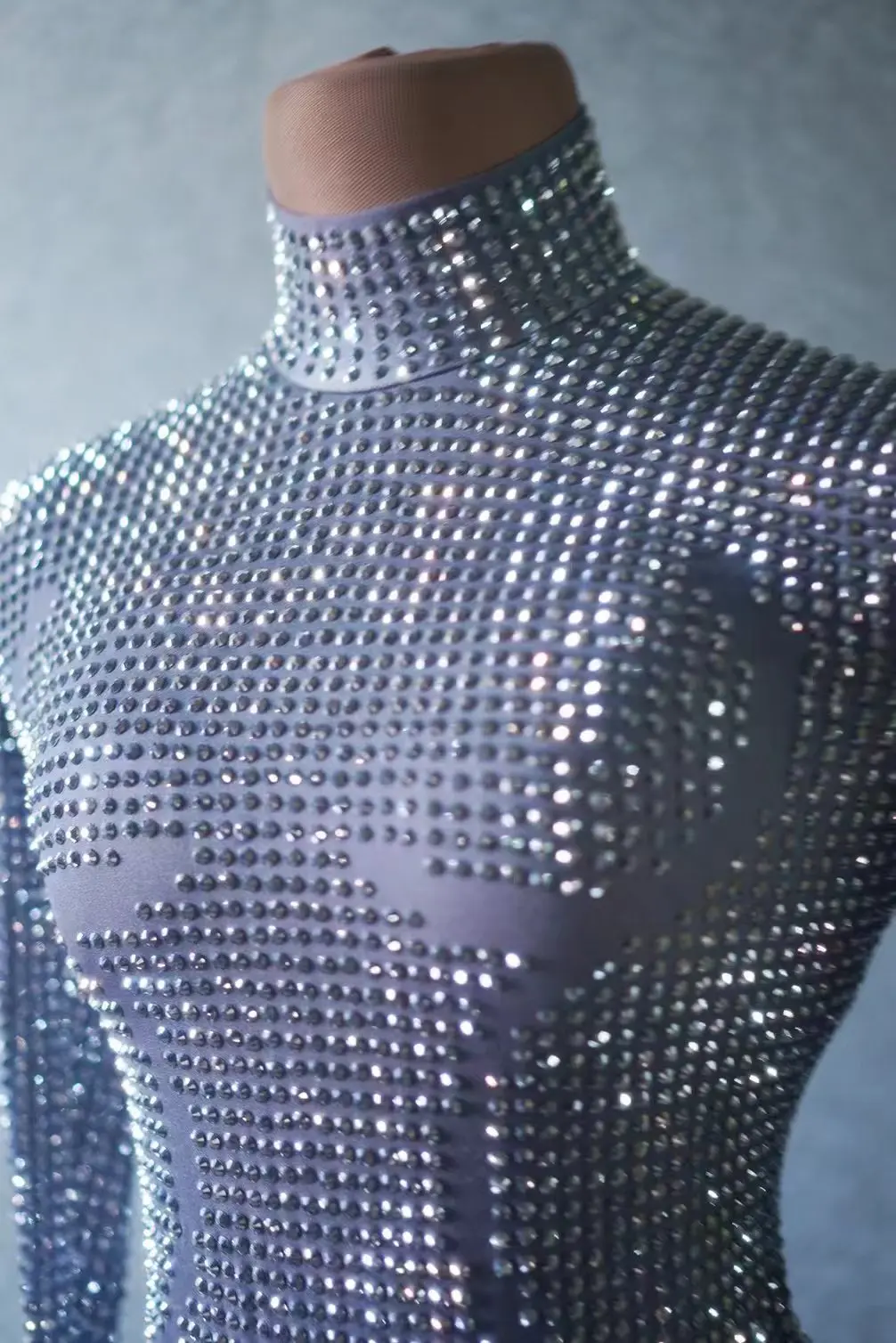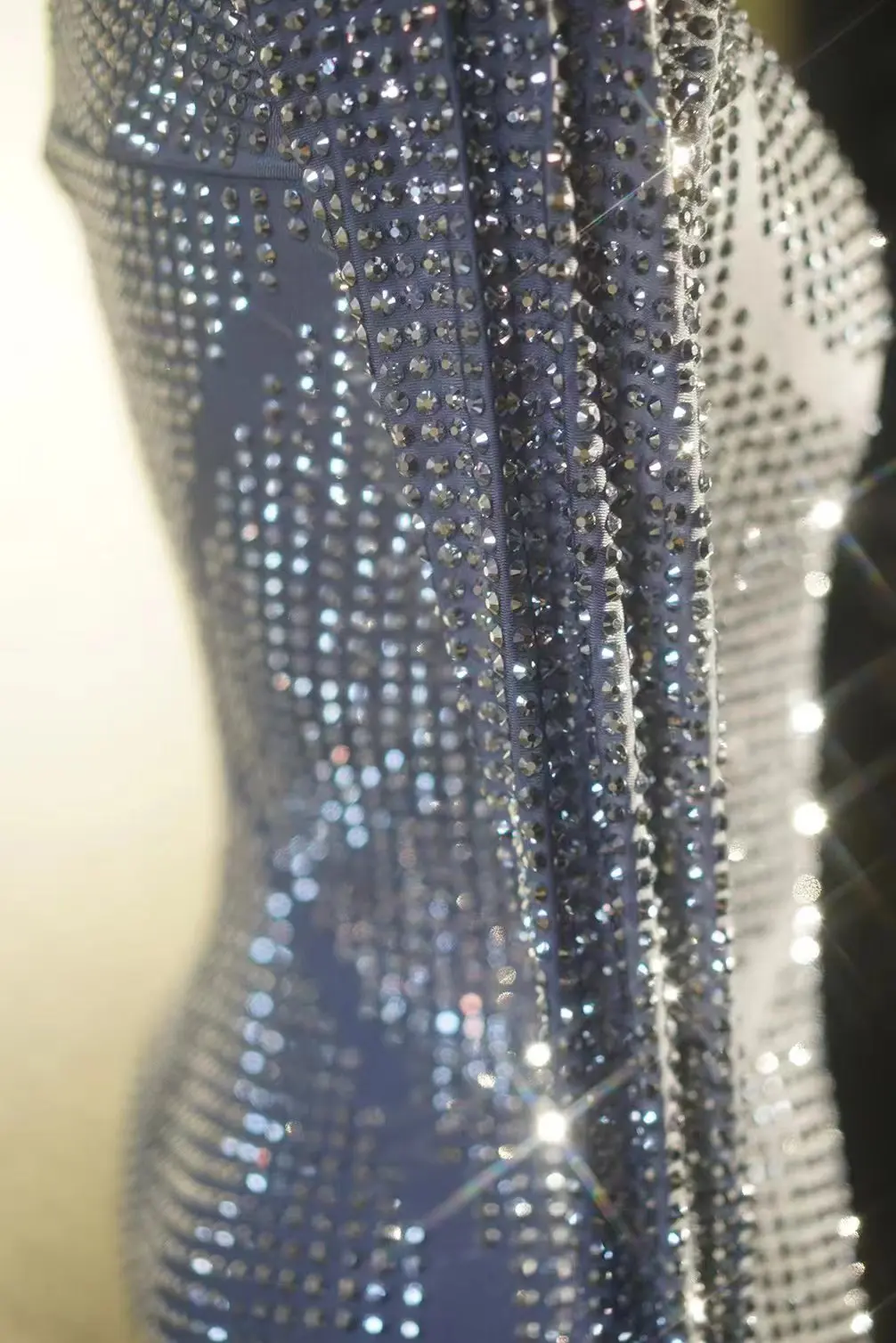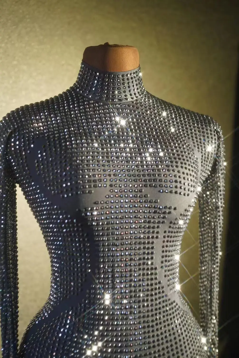 Sparkle Long Sleeve Party Romper Dancer Festival Outfit Skinny One Piece Bodysuit Women Sexy Full Diamond Jumpsuit Jingdian