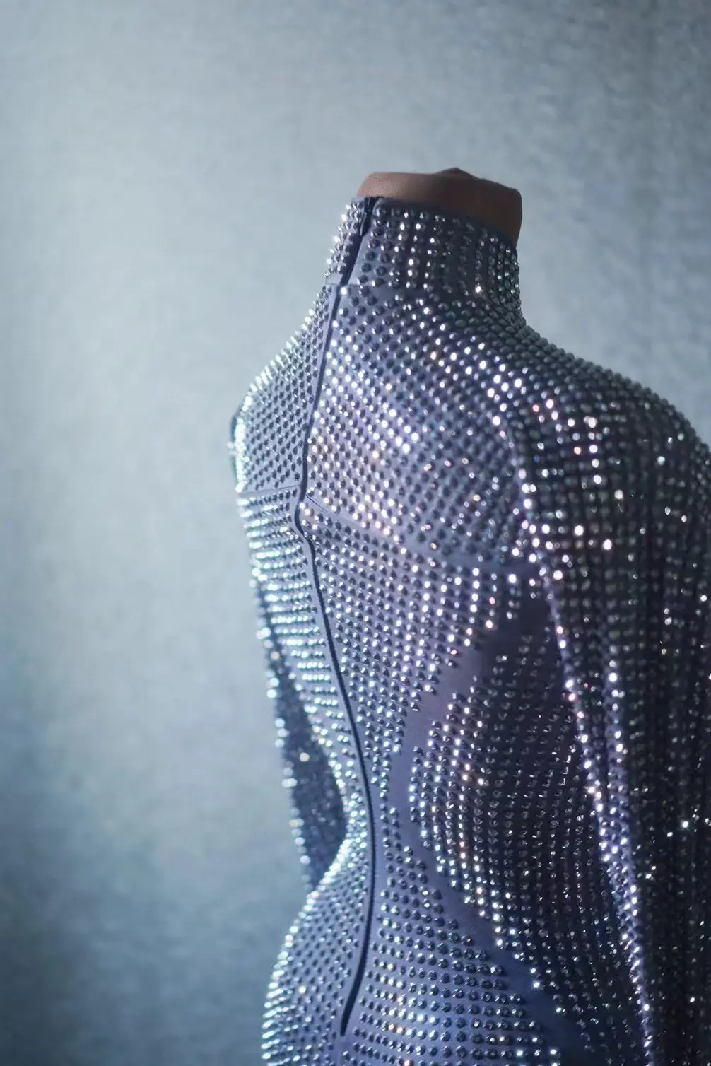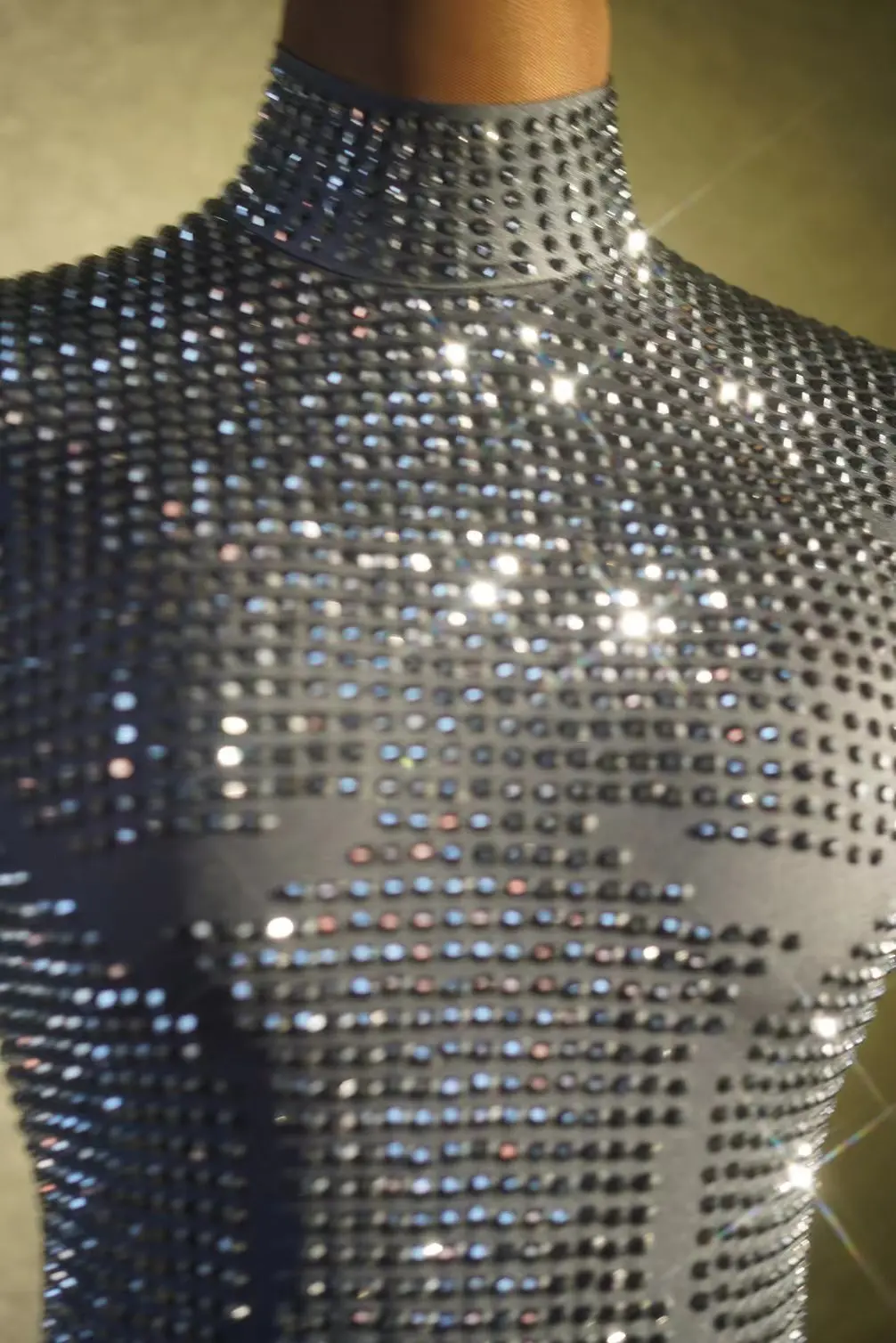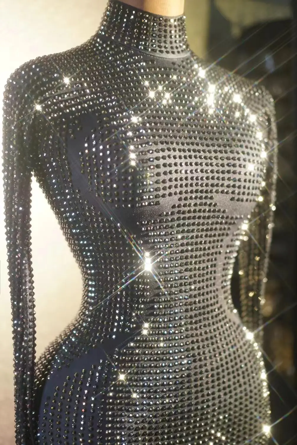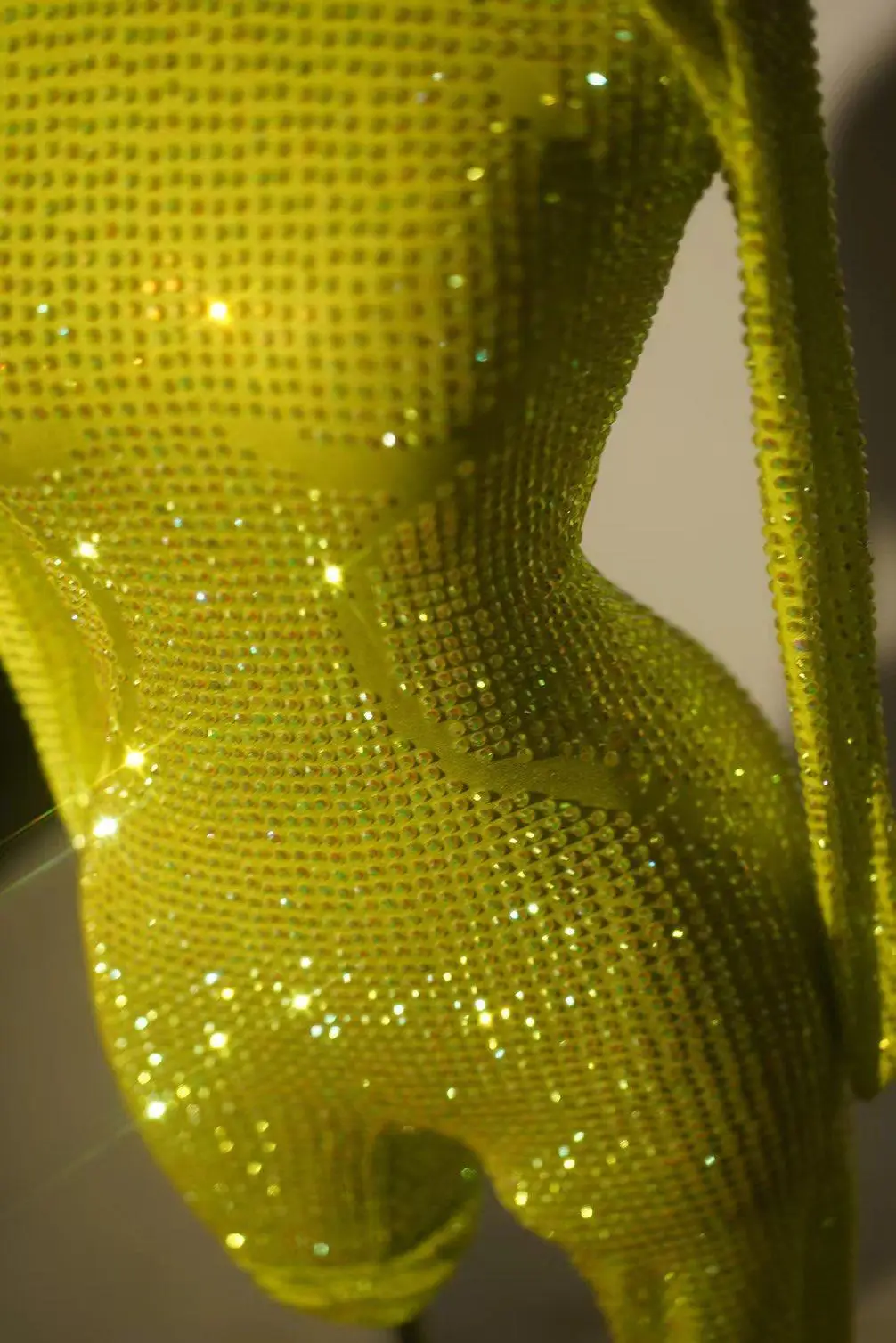 Sparkle Long Sleeve Party Romper Dancer Festival Outfit Skinny One Piece Bodysuit Women Sexy Full Diamond Jumpsuit Jingdian