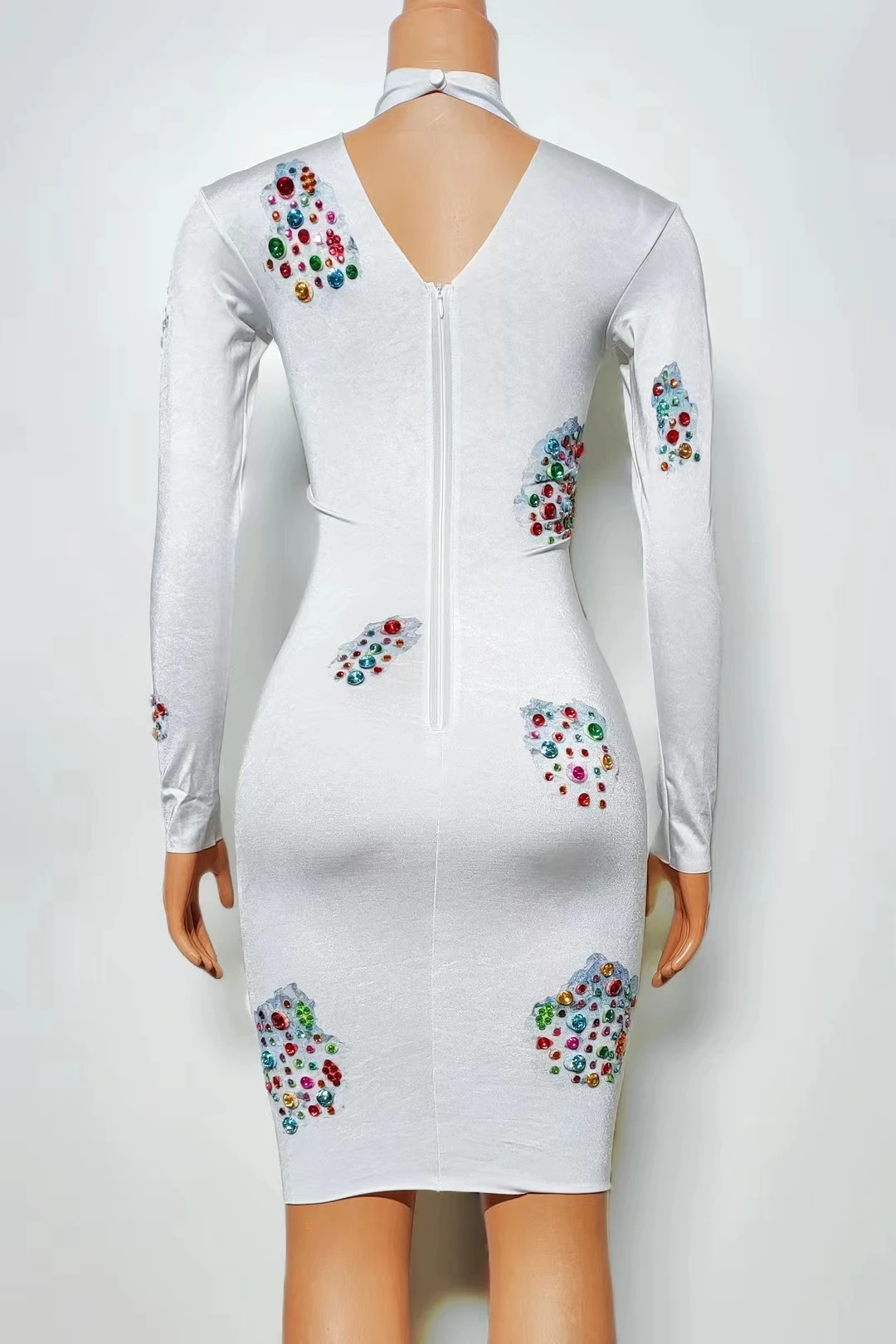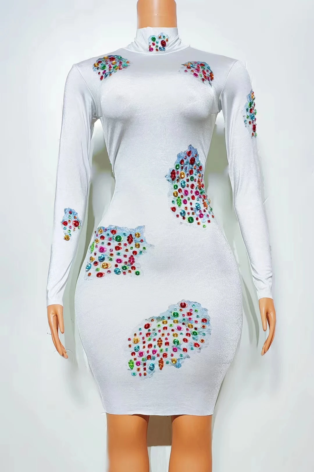 Sparkle Rhinestone Prom Dress White Party Dance Performance Costumes Ladies Crystal Diamond Evening Dresses Shuiingdong