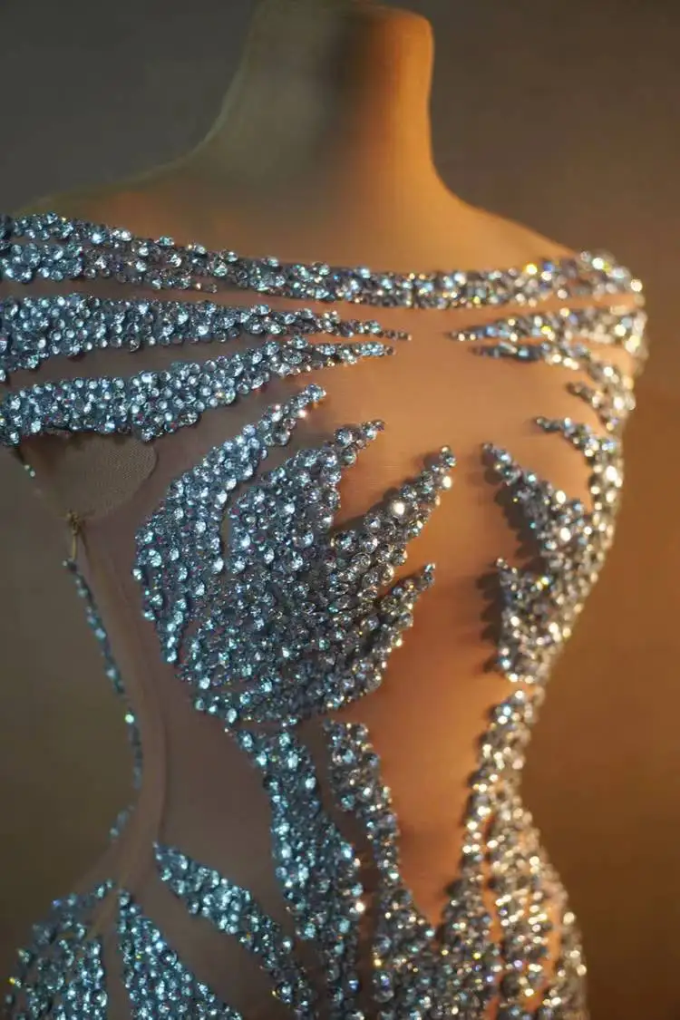 Sparkly Beads Prom Gown Sexy Illusion Evening Short Dress Women Luxury Straight Long Cocktail Dresses Vestidos De Novia Xuelian