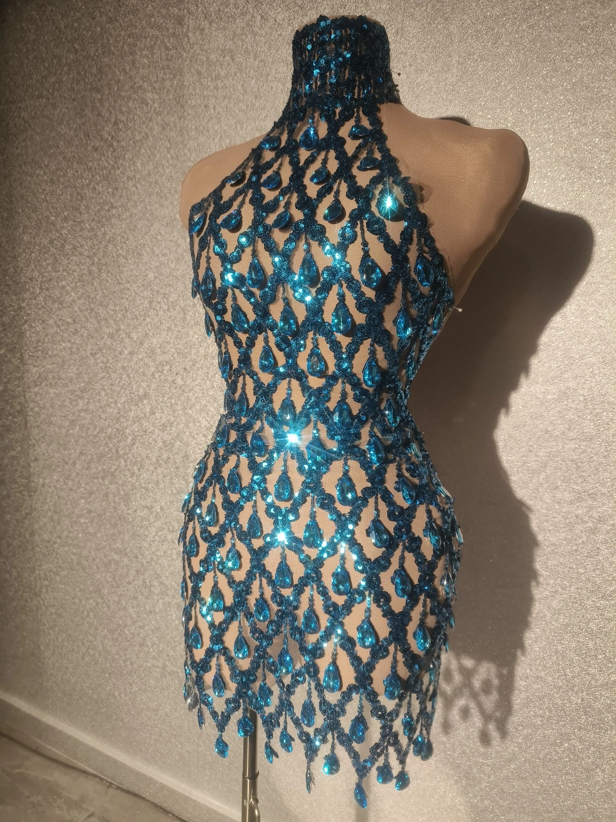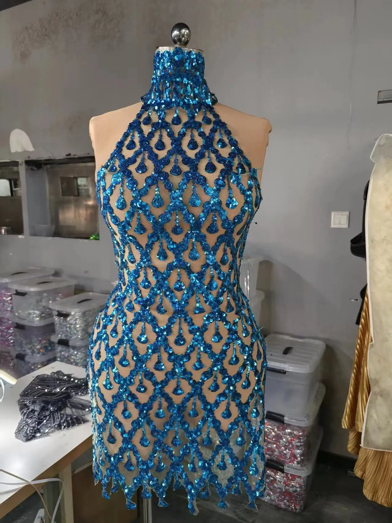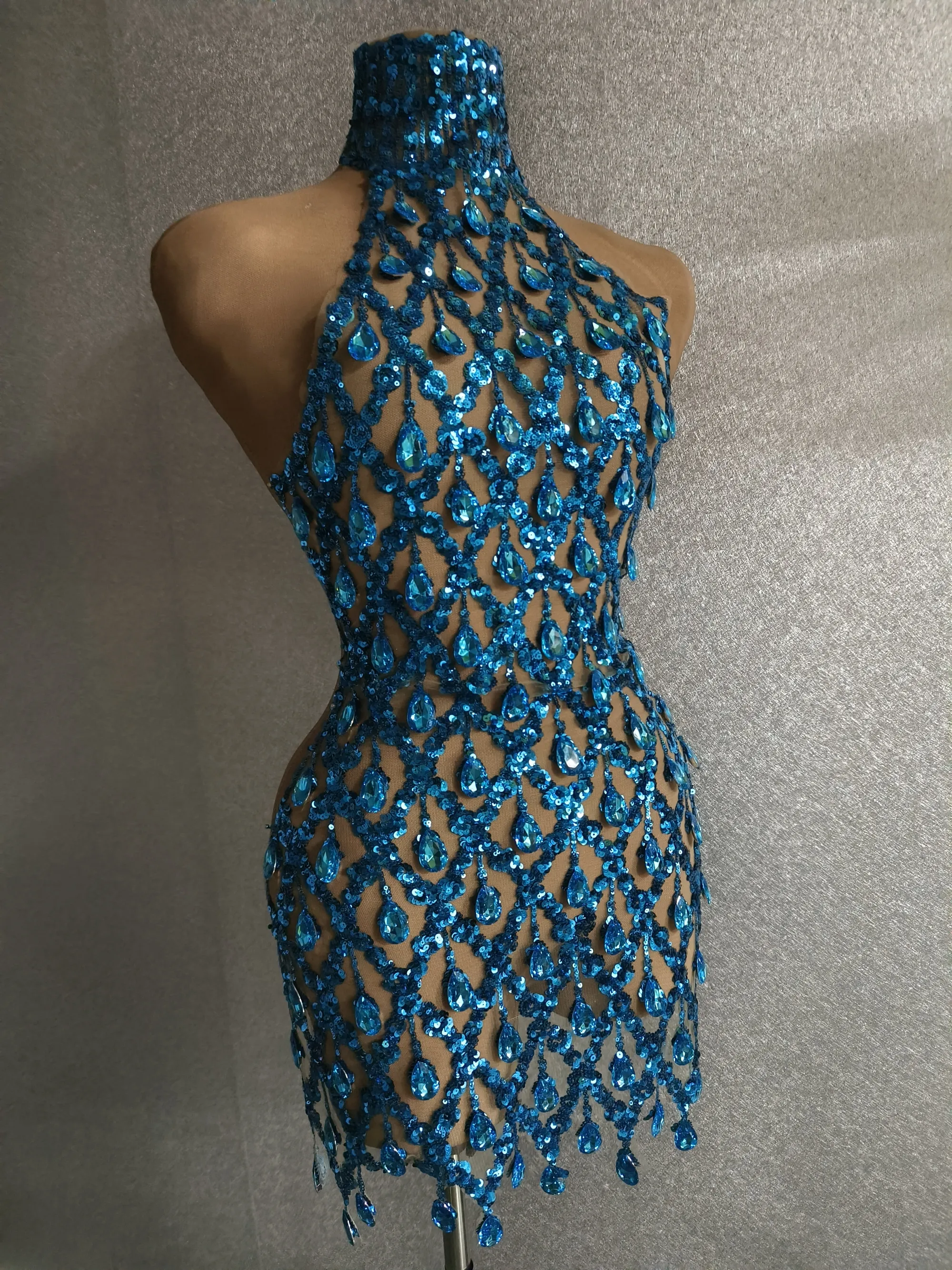 Sparkly Black Sequins Sleeveless Birthday StonesTransparent Backless Dress Shiny EveningCelebrate Outfit Stretch Mesh Shaokao