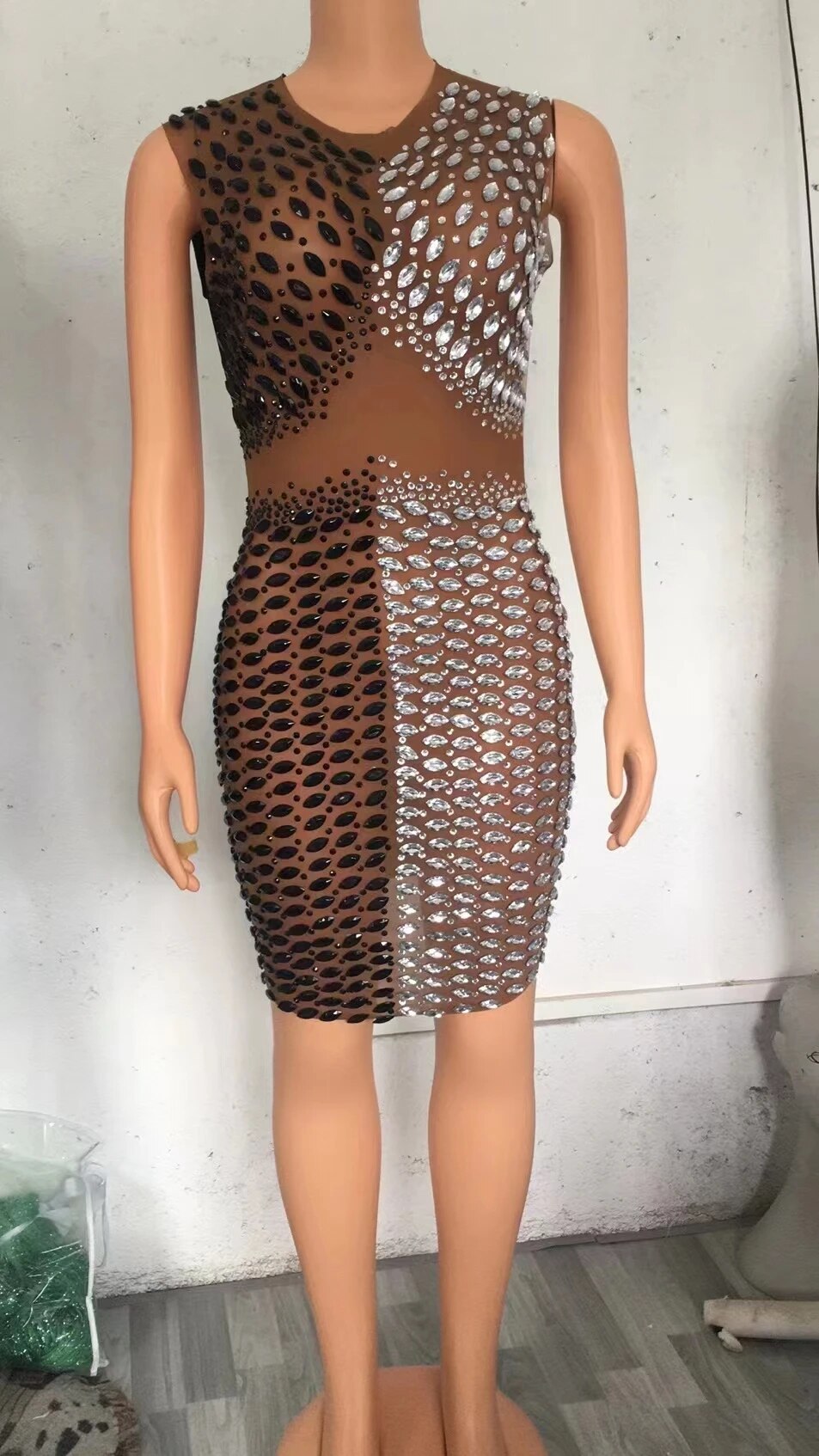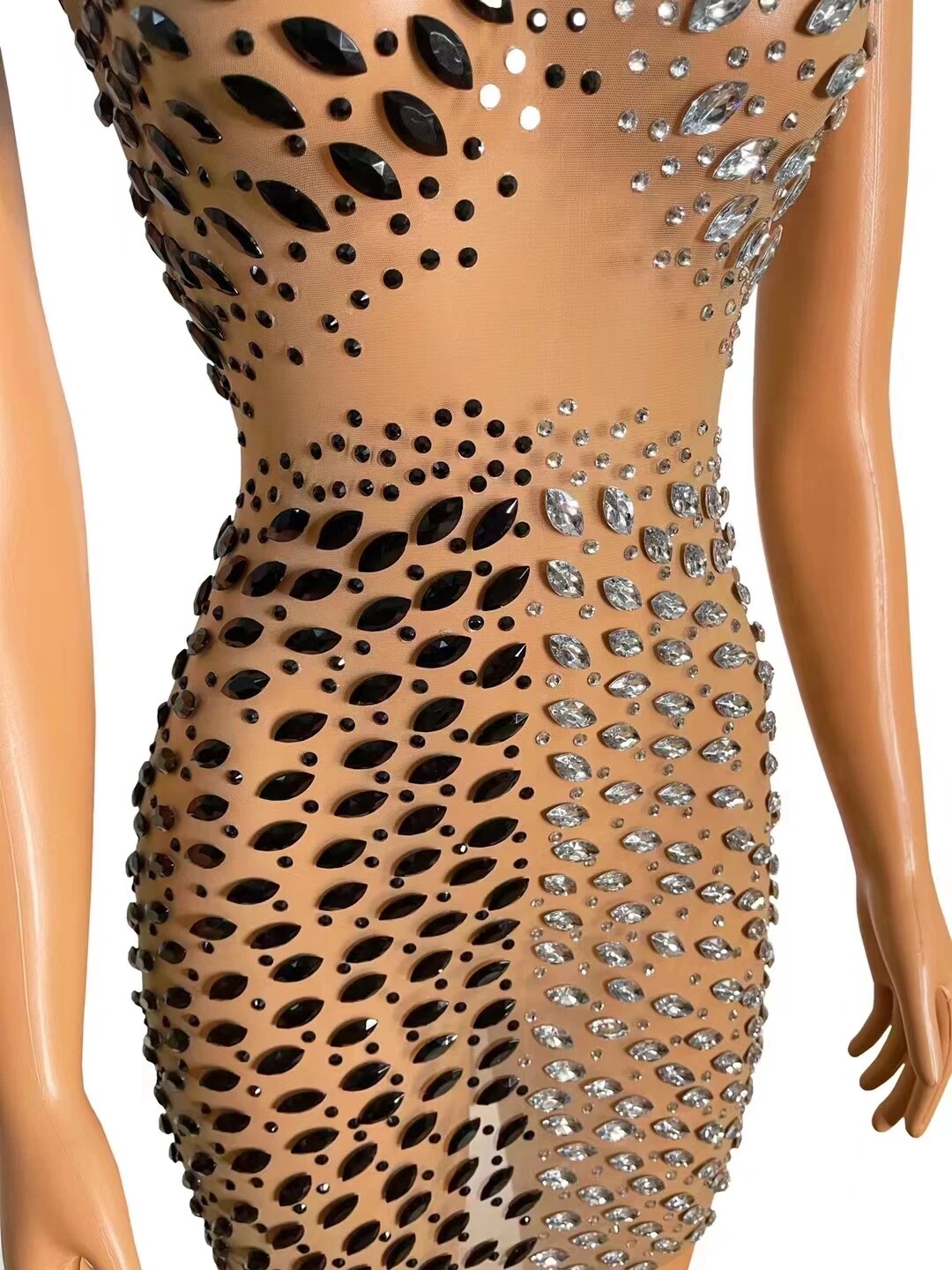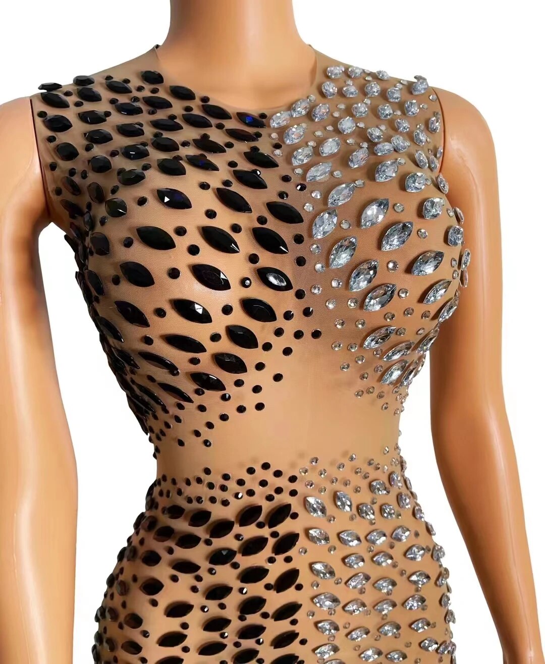 Sparkly Black Silver Rhinestone See Through Dress Sexy Birthday Celebrate Evening Party Prom Show Costume Singer Stage Wear