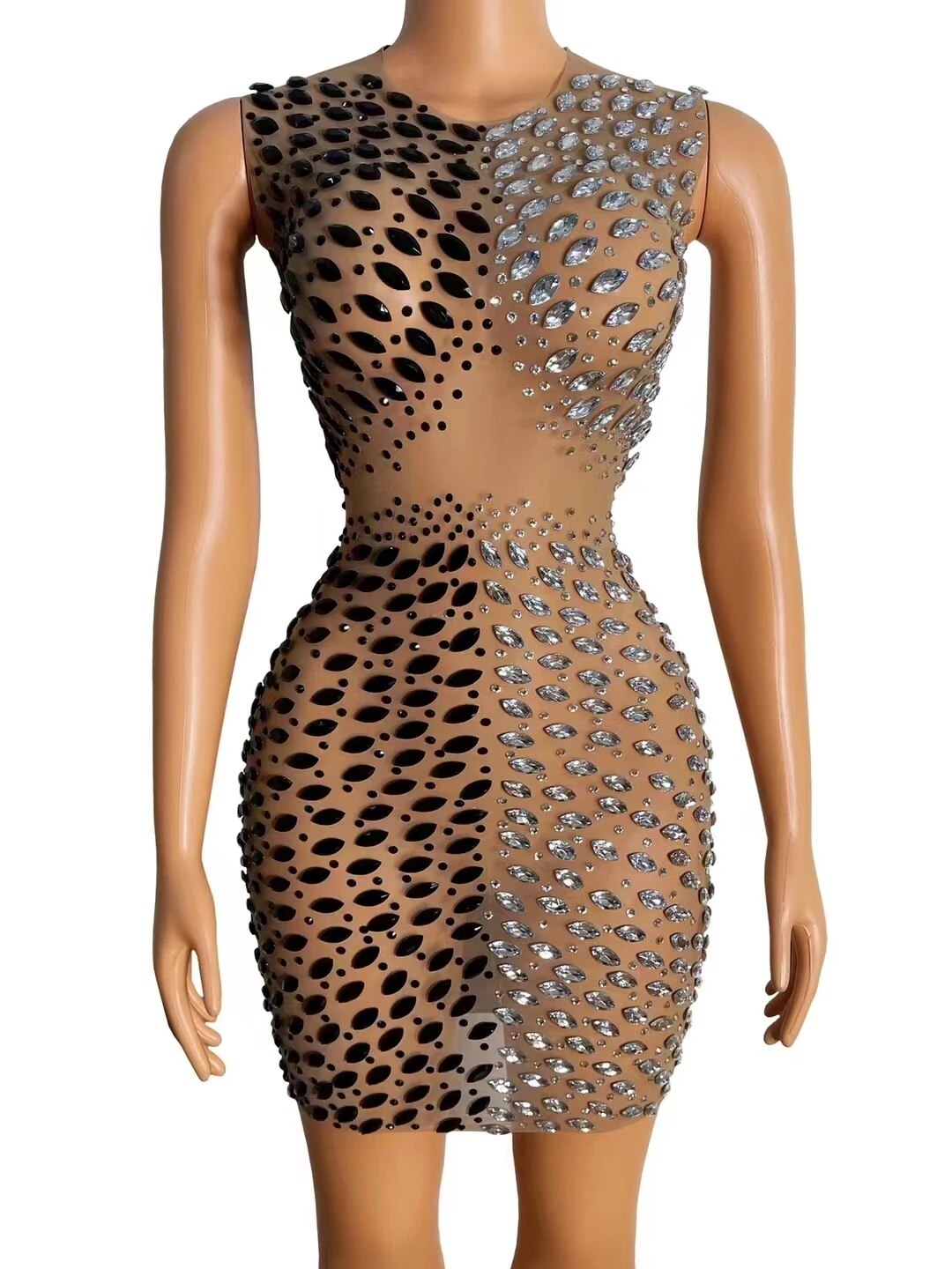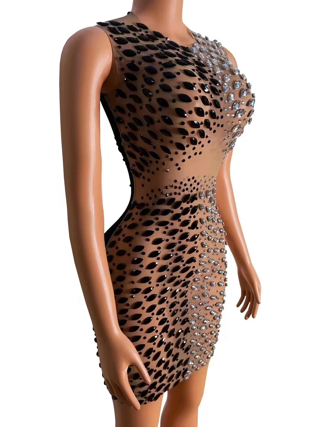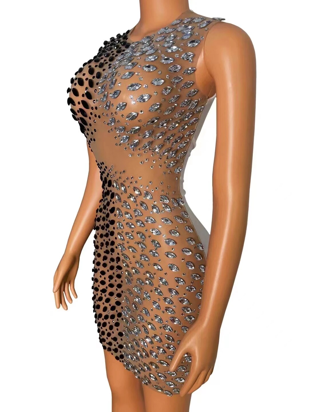 Sparkly Black Silver Rhinestone See Through Dress Sexy Birthday Celebrate Evening Party Prom Show Costume Singer Stage Wear