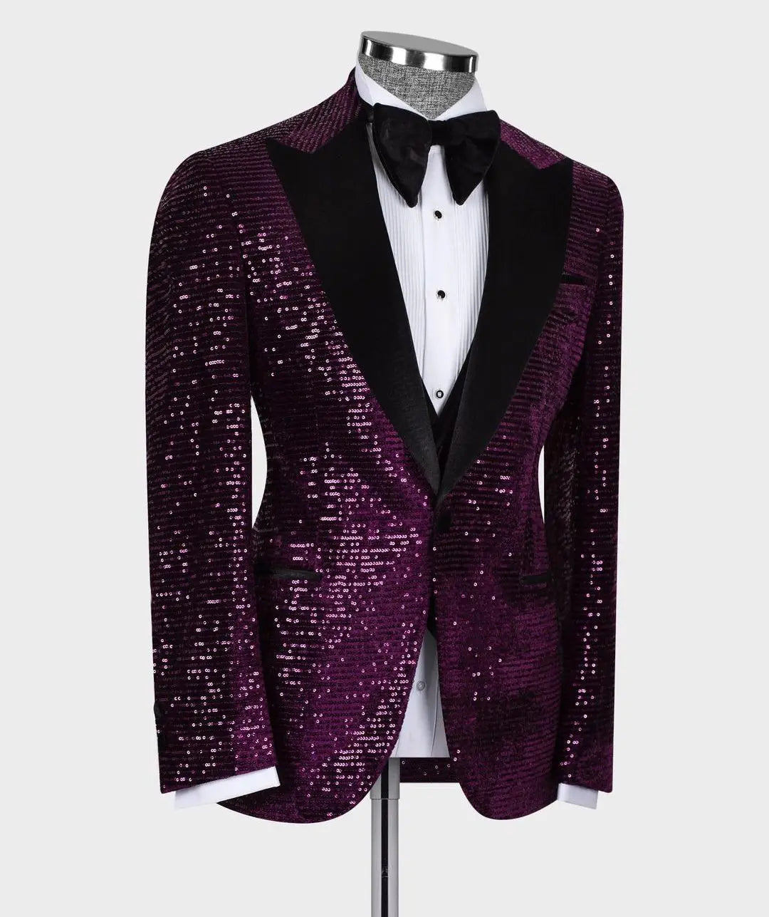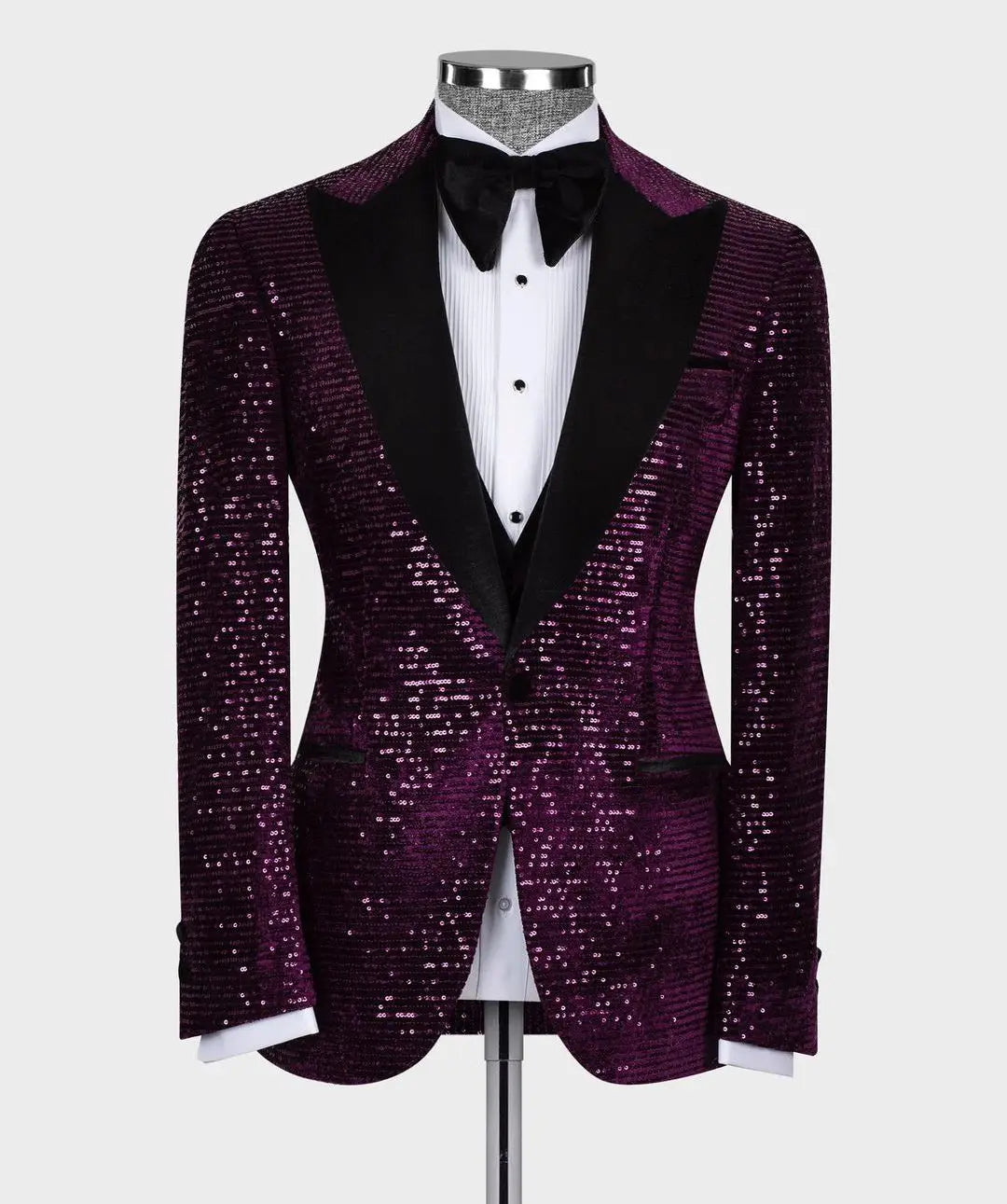 Add a touch of sparkle to your ensemble with this sparkly men's suit set, including a blazer and vest with appliques and sequins. The one-button design and wide lapel exude formal elegance, making it suitable for formal events like weddings, host parties, and more. Available in plus sizes and tailored for a perfect fit.