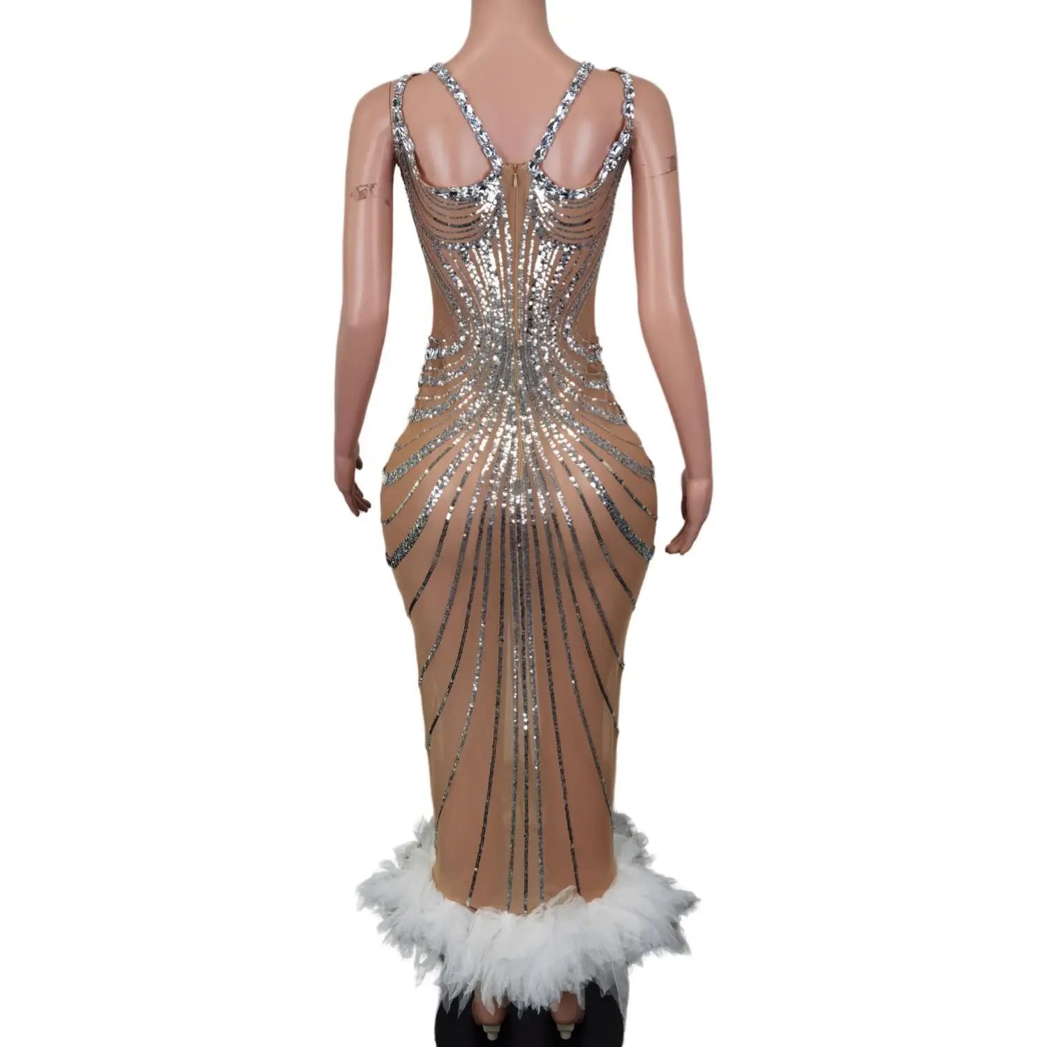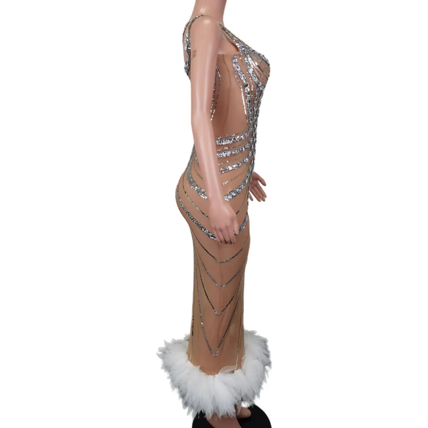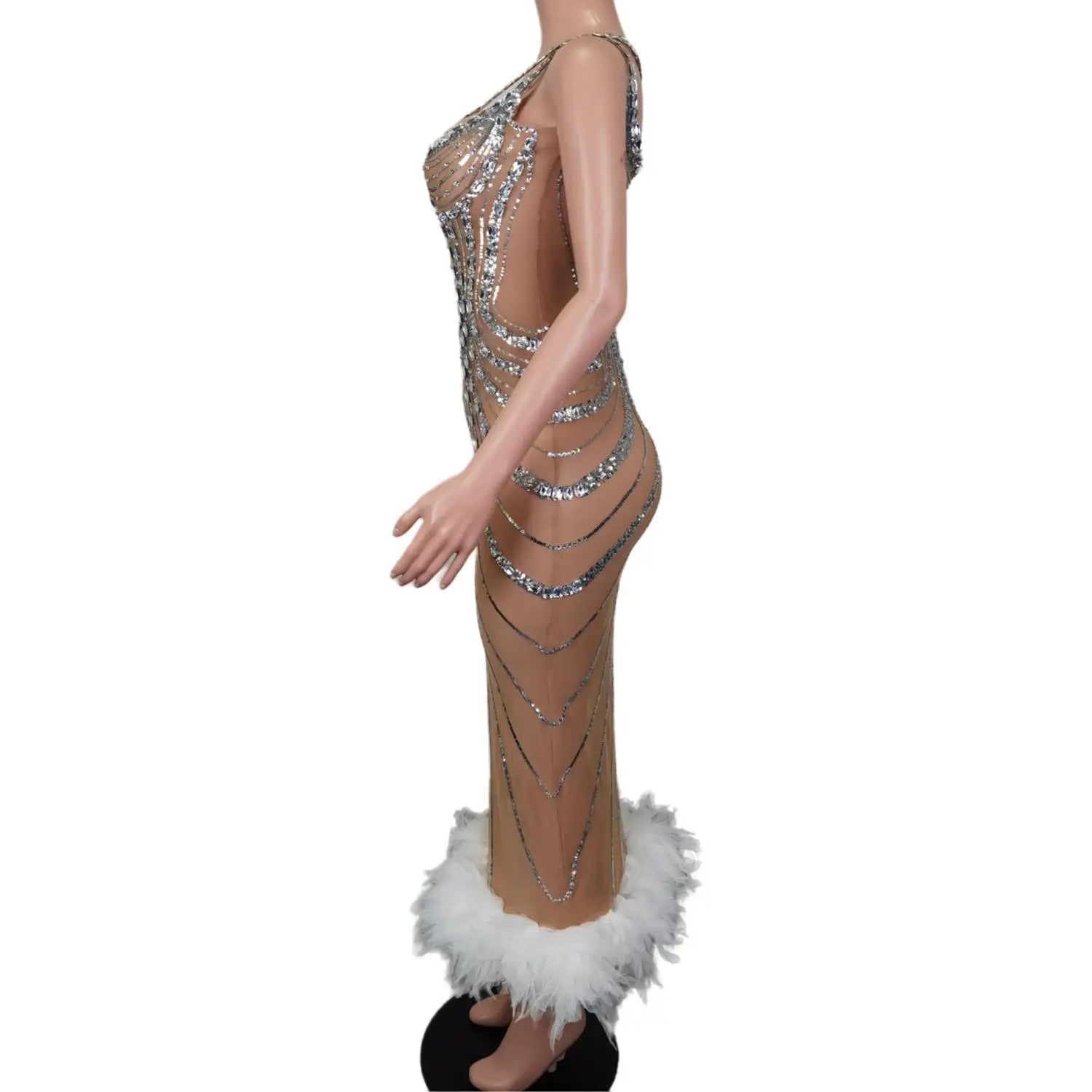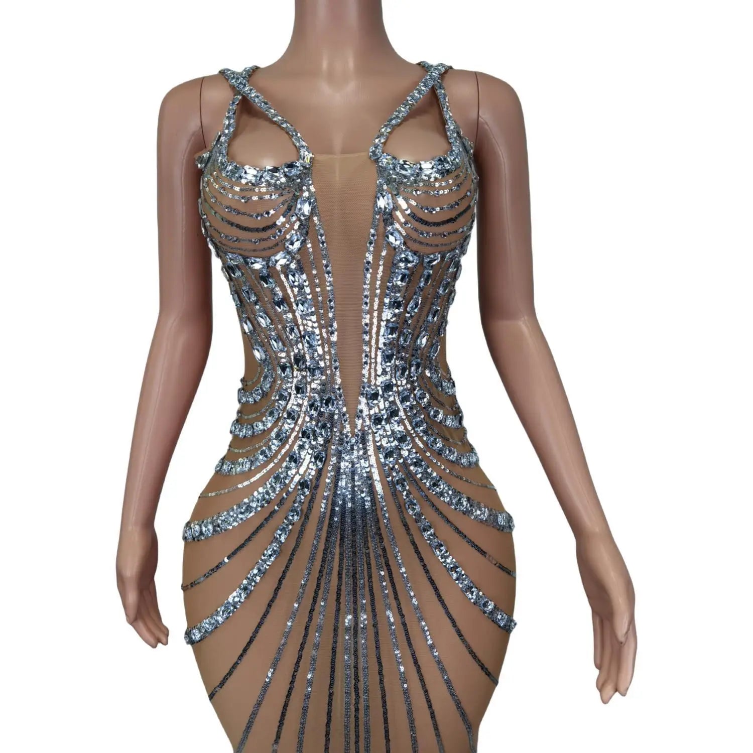 Get ready to make a grand entrance in this sparkly diamonds sequins long dress. This stunning dress is perfect for women who want to exude glamour and sophistication at evening parties, birthdays, photo shoots, performances, and special occasions. The see-through design adds a touch of allure and elegance, making you stand out in style. Shine bright and steal the show in this sexy and eye-catching dress that is sure to make you the center of attention.