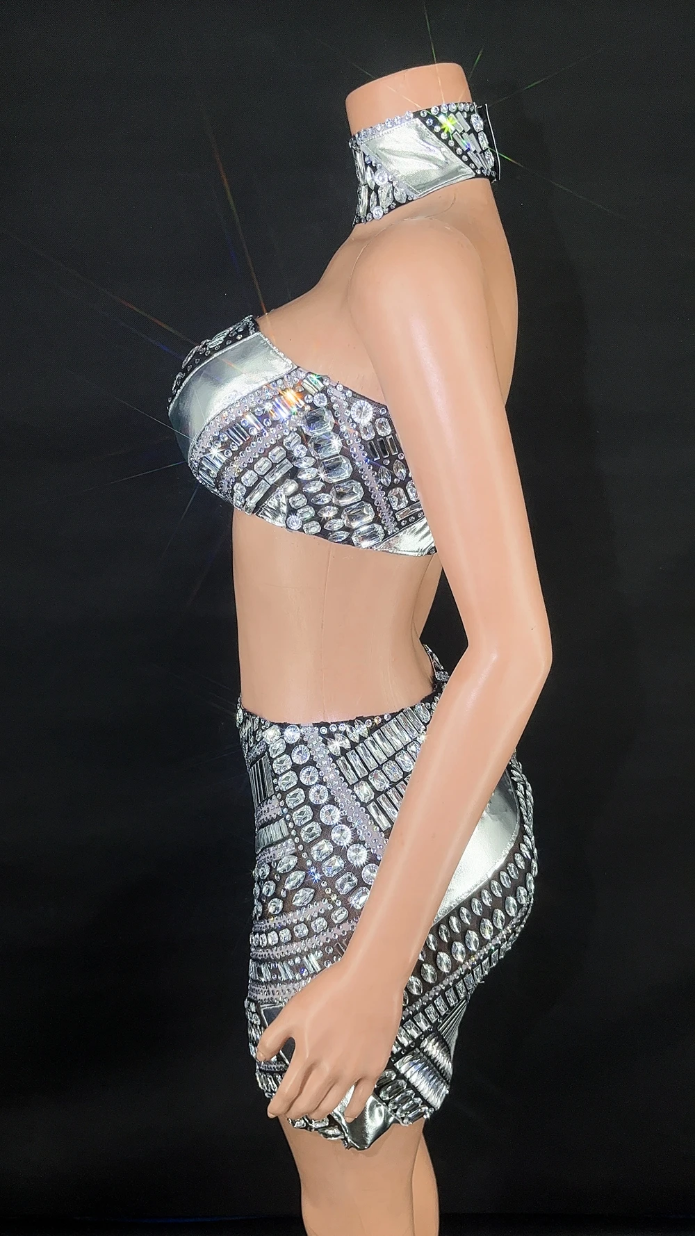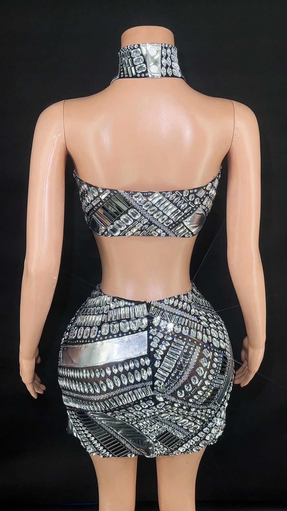 Sparkly Diamonds Tube Top Short Skirt Two Pieces for Women Sexy Celebrate Evening Prom Party Birthday Dress Show Stage Wear
