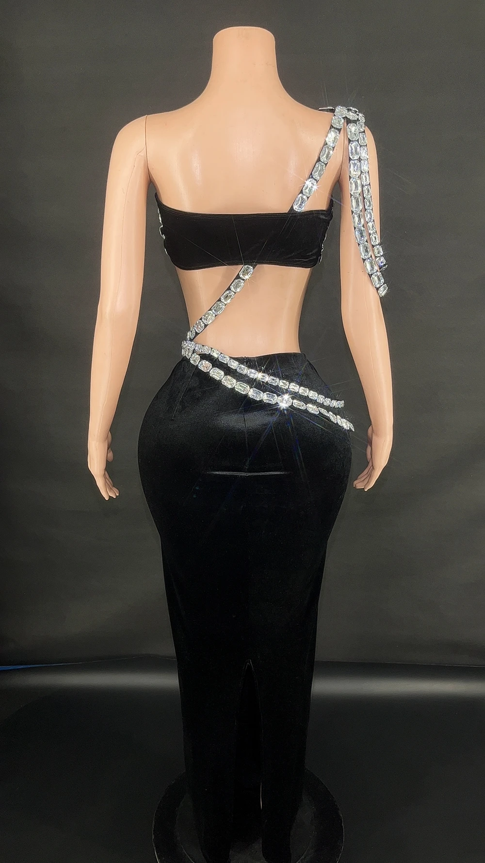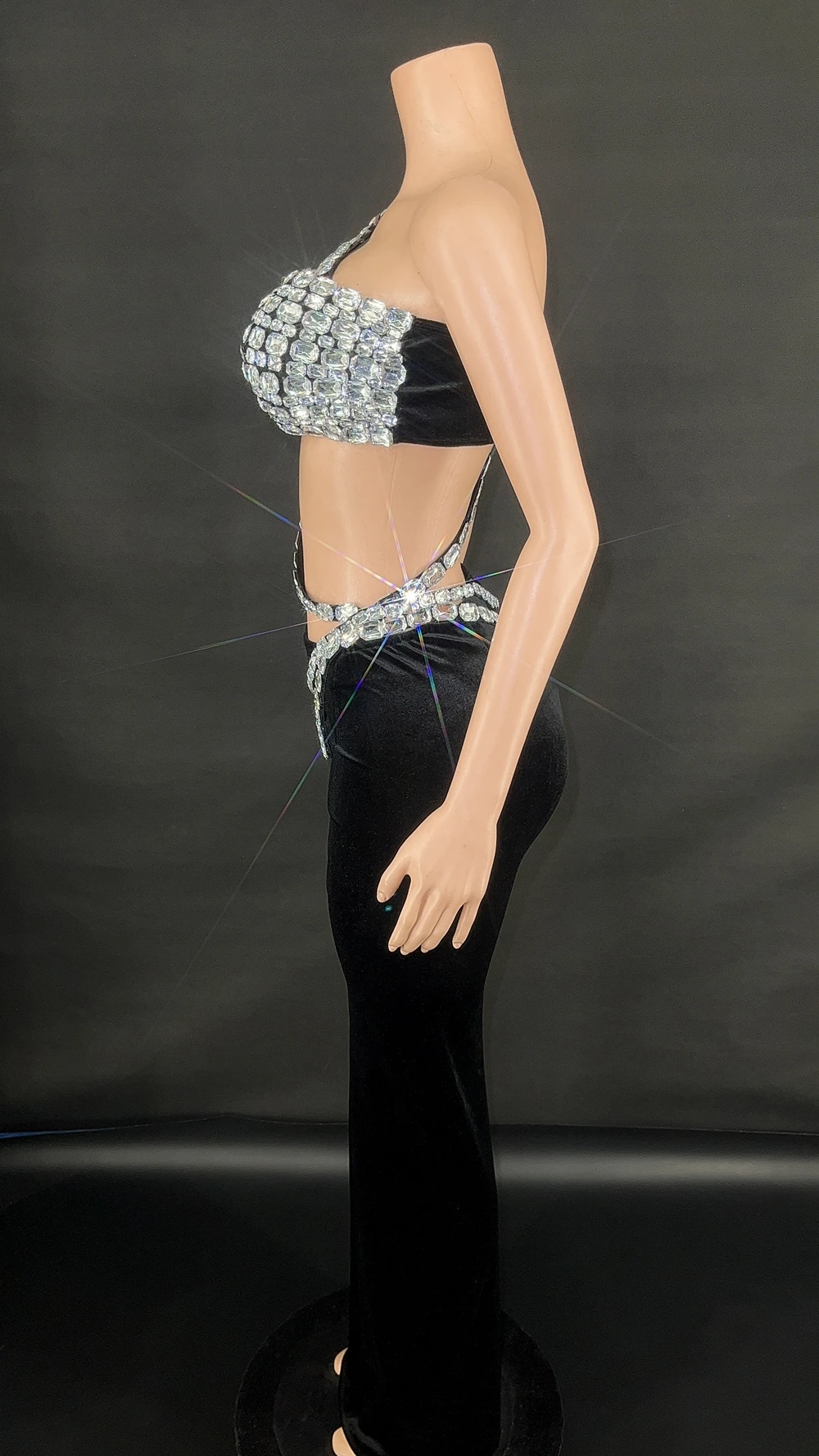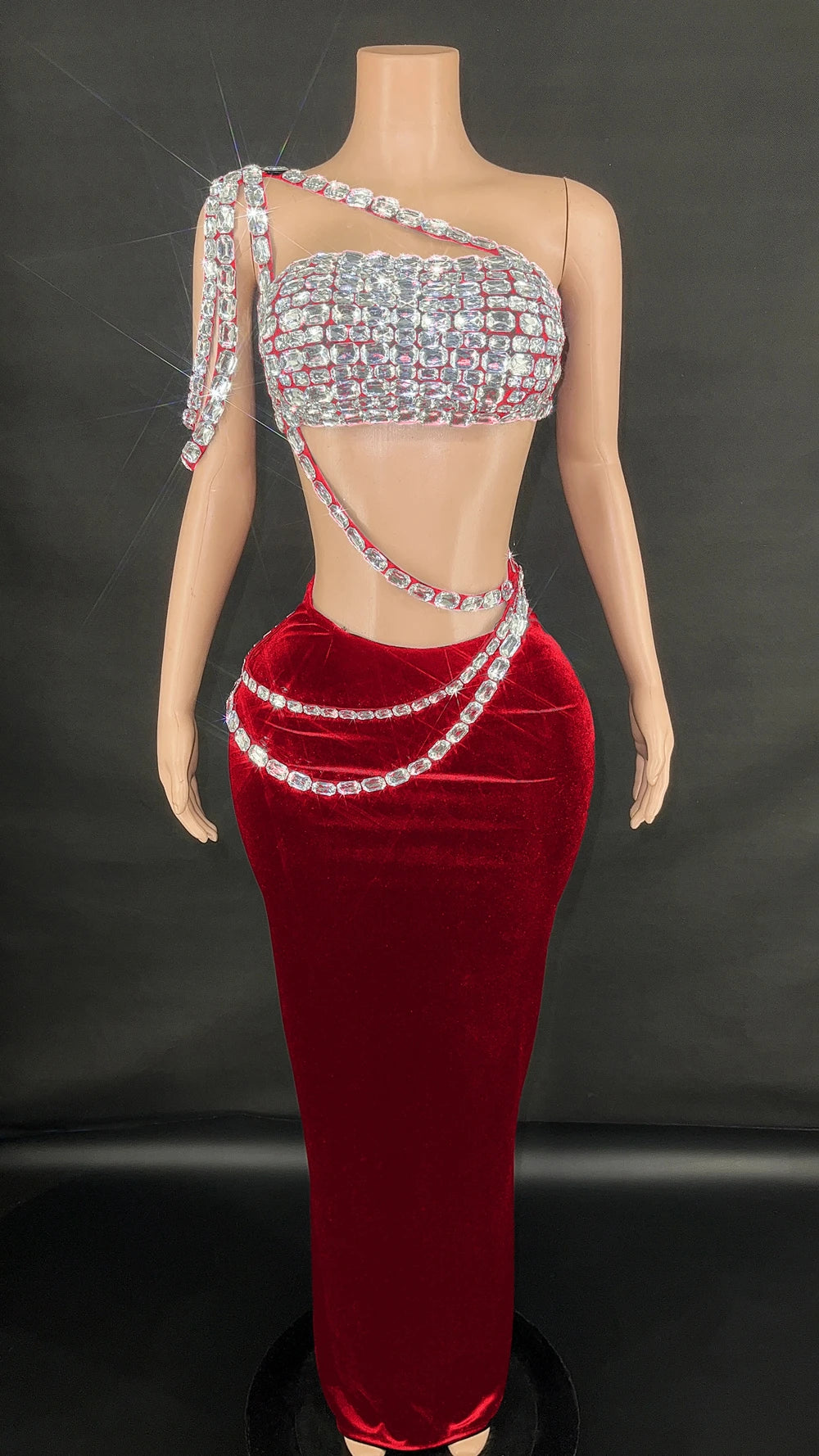 Sparkly Gemstones Tube Crop Top Long Skirt Two Pieces Set for Women Sexy Celebrate Evening Prom Birthday Photo Shoot White Dress