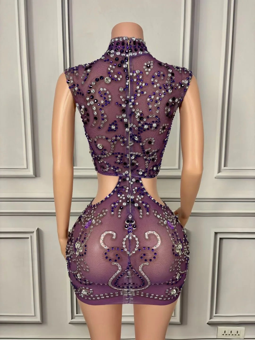 Make a glamorous statement with this sparkly luxury rhinestones mesh see-through cut-out sexy mini dress, perfect for parties, clubs, and special celebrations. This stunning gown is designed to highlight your figure while adding a touch of elegance with its intricate cut-out details. Ideal for birthdays, evening events, and prom, this eye-catching stage wear guarantees you��ll shine bright and captivate everyone around you! Embrace your inner star with this exquisite mini dress.