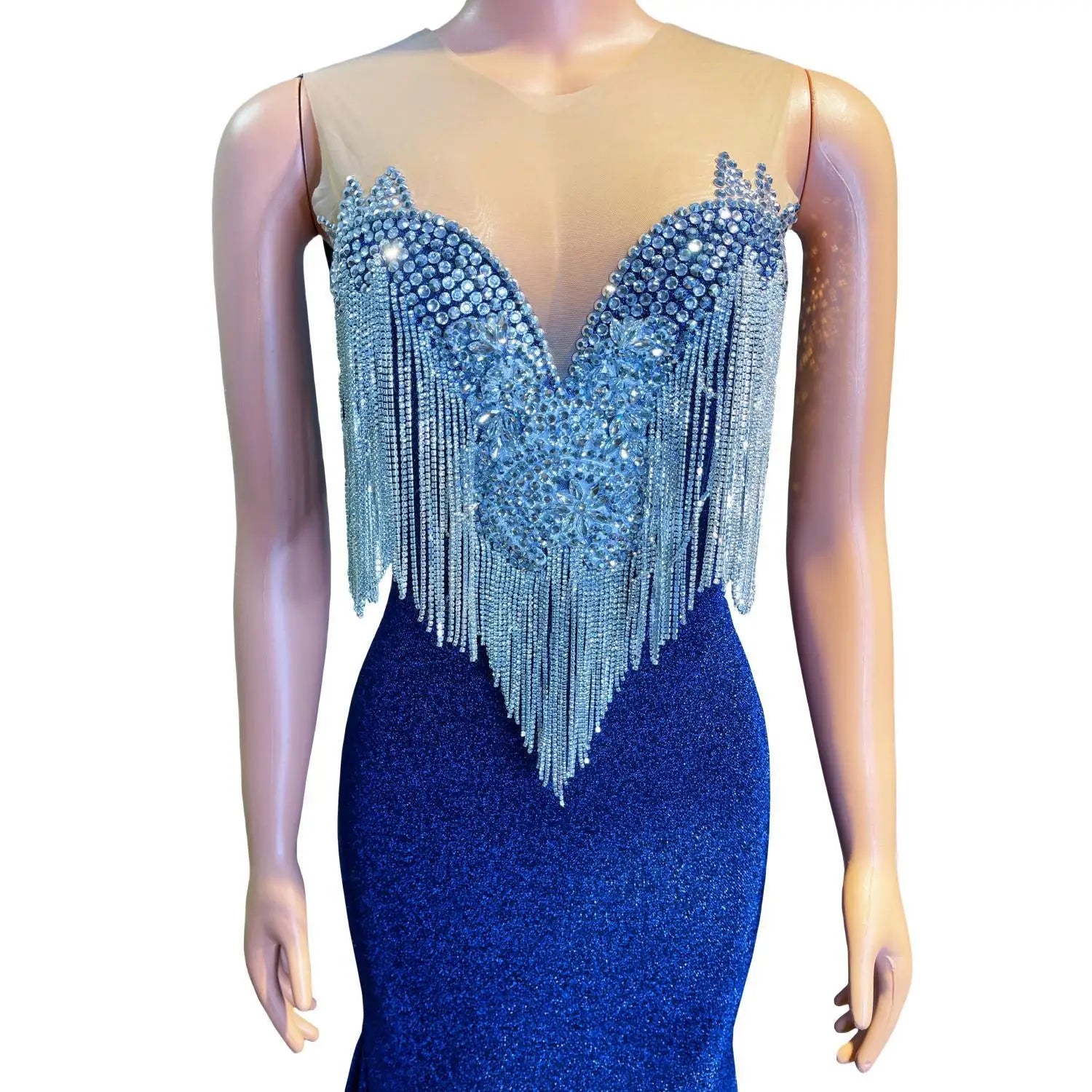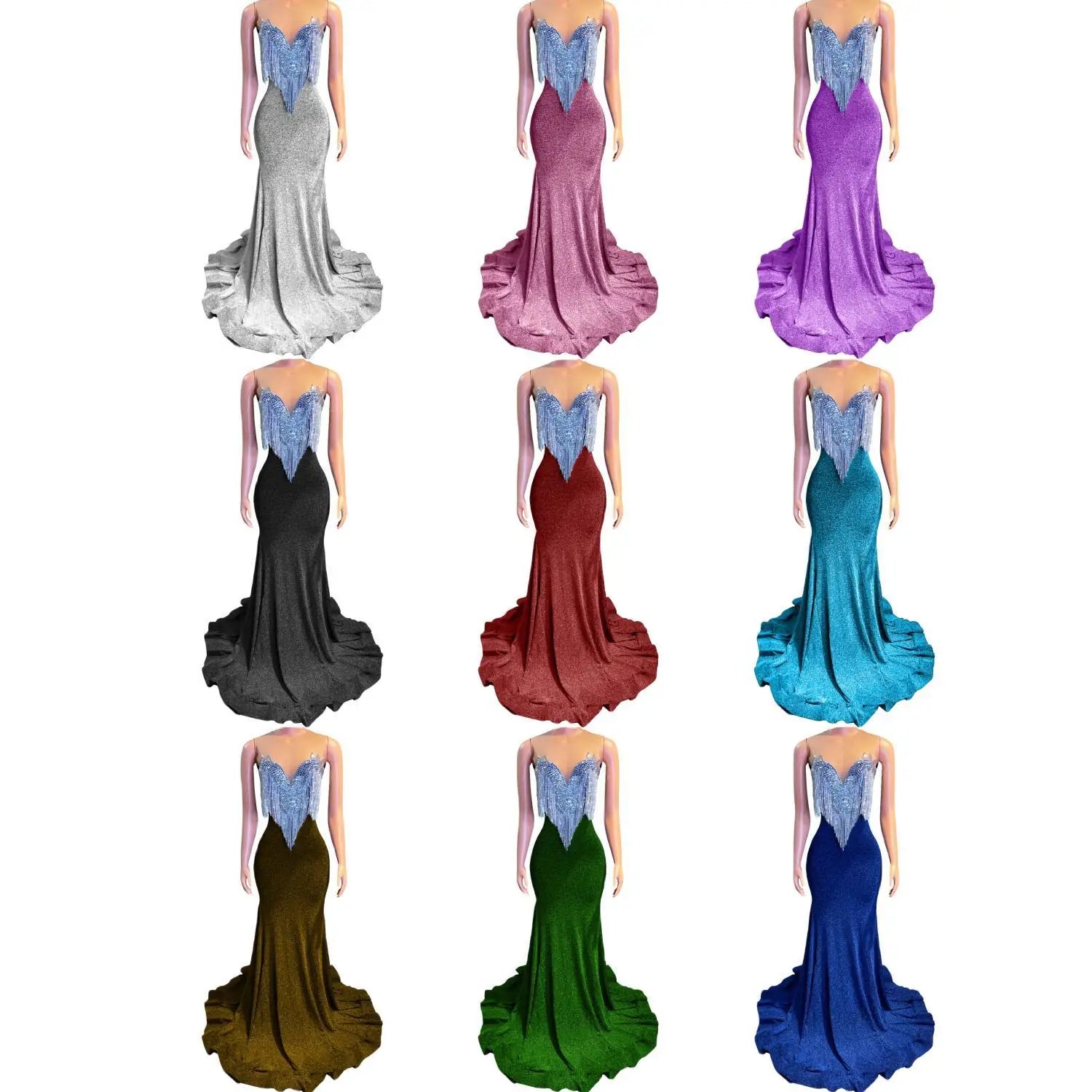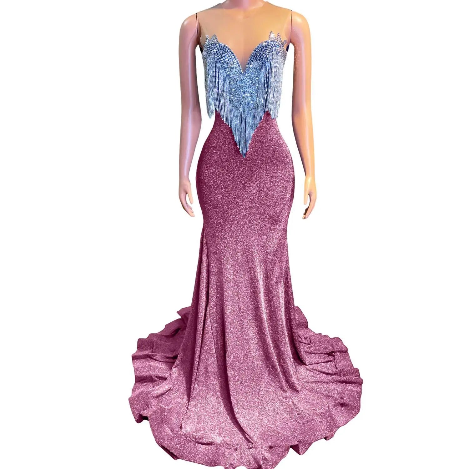 This Sparkly Mermaid Style Fitted Dress is a glamorous and eye-catching choice for prom, formal events, and special occasions. The dress features a fitted silhouette with crystal tassel sequins that add a touch of sparkle and elegance. Designed with an African girl in mind, this backless long prom dress exudes sophistication and style. Stand out in this sexy and sophisticated gown that is sure to make a statement at any event.
