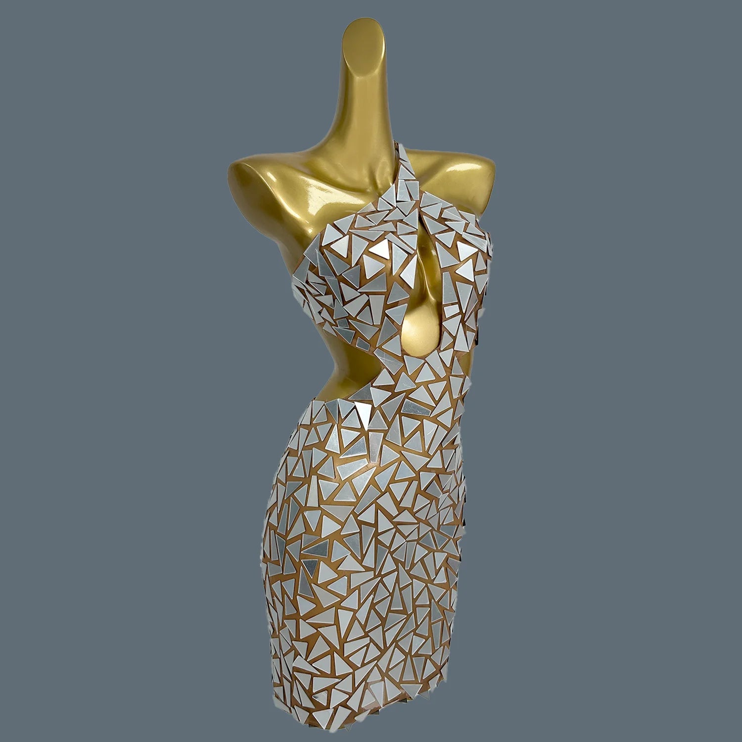 Shine at every celebration with this sparkly mirror hollow-out short dress, designed for the bold and stylish woman. This sexy halter evening dress is perfect for birthday parties, club outings, and stage performances. With its eye-catching design and flattering fit, this outfit ensures you make a memorable statement while enjoying elegance and comfort throughout the night.