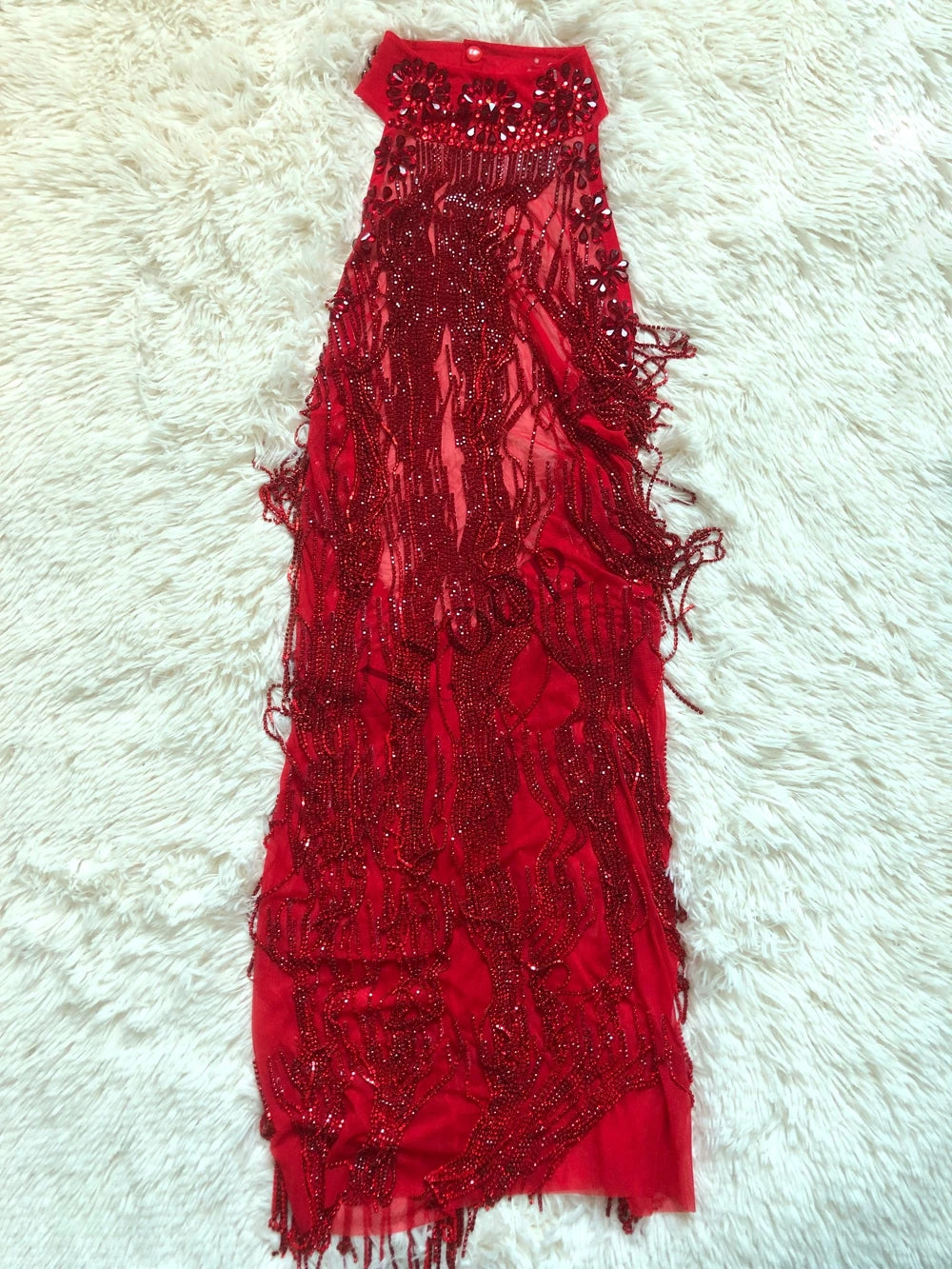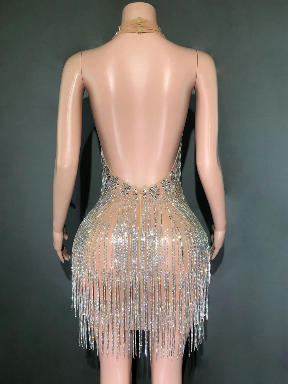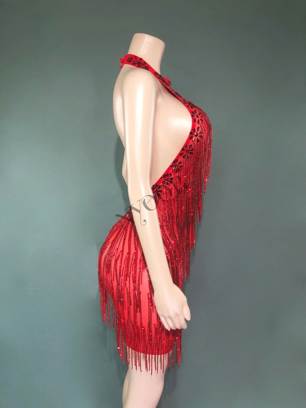 Sparkly Red Rhinestones Chains Backless Short Dress Women Sexy Birthday Evening Prom Celebrate Dress Photo Shoot Stage Wear