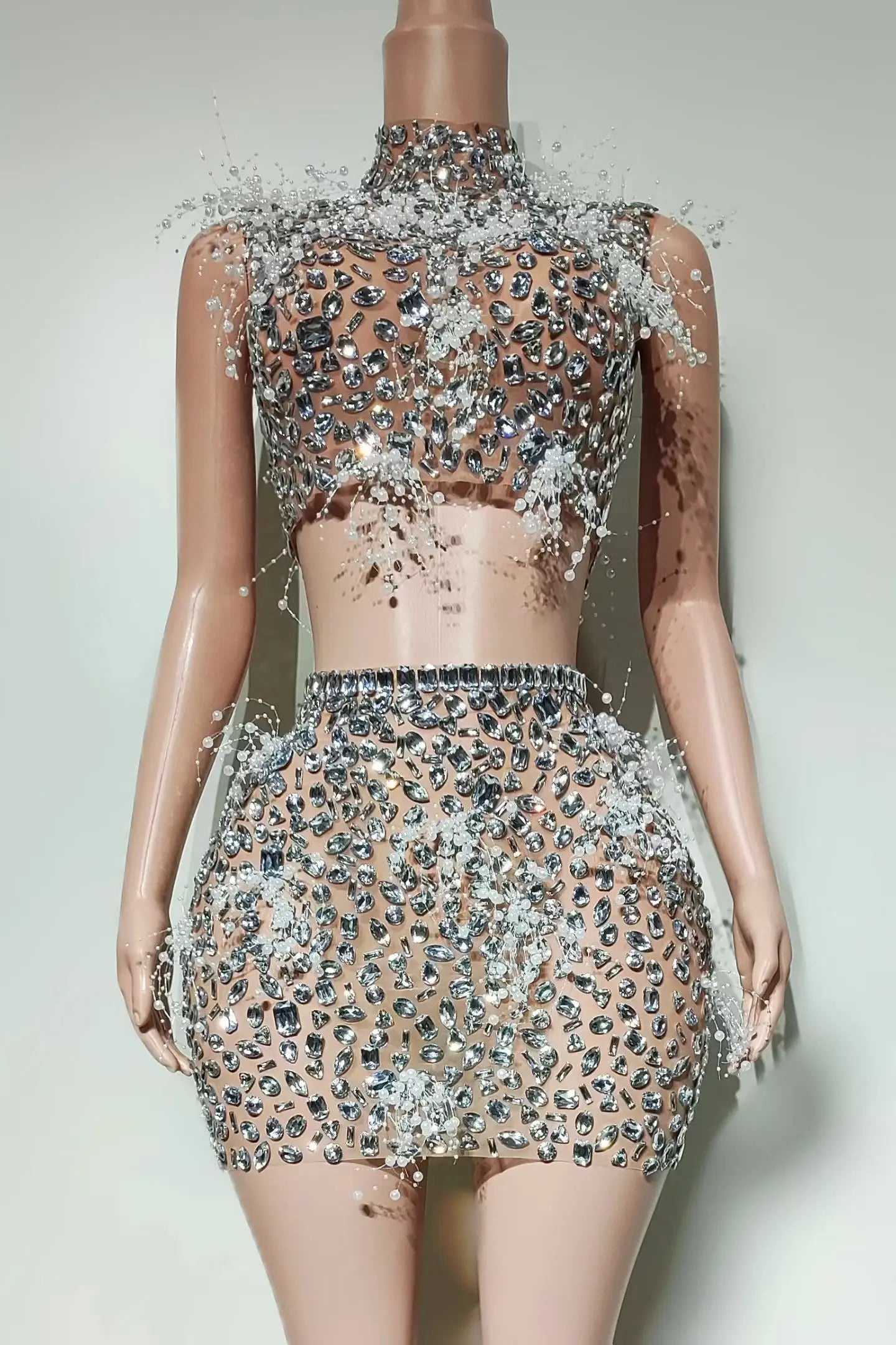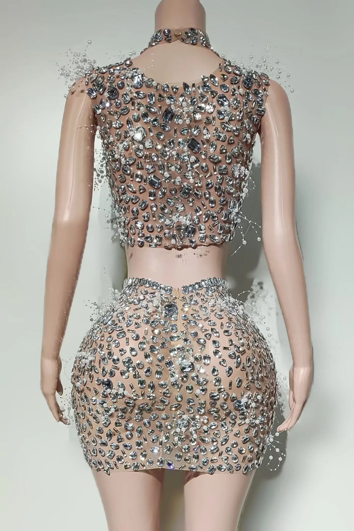 Sparkly Rhinestone Crop Tops Mini Skirt 2Pieces Set Luxury Birthday Theme Party Photo Shoot Wear Sleeveless Sexy Dress