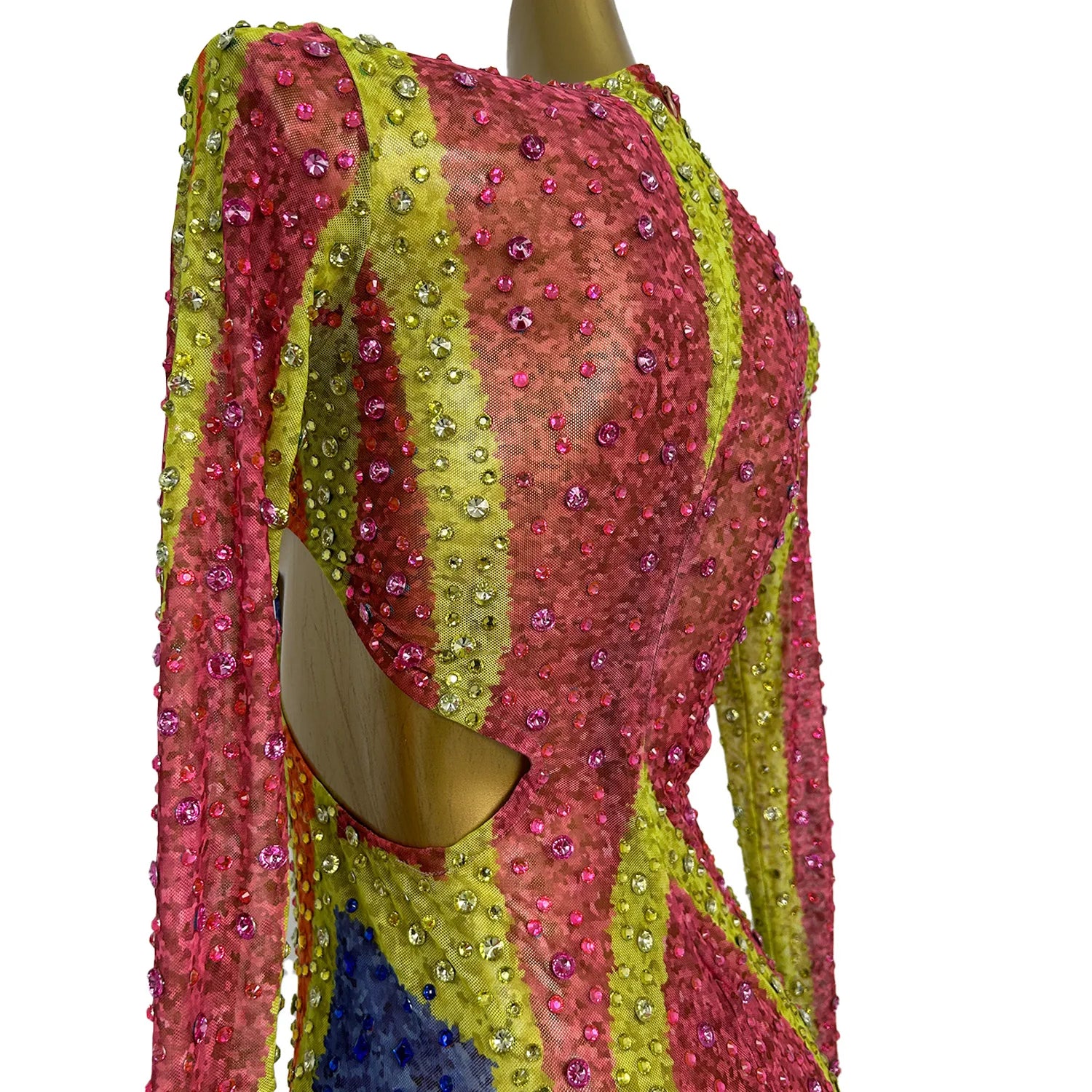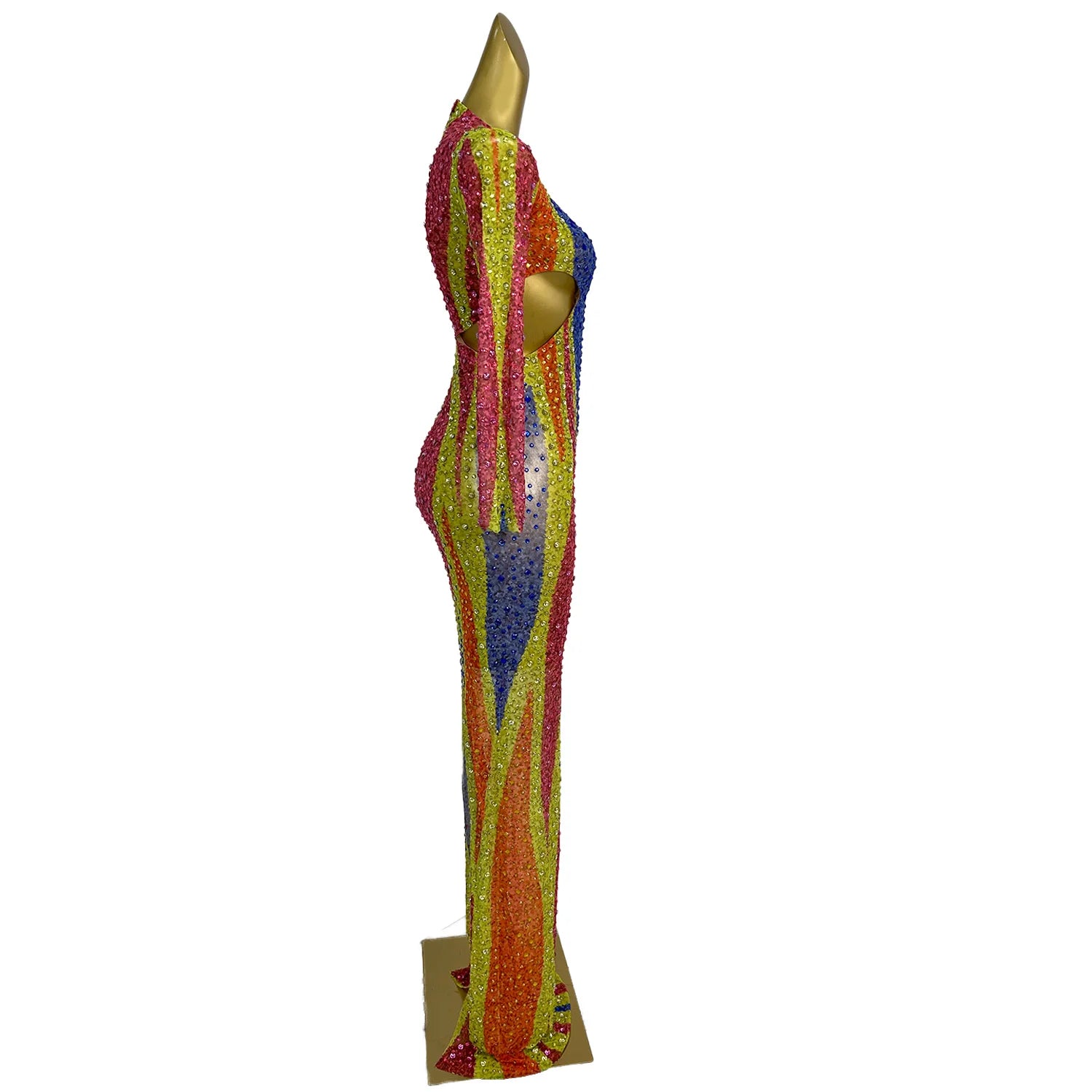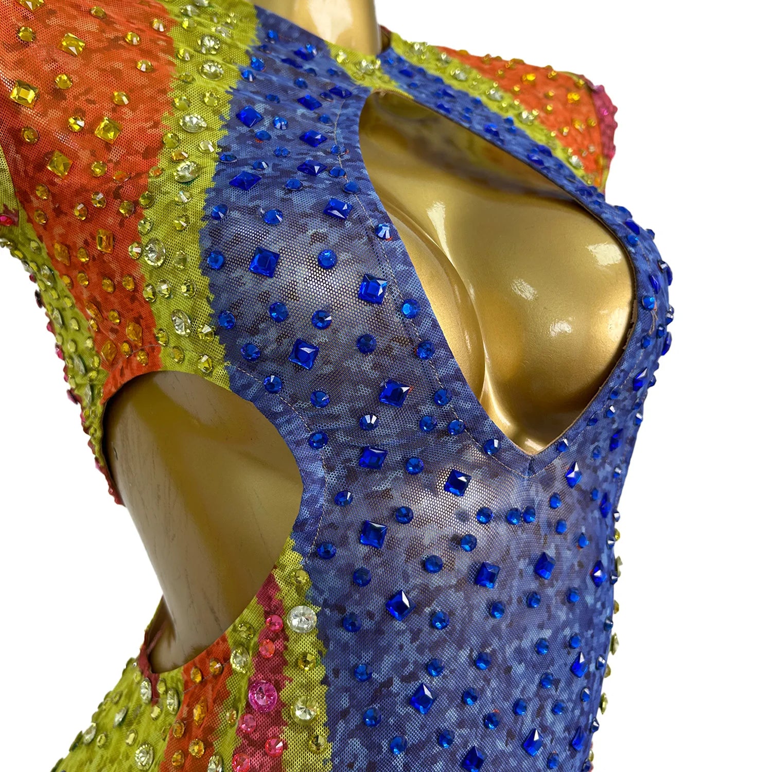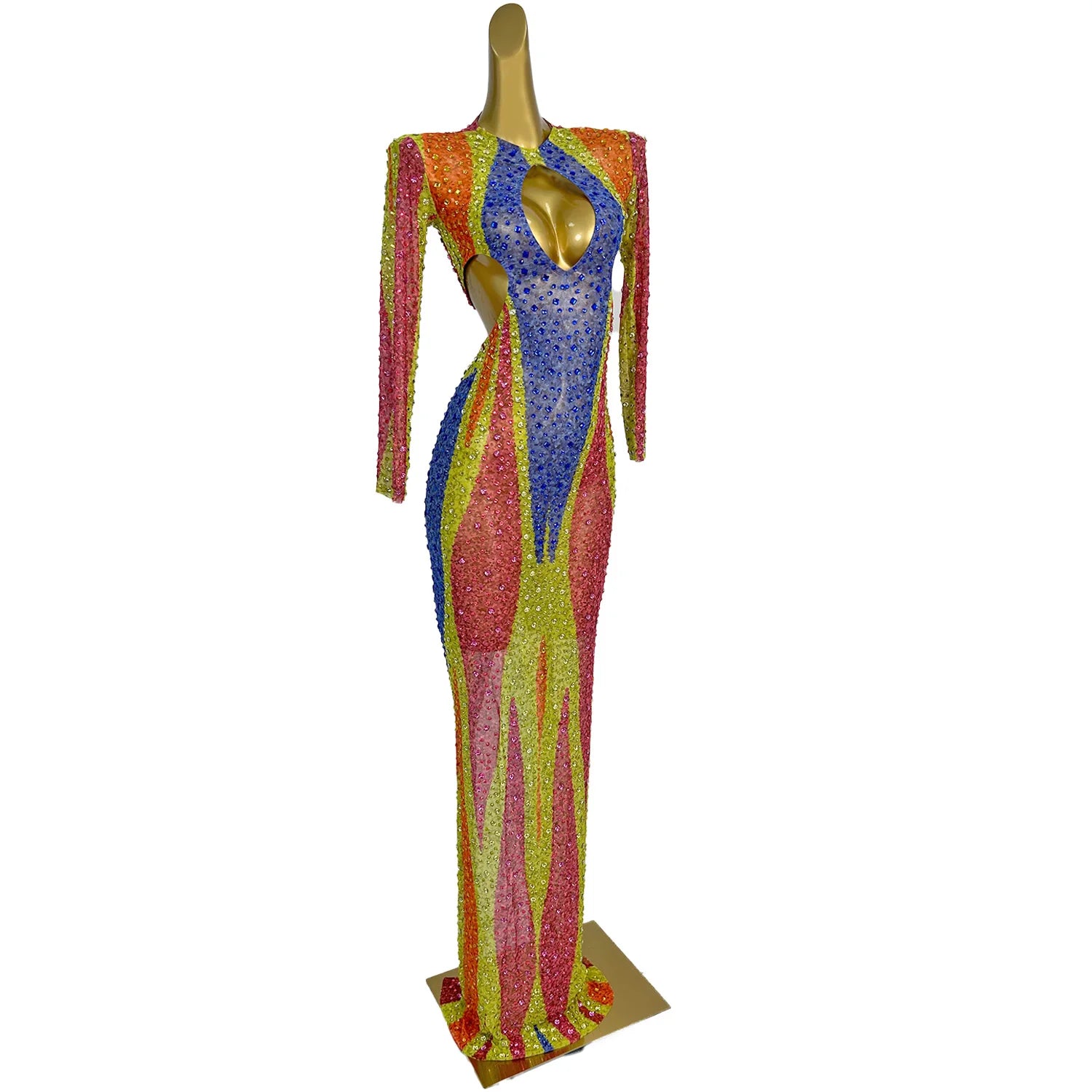 Sparkly Rhinestone Low-cut Fancy Evening Gown Celebrate Party Carnival Drag Queen Performer Wear Long Sleeves Sexy Dress