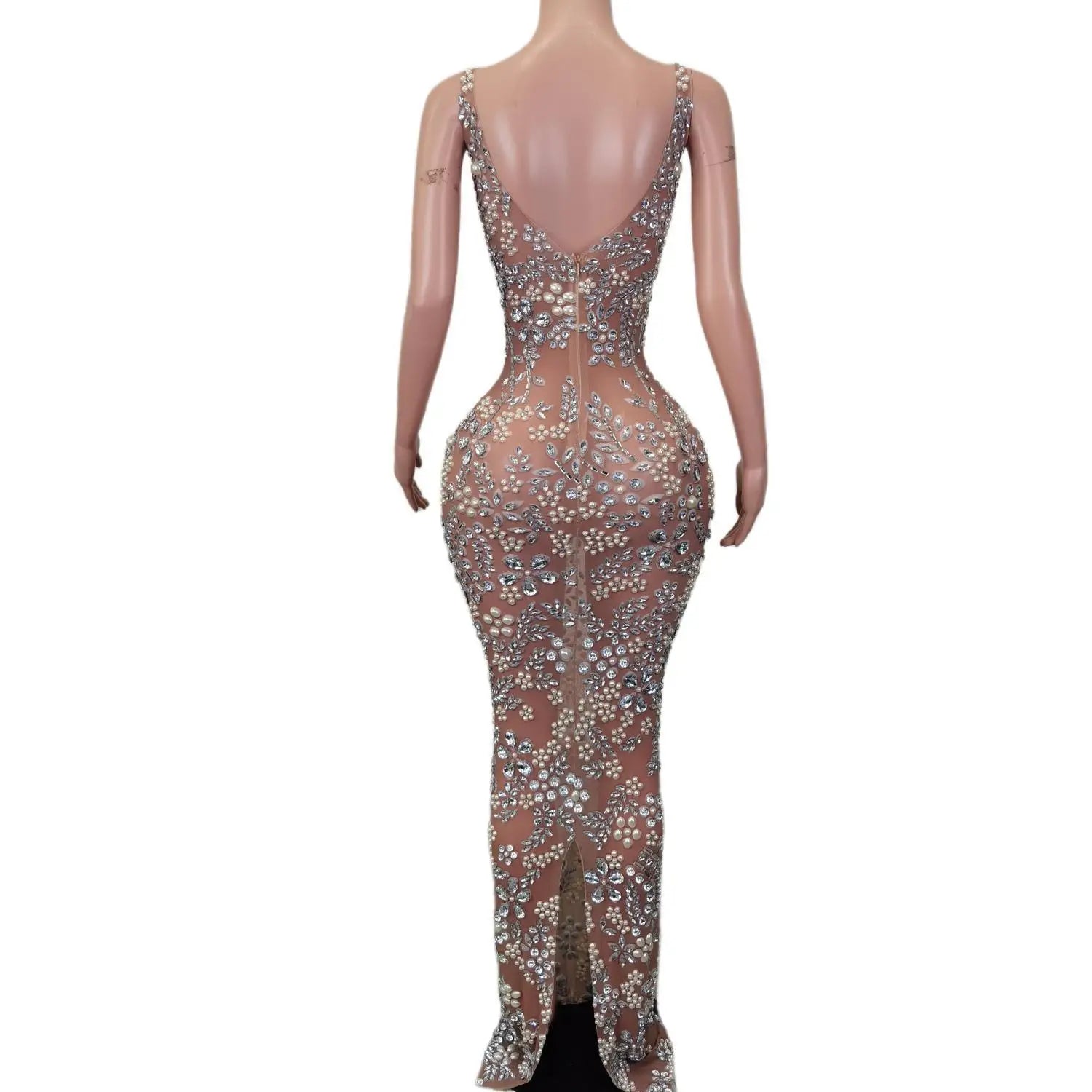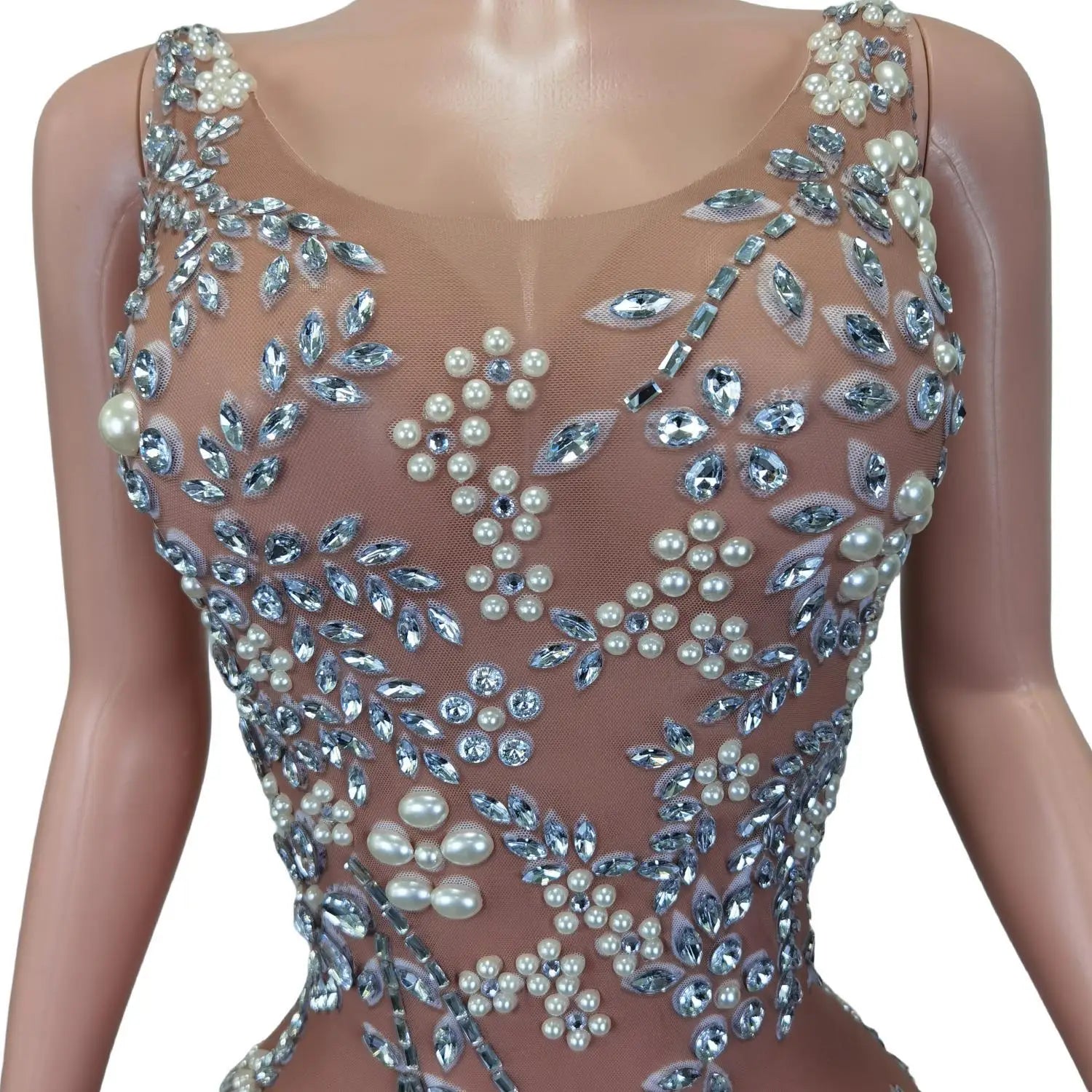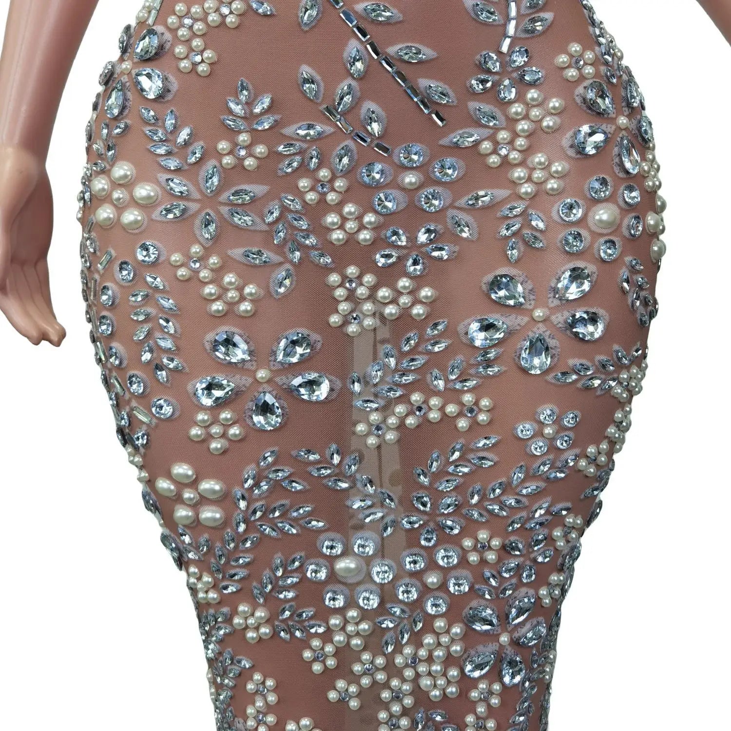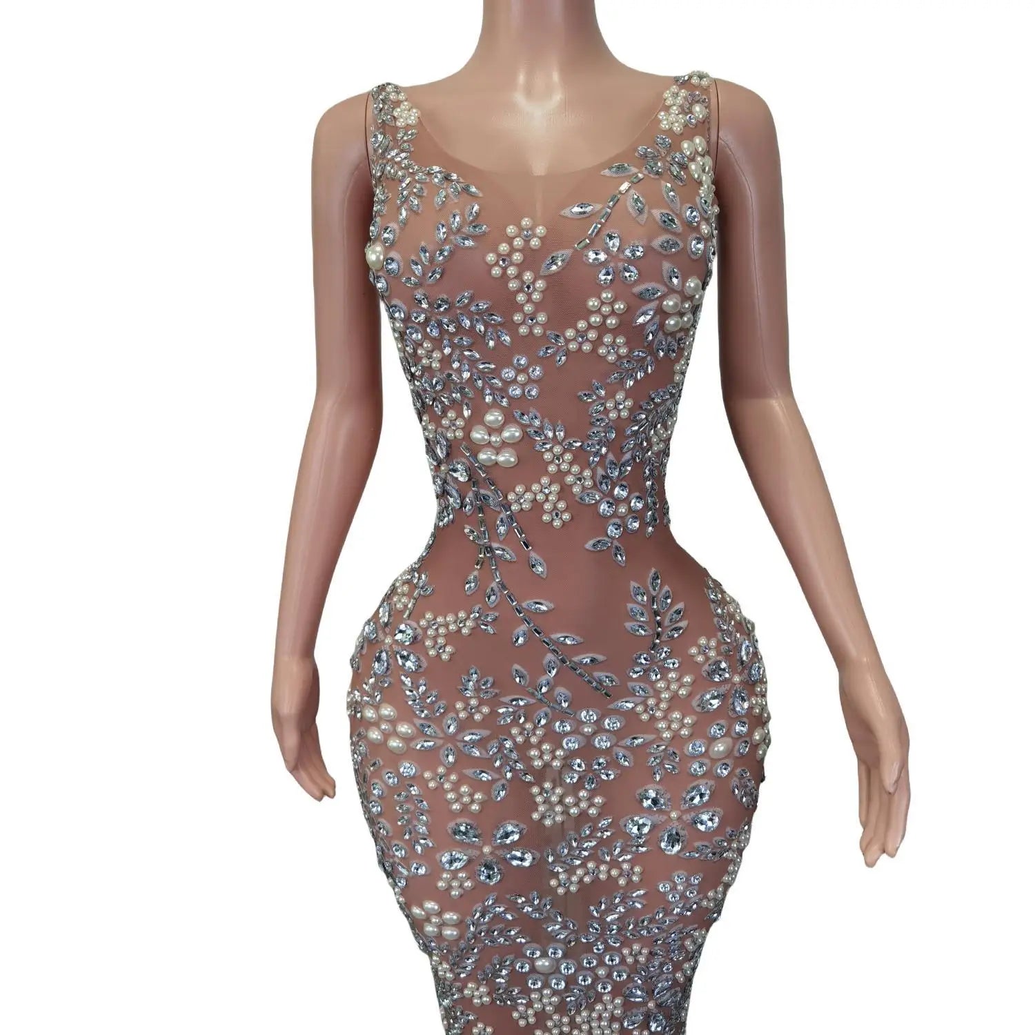 The Sparkly Rhinestone Sleeveless Sheer Dress is a show-stopping and glamorous choice for evening parties, birthdays, performances, or drag queen costumes. The intricate rhinestone detailing and sheer fabric create a dazzling and eye-catching look that is sure to make you stand out. Perfect for performers or anyone looking to make a bold statement, this dress exudes confidence and style. Shine bright and captivate the audience in this stunning and elegant gown designed to make you feel like a star.