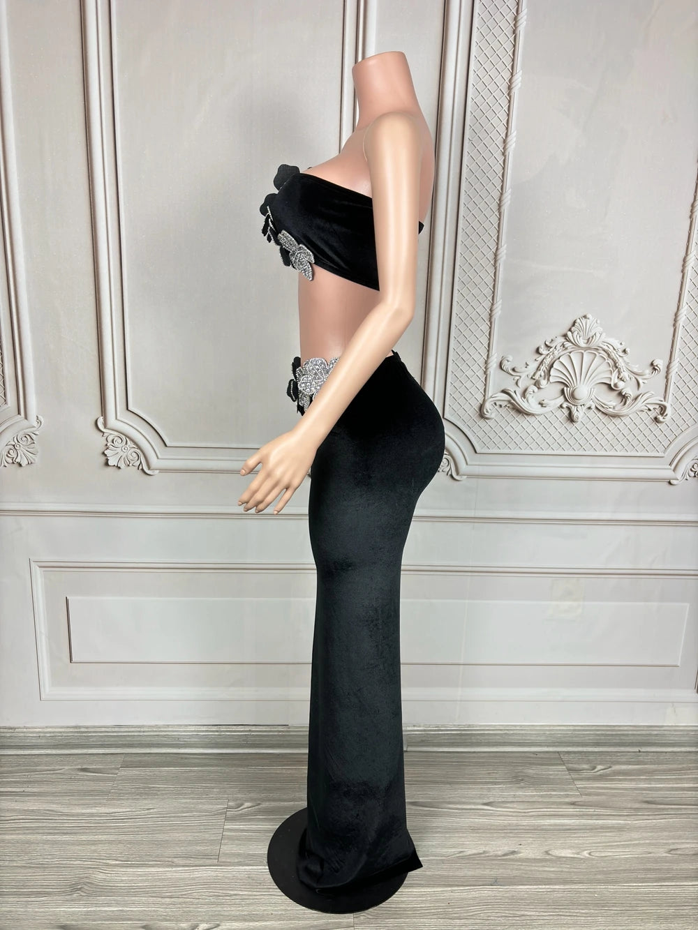 Sparkly Rhinestones Crop Top Long Skirt for Women Sexy Celebrate Evening Prom Birthday Dress Photo Shoot Wear