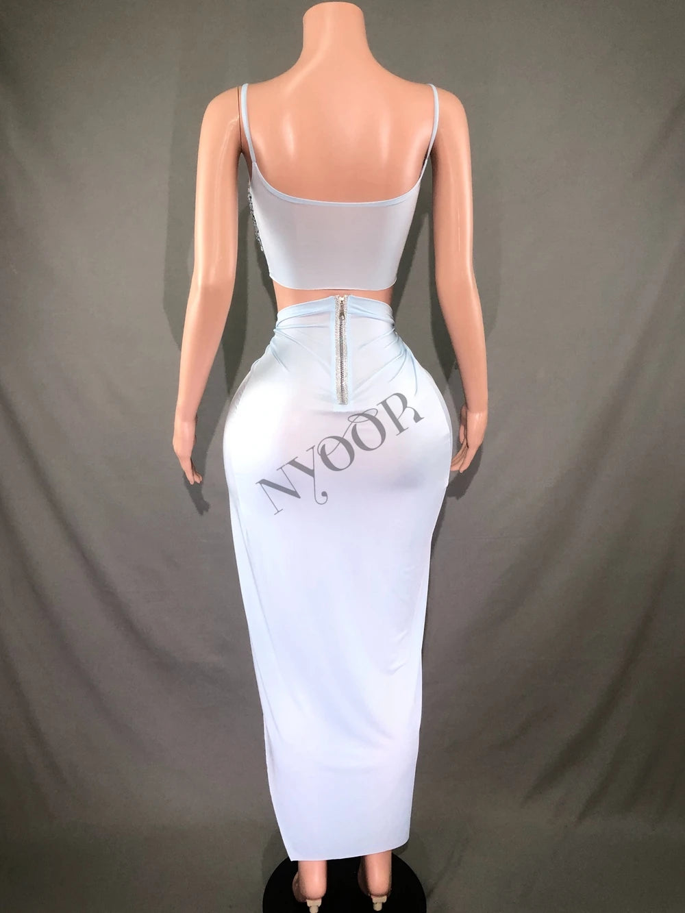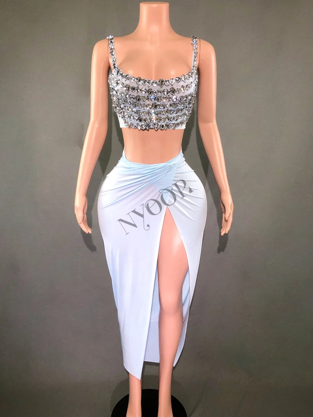 Sparkly Rhinestones Crop Tops High Split Skirt for Women Evening Party Birthday Photo Shoot Dress Singer Dancer Show Stage Wear
