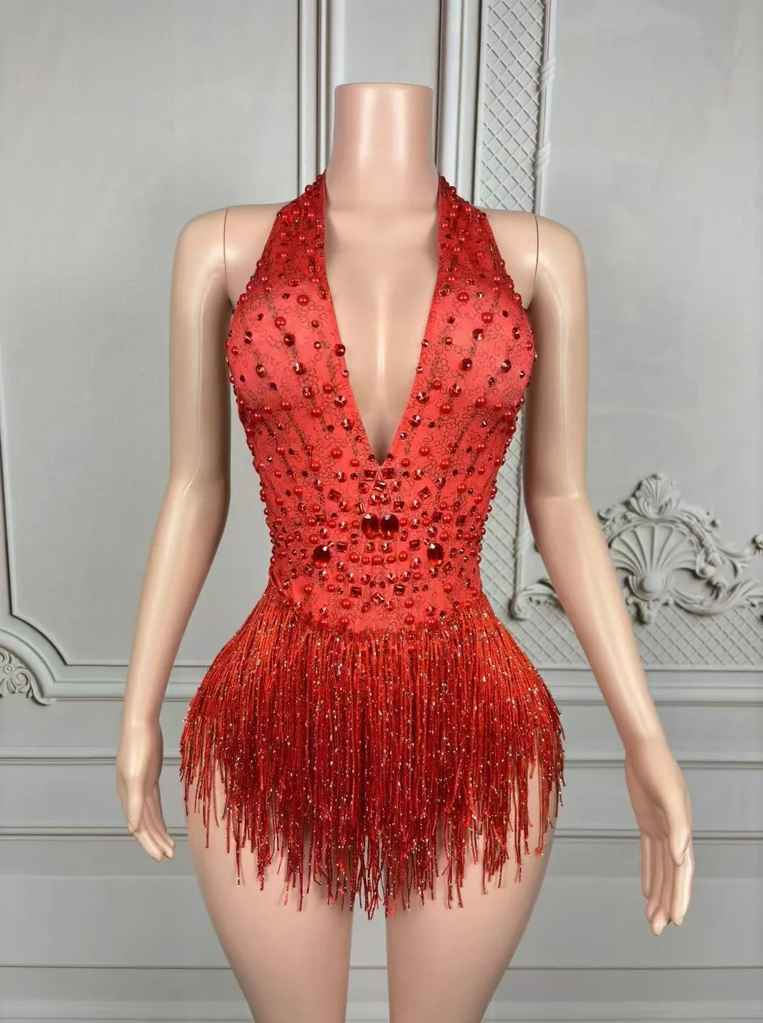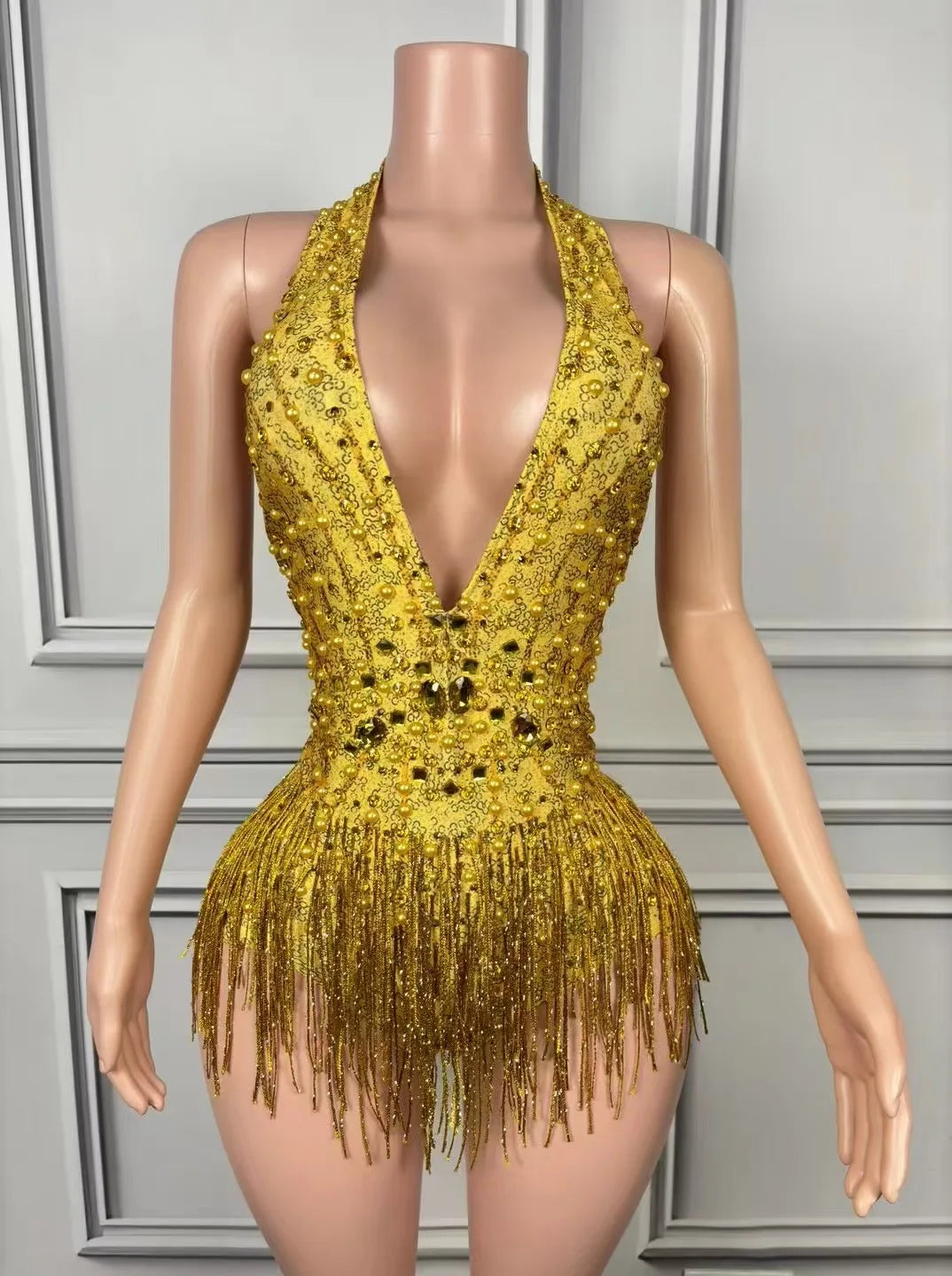 - Steal the spotlight in this Sparkly Rhinestones Fringes Bodysuit. The deep V neckline and contoured construction flatter the torso while dense rhinestone embellishments catch every light. Layered fringe trims hang from the hips and/or sleeves to create dynamic motion with each step and turn—ideal for singers, dancers, and nightclub performers. The bodysuit features secure closures, soft lining at the crotch, and reinforced seams so it performs as beautifully as it photographs.