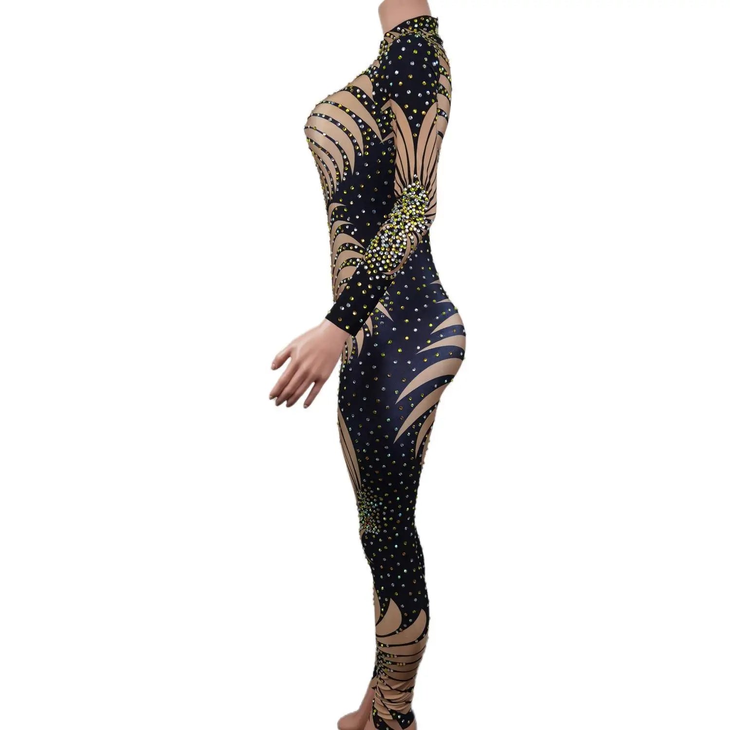 Sparkly Rhinestones Jumpsuit Sexy Nightclub Bar Wear Crystals Jumpsuit Costume Prom Birthday Party Celebrate Outfit