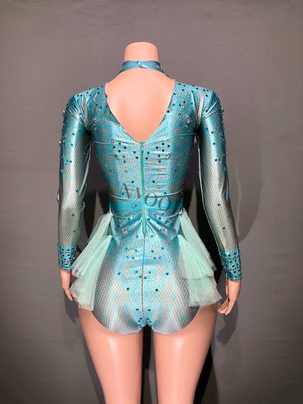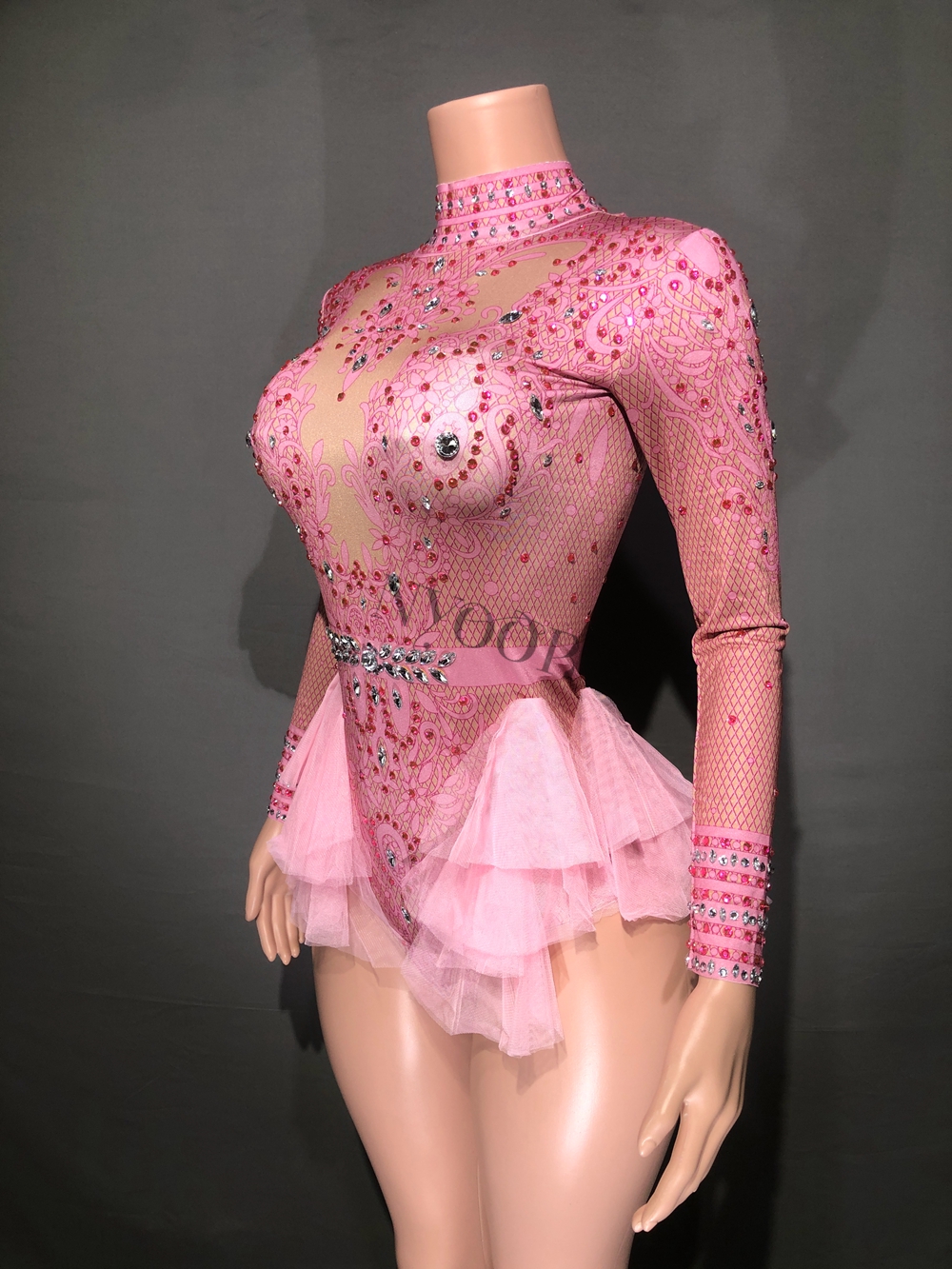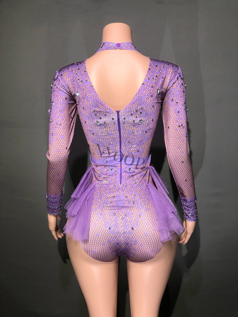 Sparkly Rhinestones Leotard for Women Party Birthday Dress Sexy Mesh Ruffles Performance Dance Costume Nightclub Stage Wear