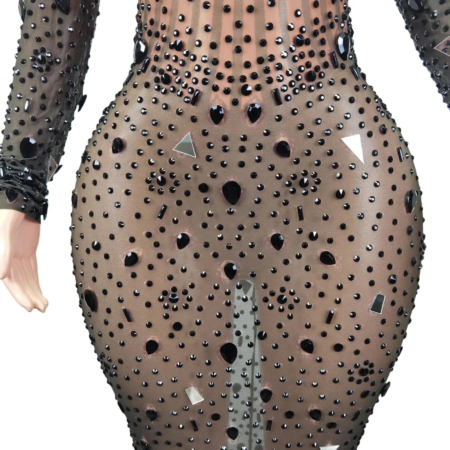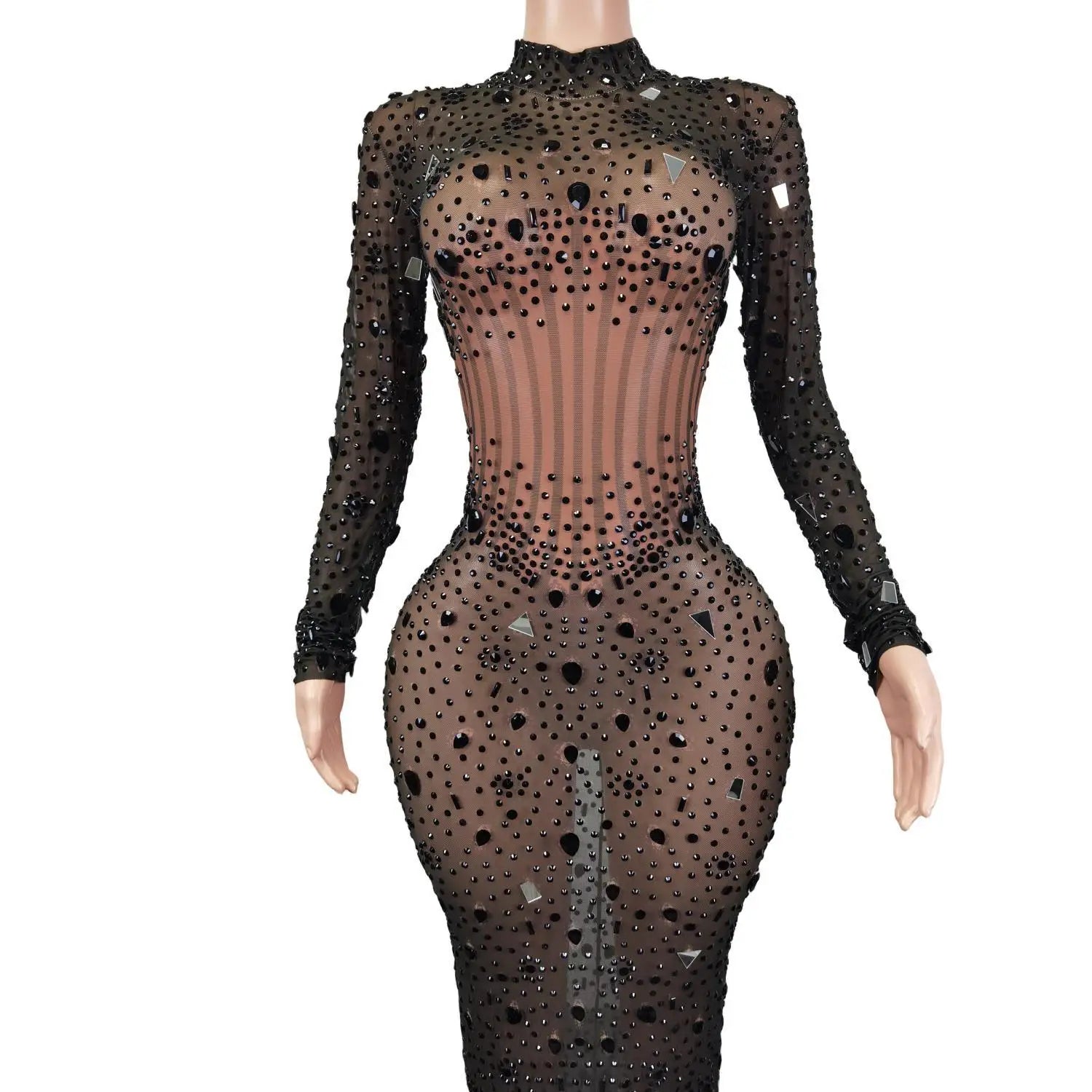 Elevate your evening look with this Sparkly Rhinestones Long Tail Mirror Dress. This luxurious and glamorous dress features a stunning design with Rhinestones and Black Mesh Stones, perfect for a Costume Party or Celebratory Event. The sexy and elegant back detail adds a touch of allure to this show-stopping outfit. Stand out in style and make a statement with this exquisite dress.