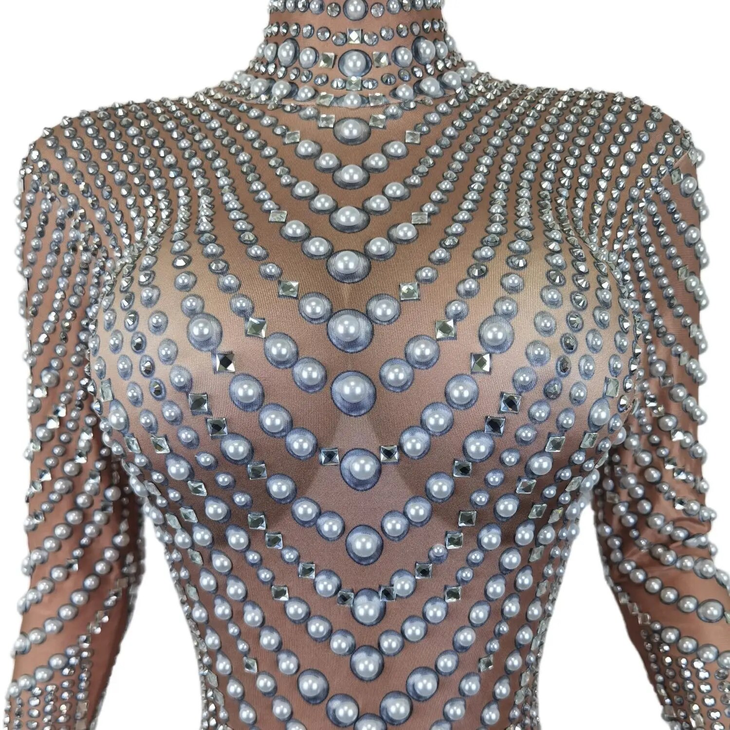 Sparkly Rhinestones Pears Jumpsuit for Women Sexy Long Sleeve Celebrate Party Birthday Outfit Dancer Stage Wear Zhenzhuwang