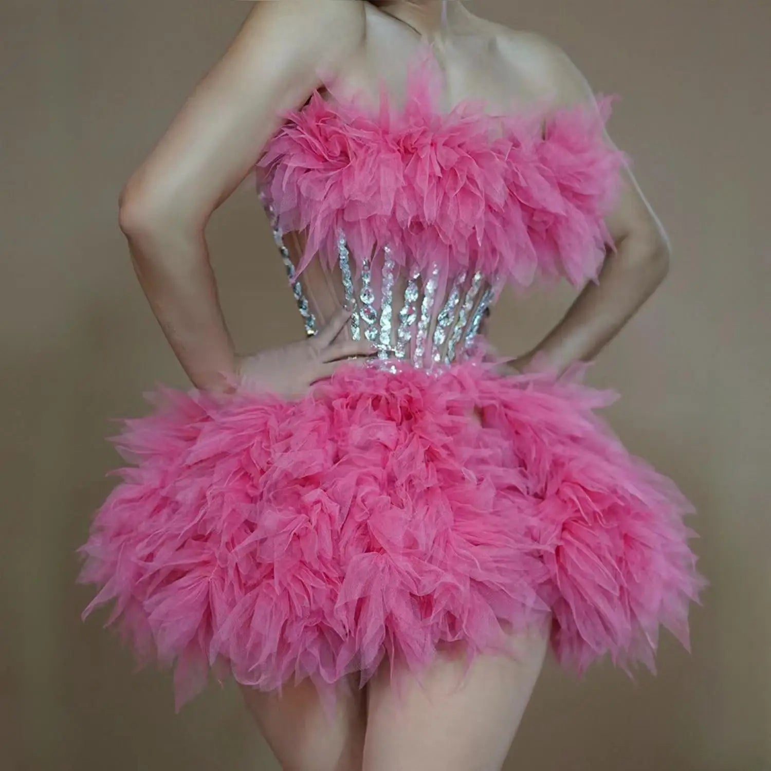Sparkly Rhinestones Sequins Short Dress Women Red Tube Top Prom Party Celebriate Homecoming Dress Singer Show Stage Wear