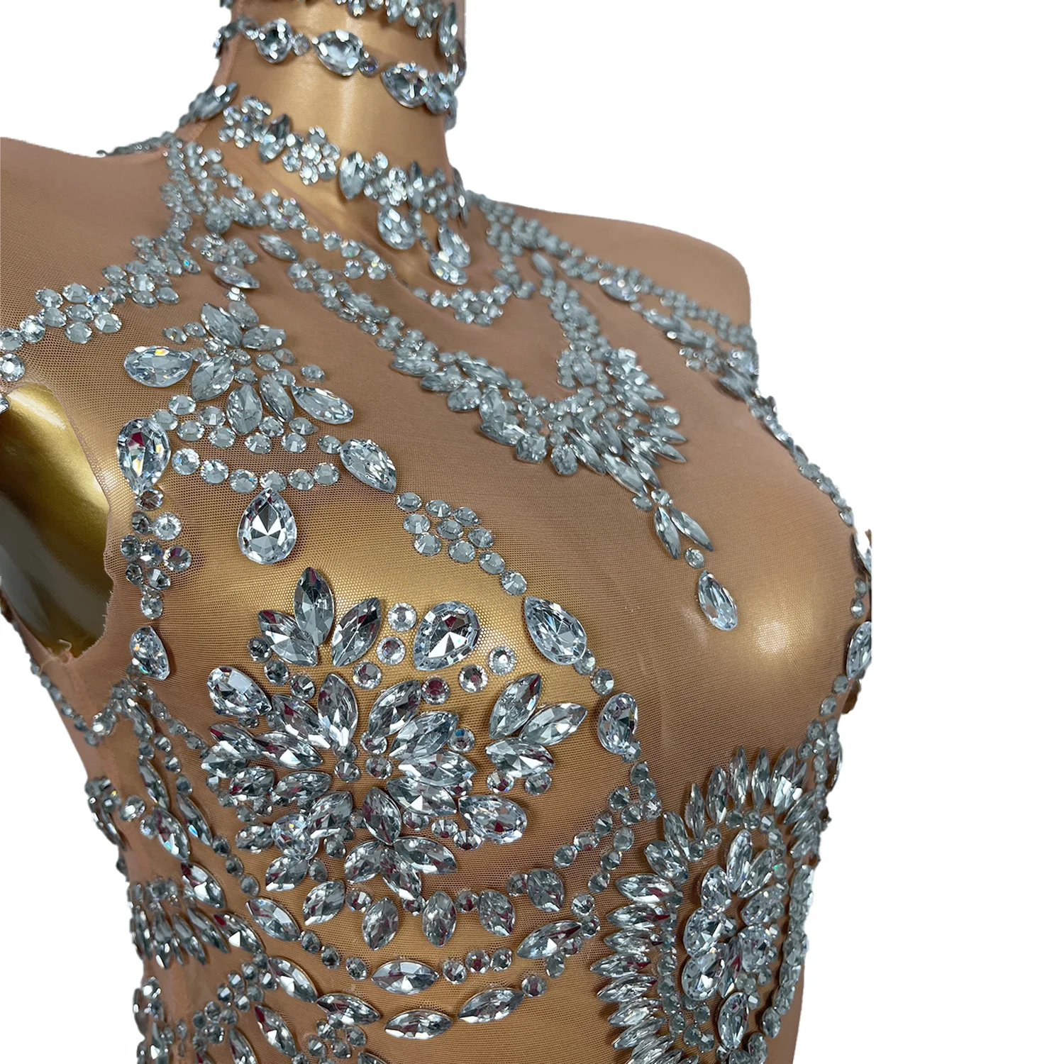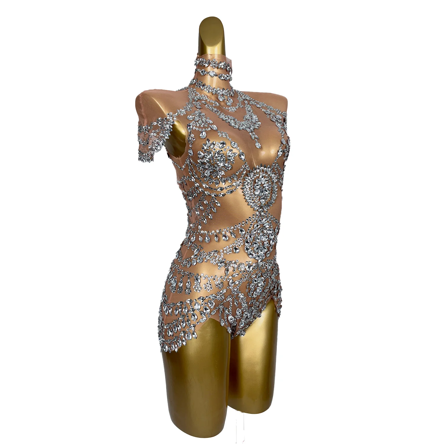 Sparkly Rhinestones Sexy See Through Women Jumpsuit Evening Party Night bar Show Outfit Stage Performance Costume Wuniang
