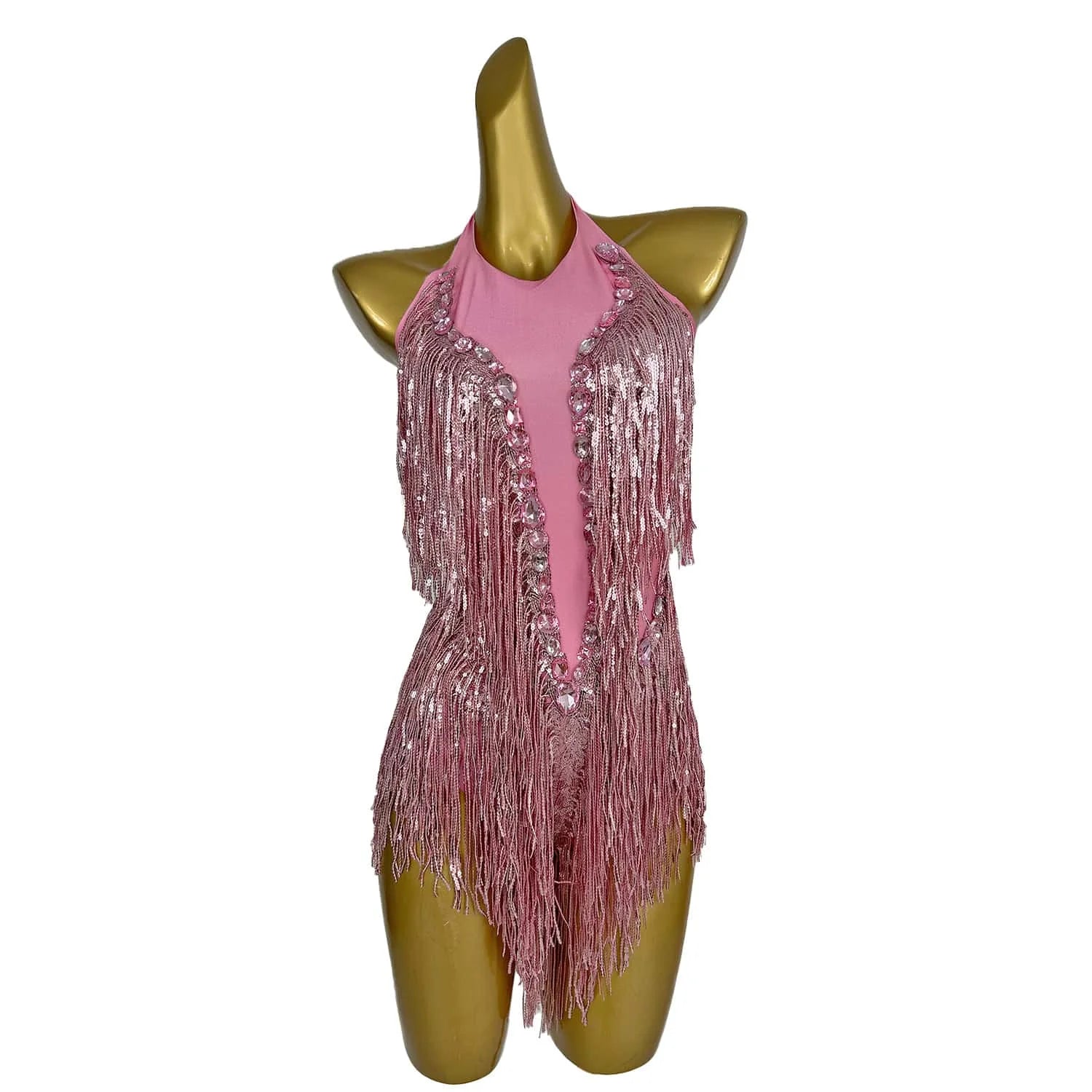 Sparkly Rhinestones Sleeveless Sequins Fringes Bodysuit Women Sexy Dance Costume Nightclub Singer Dancer Stage Wear Shuye