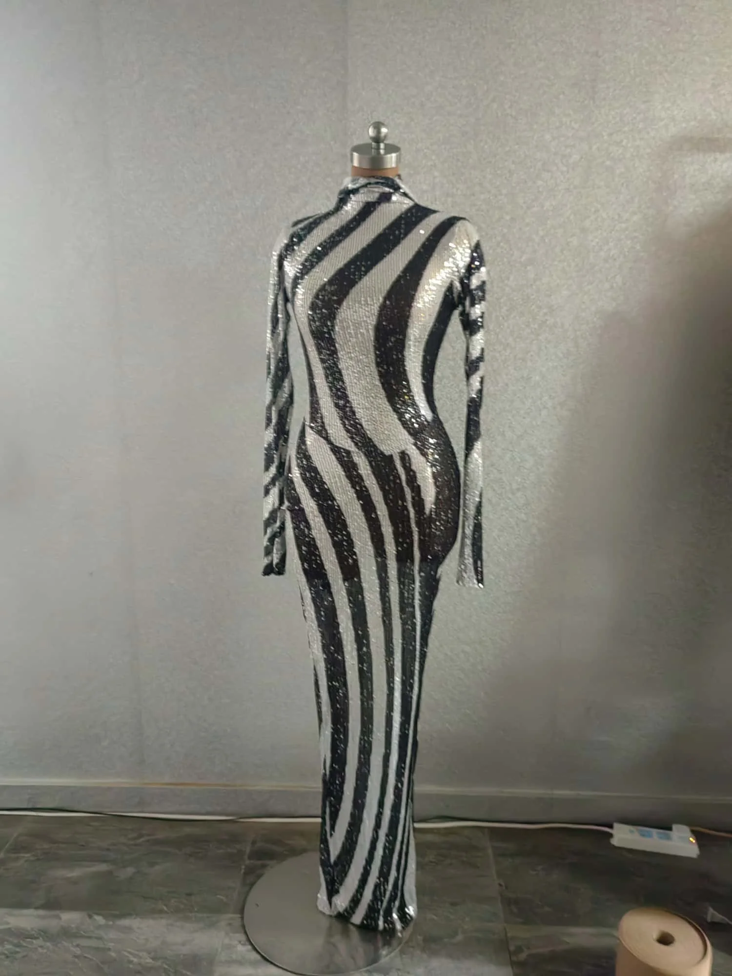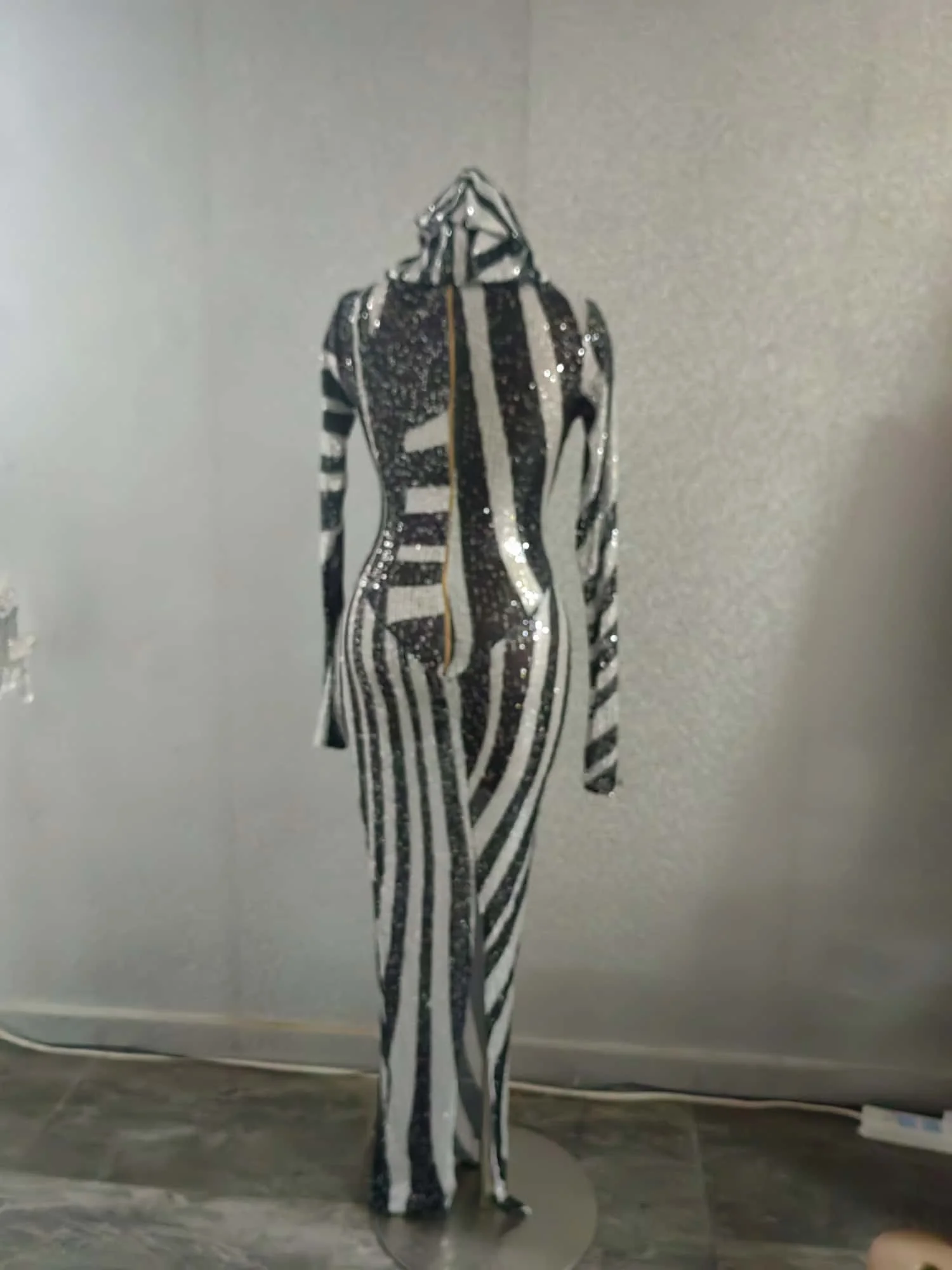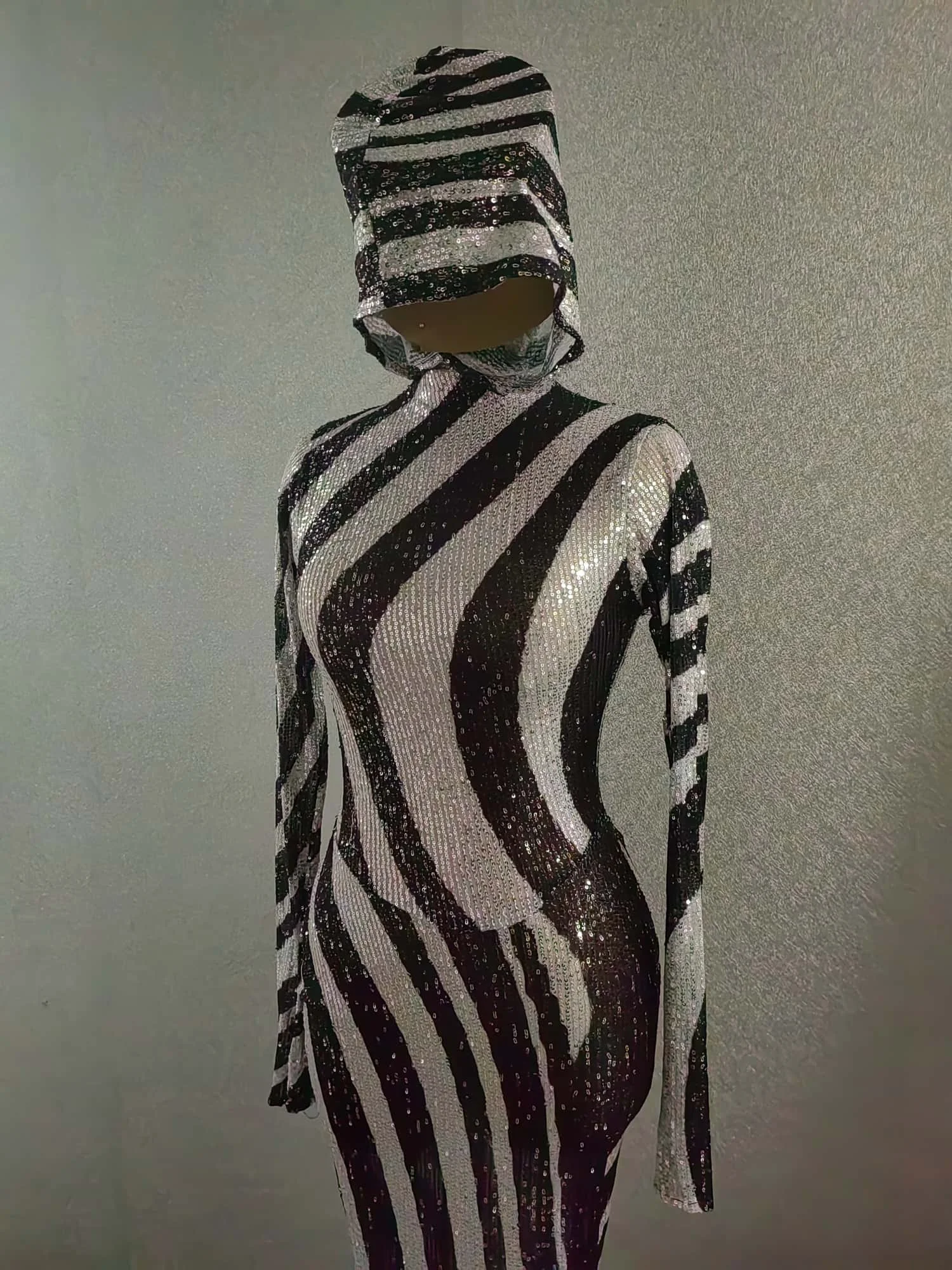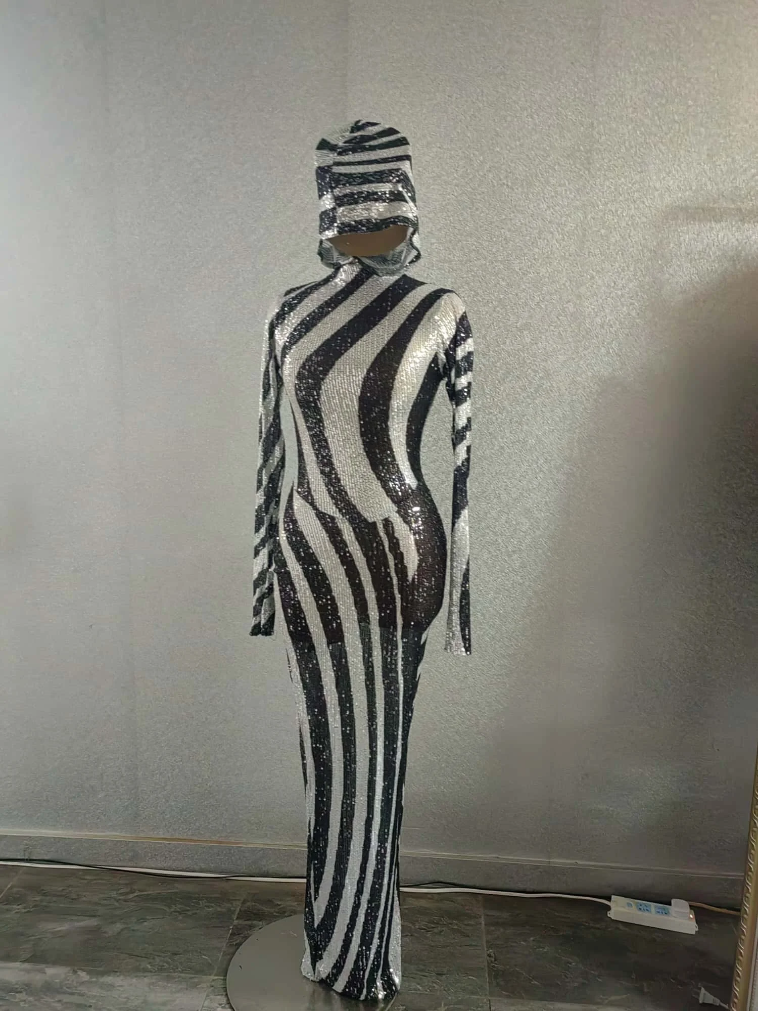 Sparkly Sequins Long Sleeve Cloak Long Dress Carnival Party Club Halloween Role Playing Sexy Costume Mystery Robe Xuanwo