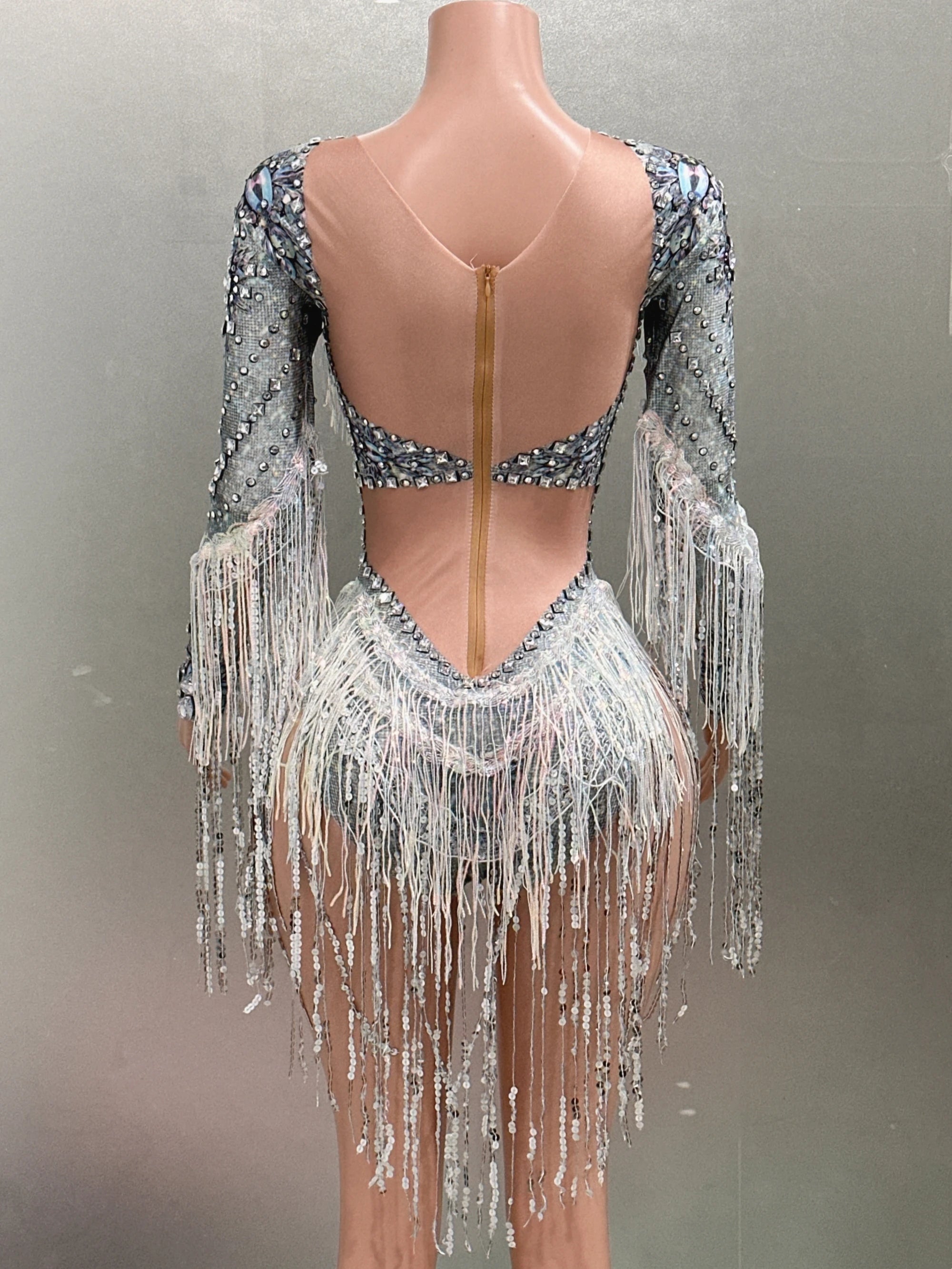 Turn heads with our Sparkly Sequins Rhinestones Tassels Printing Bodysuit, designed for performers who want to shine both on and off the stage. This eye-catching outfit features a dazzling mix of sequins and rhinestones, complemented by playful tassels that add movement and flair. Perfect for bar nightclubs, singing, or dancing performances, this bodysuit is tailored for comfort and style. Whether you're hitting the stage or enjoying an evening party, this vibrant costume ensures you stand out in every crowd!
