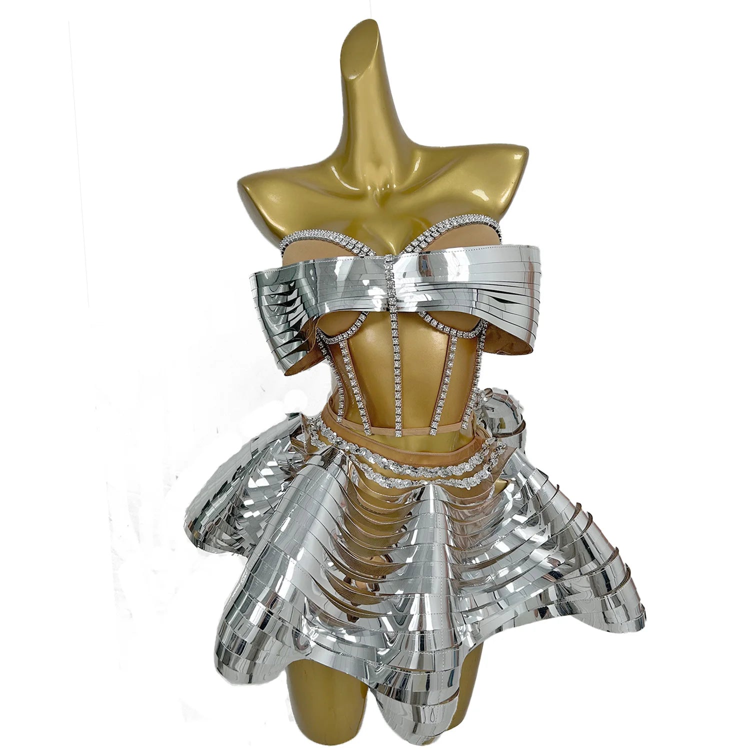 Sparkly Sequins Short Tube Bubble Skirt 2 Pieces Set Sexy Show Stage Wear Performance Dance Costume Party Celebrate Dress Feidie