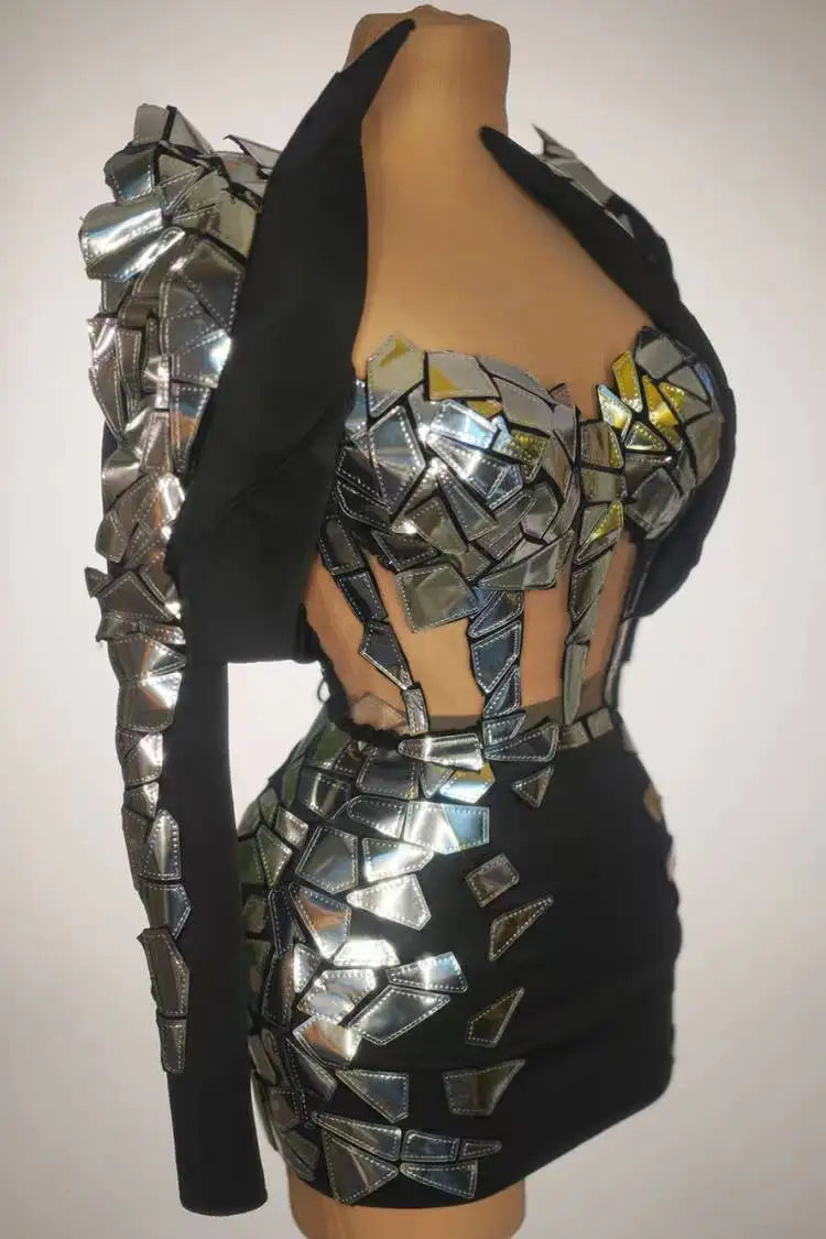 Get ready to shine with our Sparkly Sequins Suit Stage Crop Tops Mini Skirt Jacket 3-Piece Set! This dazzling ensemble is designed for the ultimate night out, featuring a stunning crop top and a chic mini skirt, both adorned with eye-catching sequins that reflect the light beautifully. The matching jacket adds a touch of sophistication, making this outfit perfect for nightclubs, music festivals, or stage performances. Embrace your bold side and elevate your dress-up game with this fabulous performance outfit, guaranteed to make you the center of attention wherever you go!