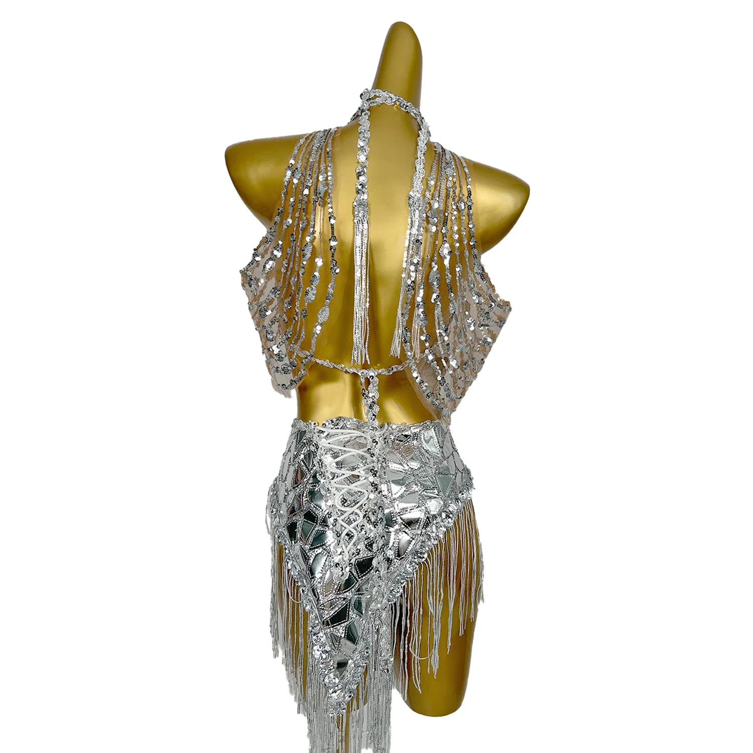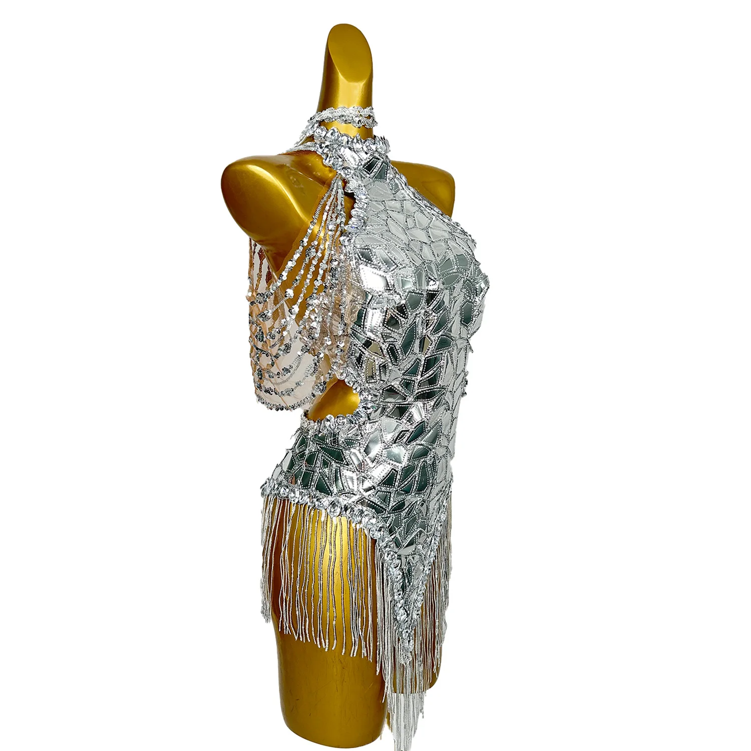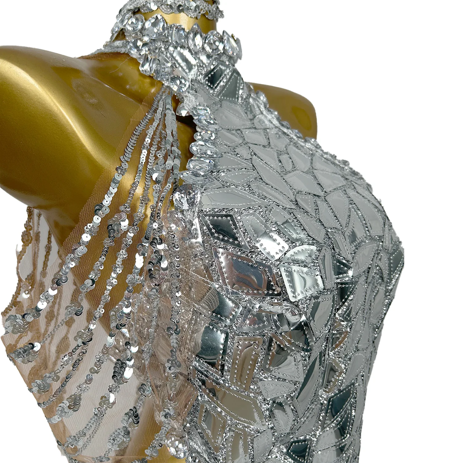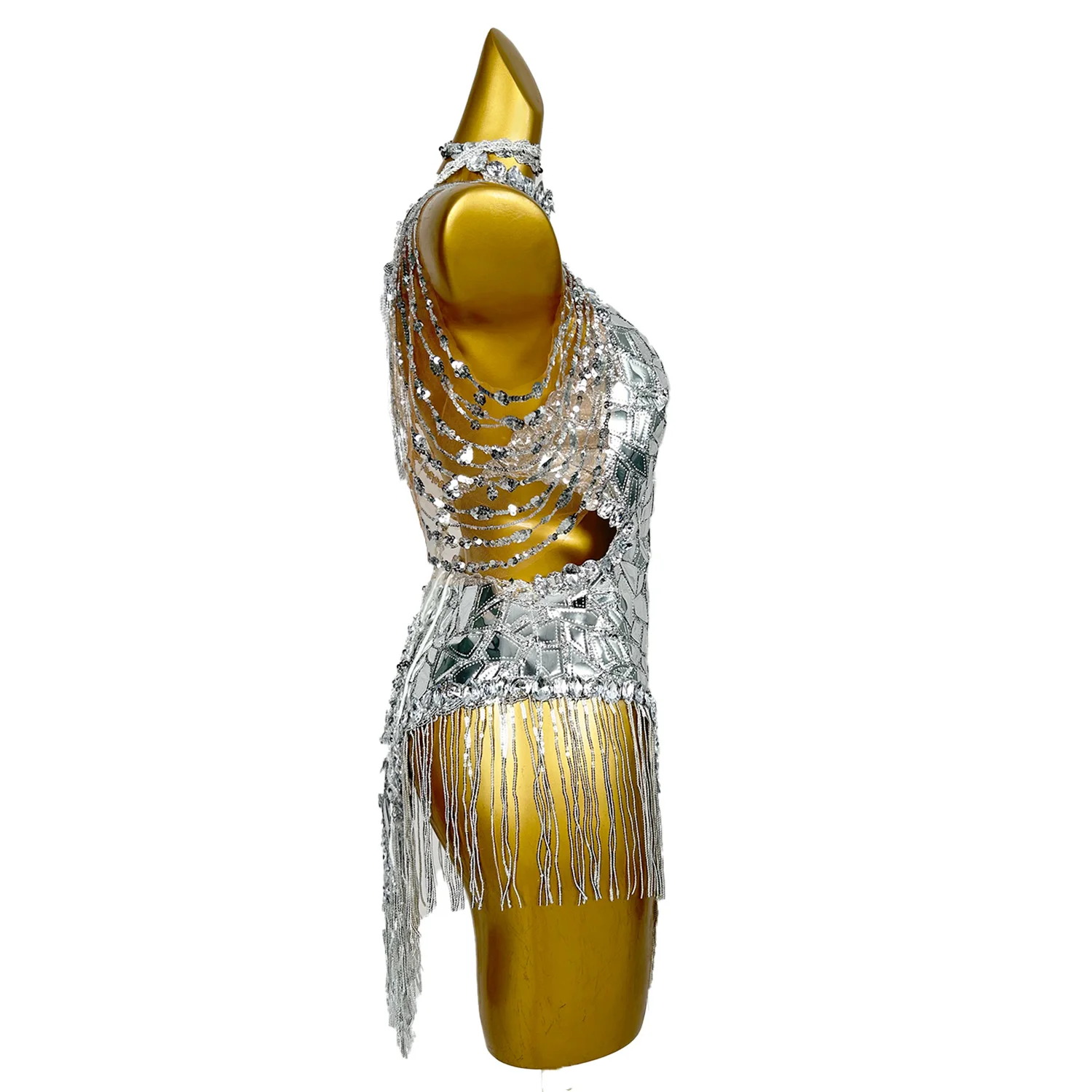 Sparkly Shinning Sequins Dresses Women Dancer Gogo Nightclub Party Dresses Silver Tassel Night Out Drag Queen Outfit Mojing