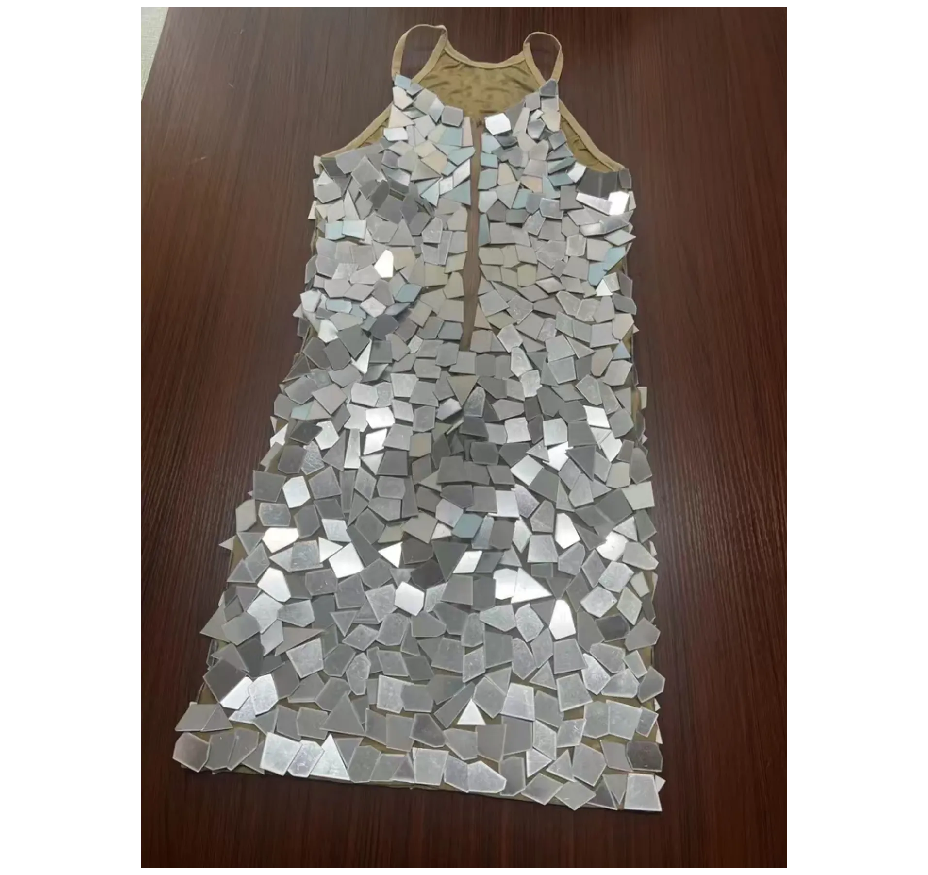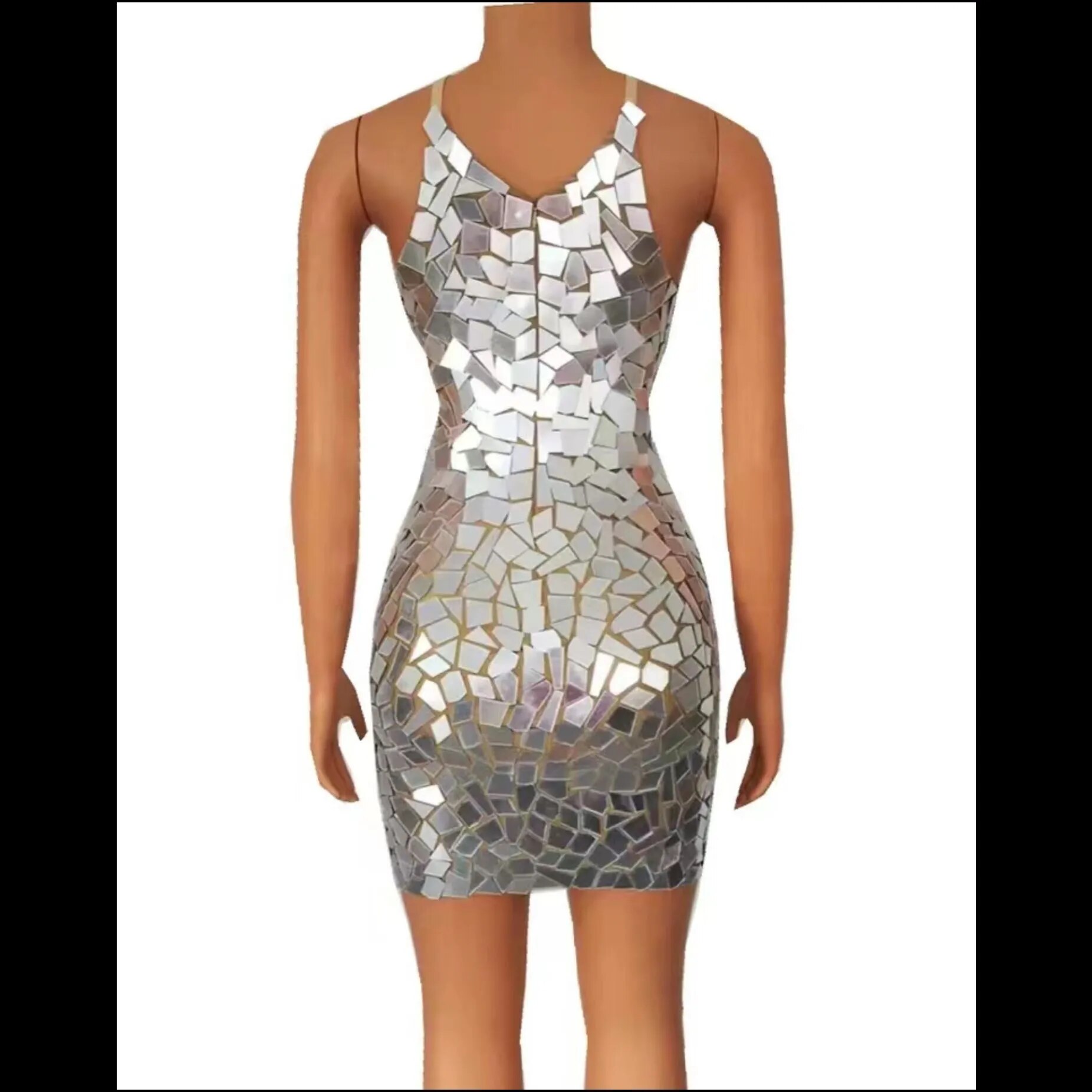 Sparkly Silver Mirrors Sleeveless Dress EveninoBirthday Celebrate Outfit Party Sexy CostumeDancer Performance Show Clothes