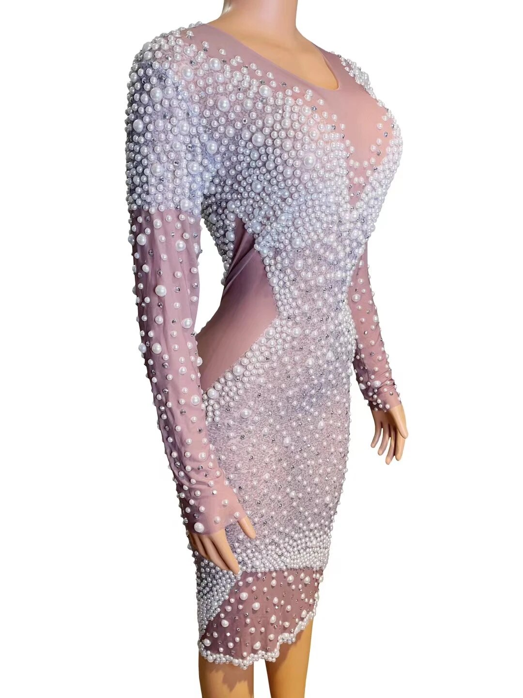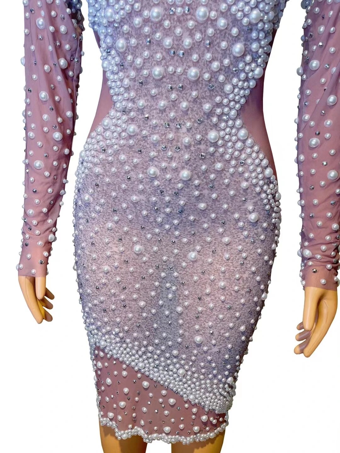 Sparkly Silver Rhinestone Mirror Elastic fabricshort Dress Women Birthday Stage playCelebrate Dress Dancer Party Show Dress