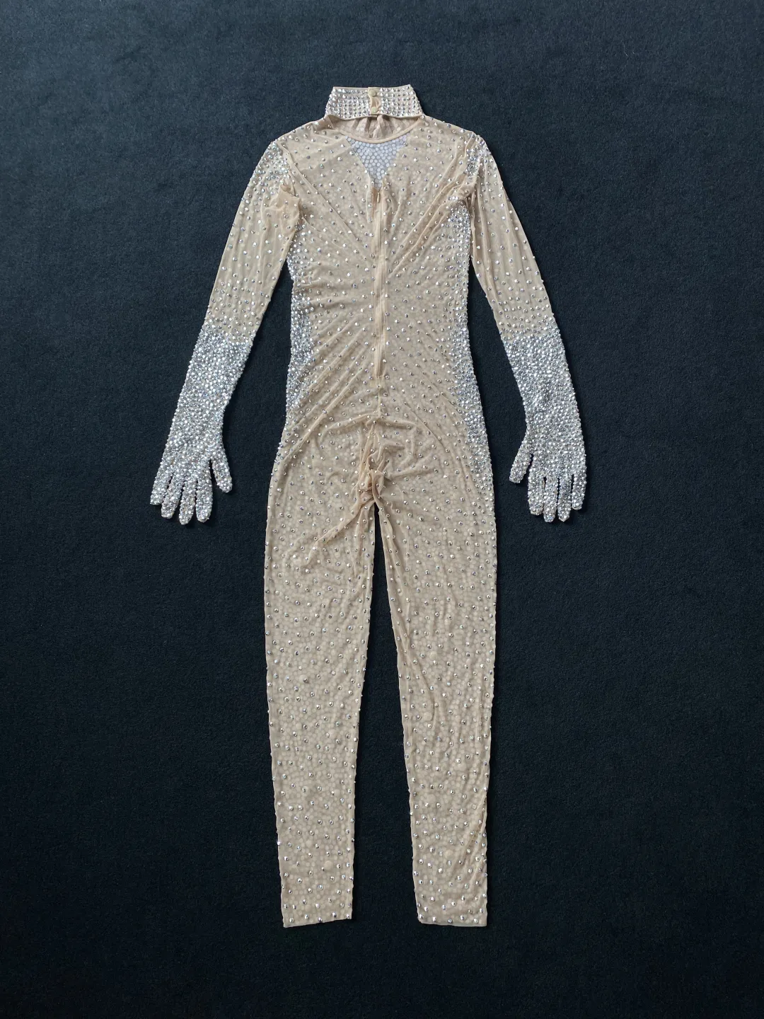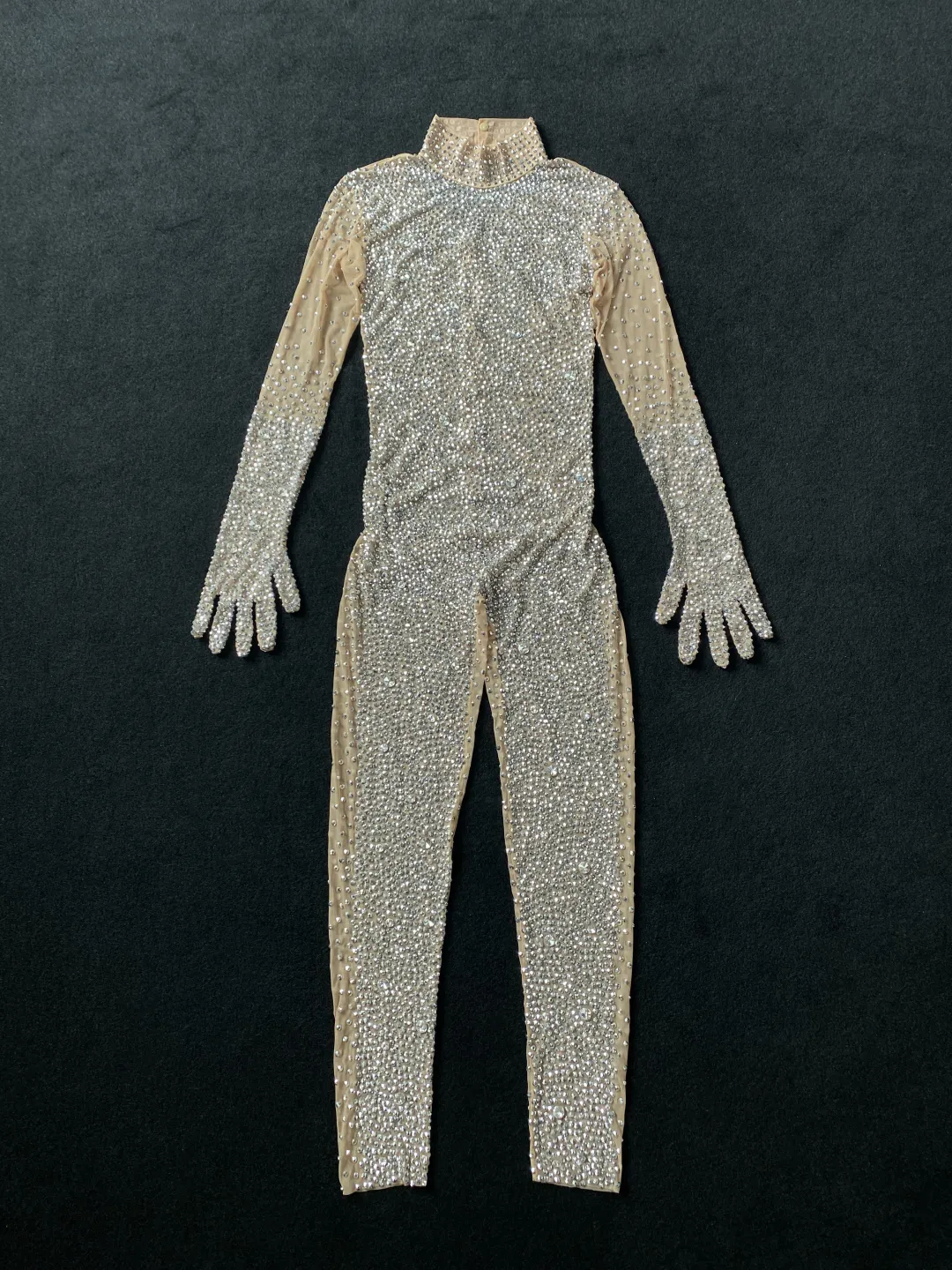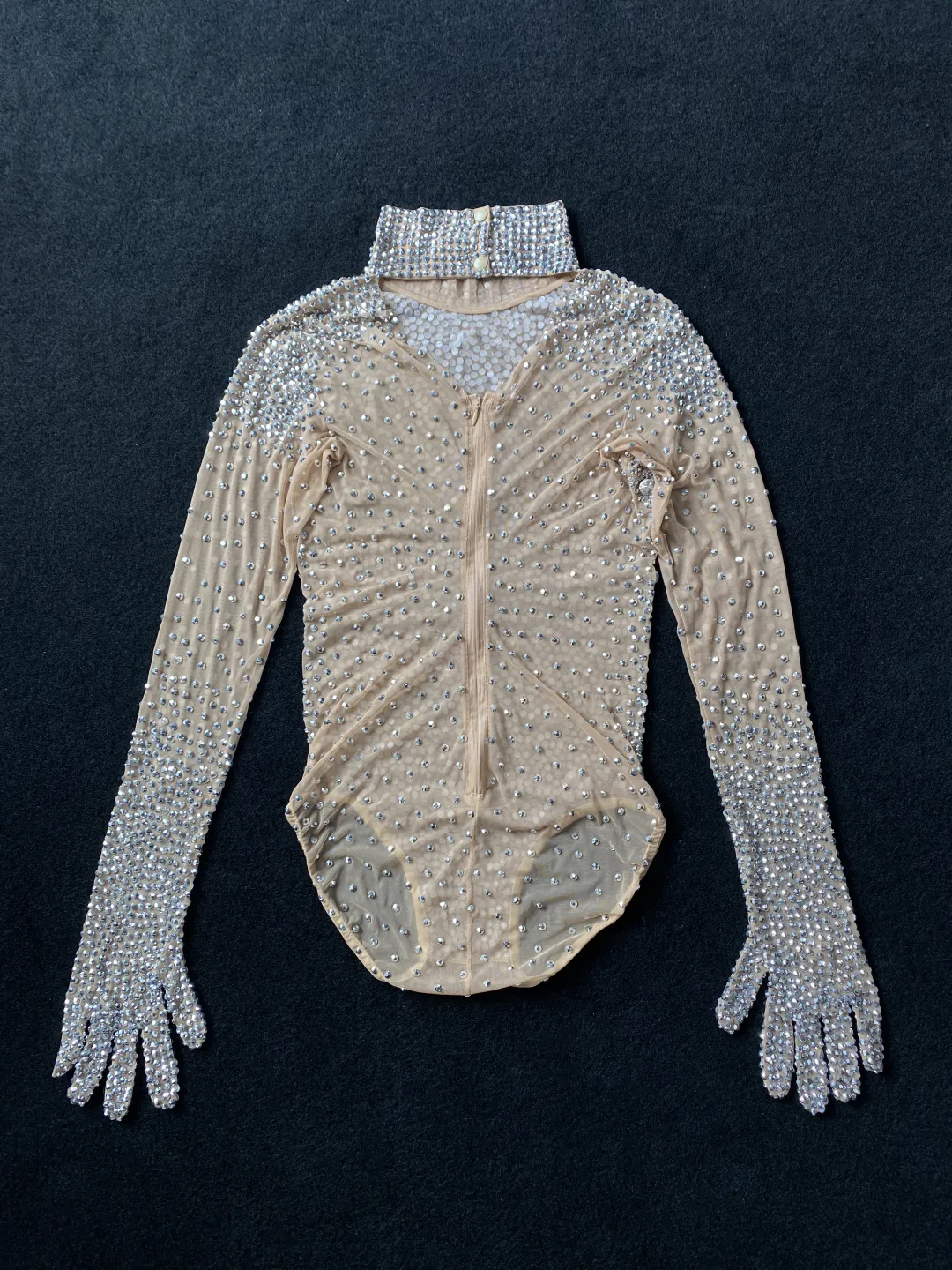 Sparkly Silver Rhinestones Leotard Women Birthday Nightclub Party Outfit Sexy Dance Bodysuit Performance Show Stage Wear