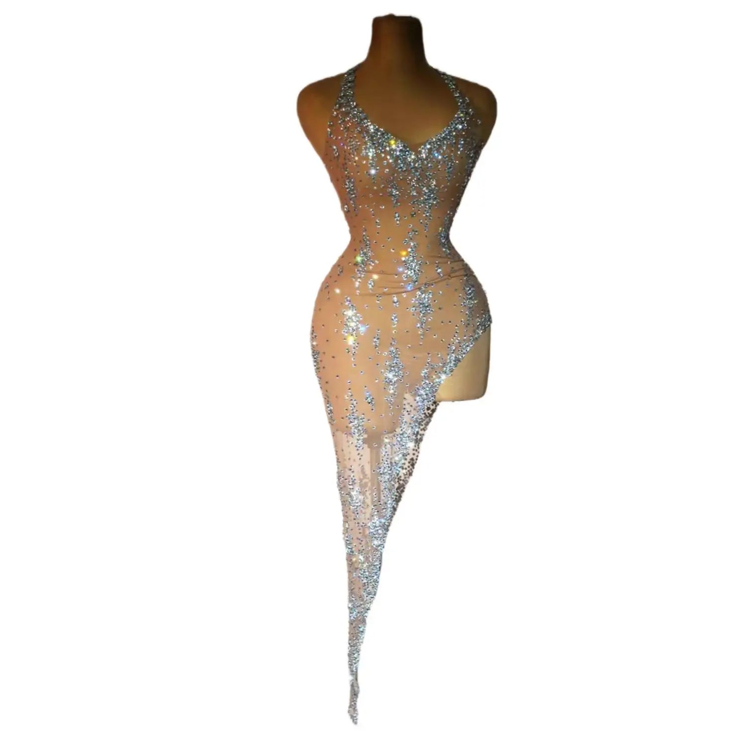 Introduce a dazzling, modern cocktail gown: theSparkly Silver Stone Cocktail Dress with Side Slit. This sleeveless, figure‑skimming dress features all‑over silver stones for high‑impact sparkle and a tasteful side slit for movement and sex appeal—perfect for prom, cocktail parties, evening events, and special celebrations.