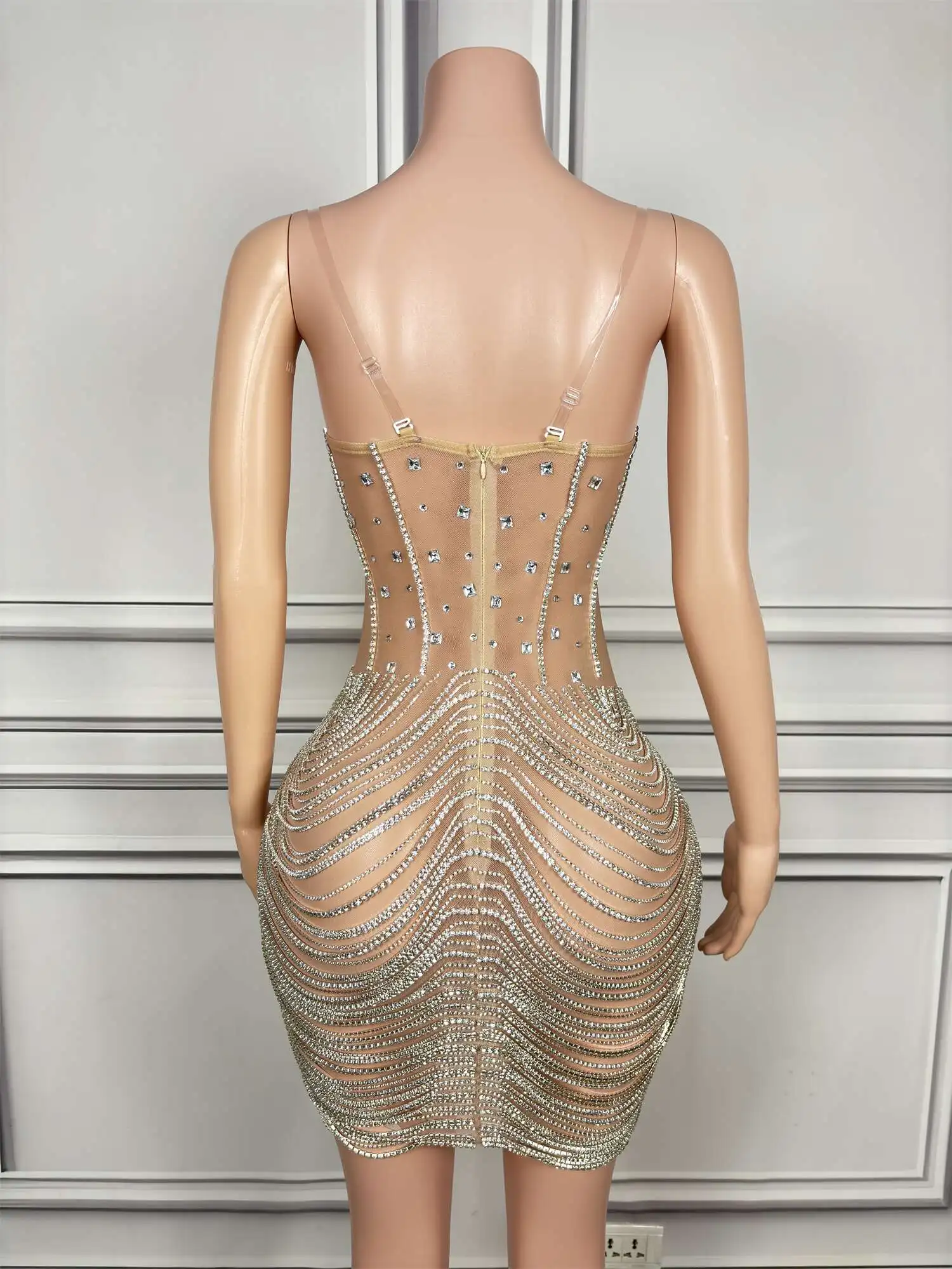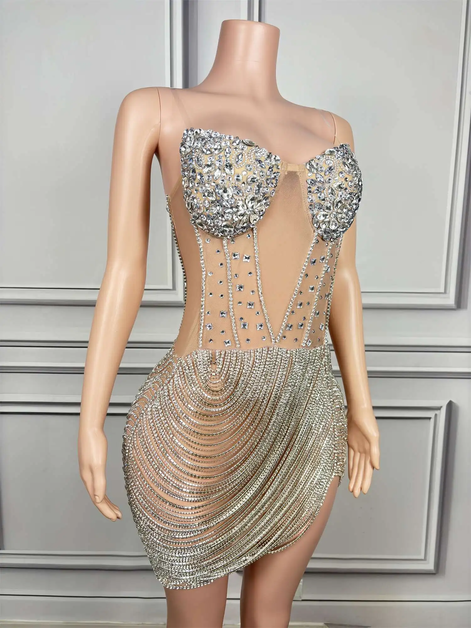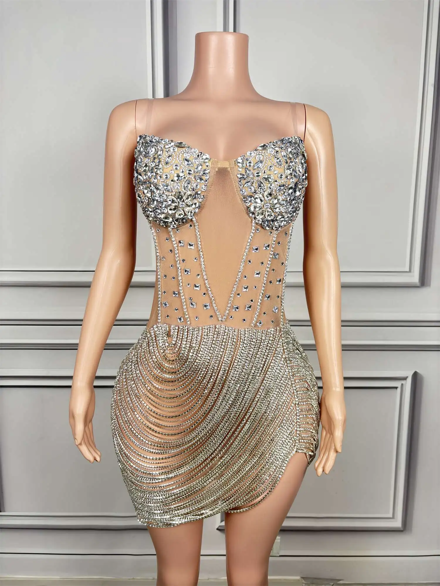 Sparkly Silver Stones Tassel Dress Bar Evening Women Dancer Fringes Dresses Birthday Prom Gowm Celebrate Outfit Xixingquan
