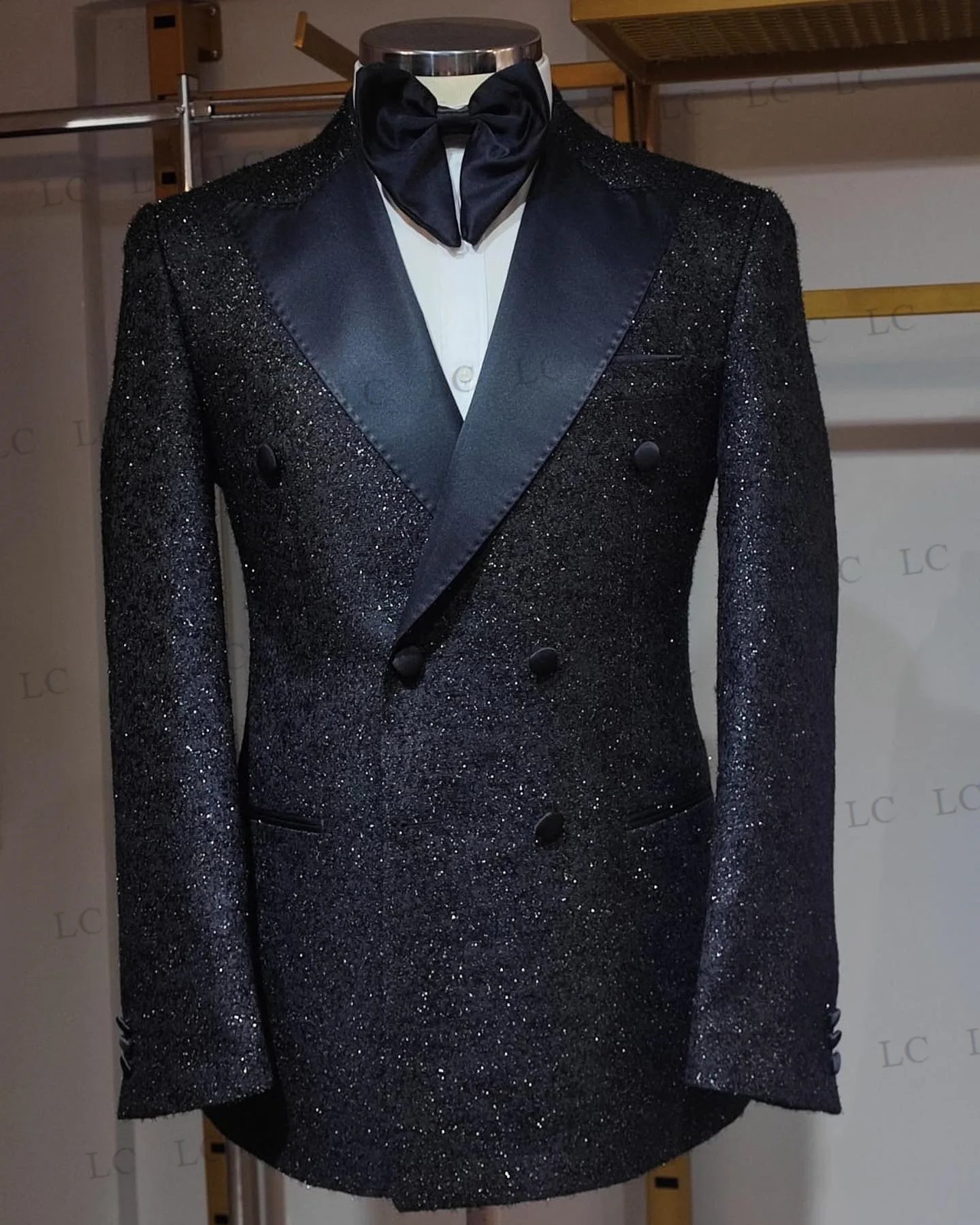 Sparkly Suits For Men 2 Pieces Blazer Pants Beads Satin Peaked Lapel Formal Work Wear Party Wedding Groom Plus Size Tailored