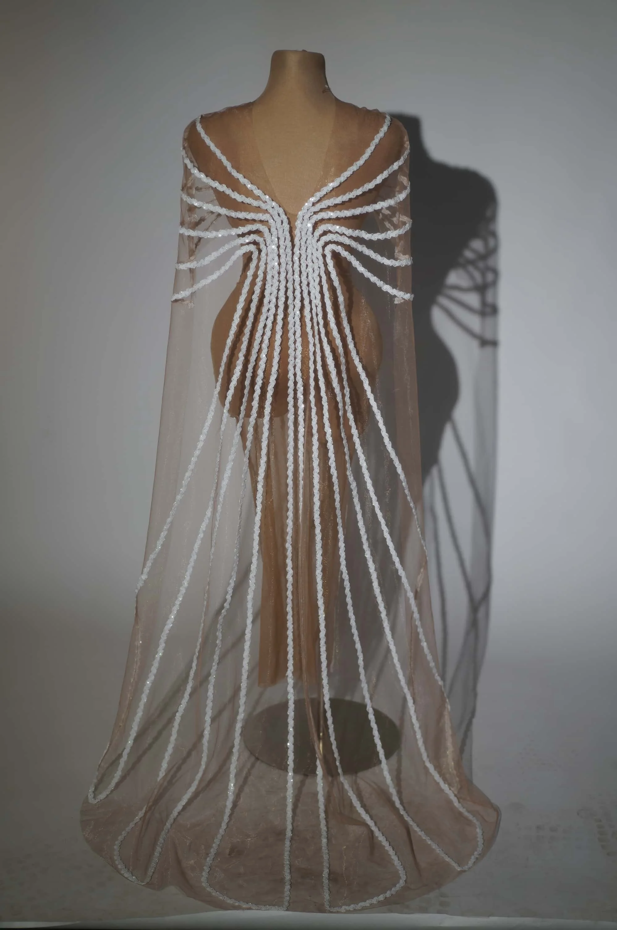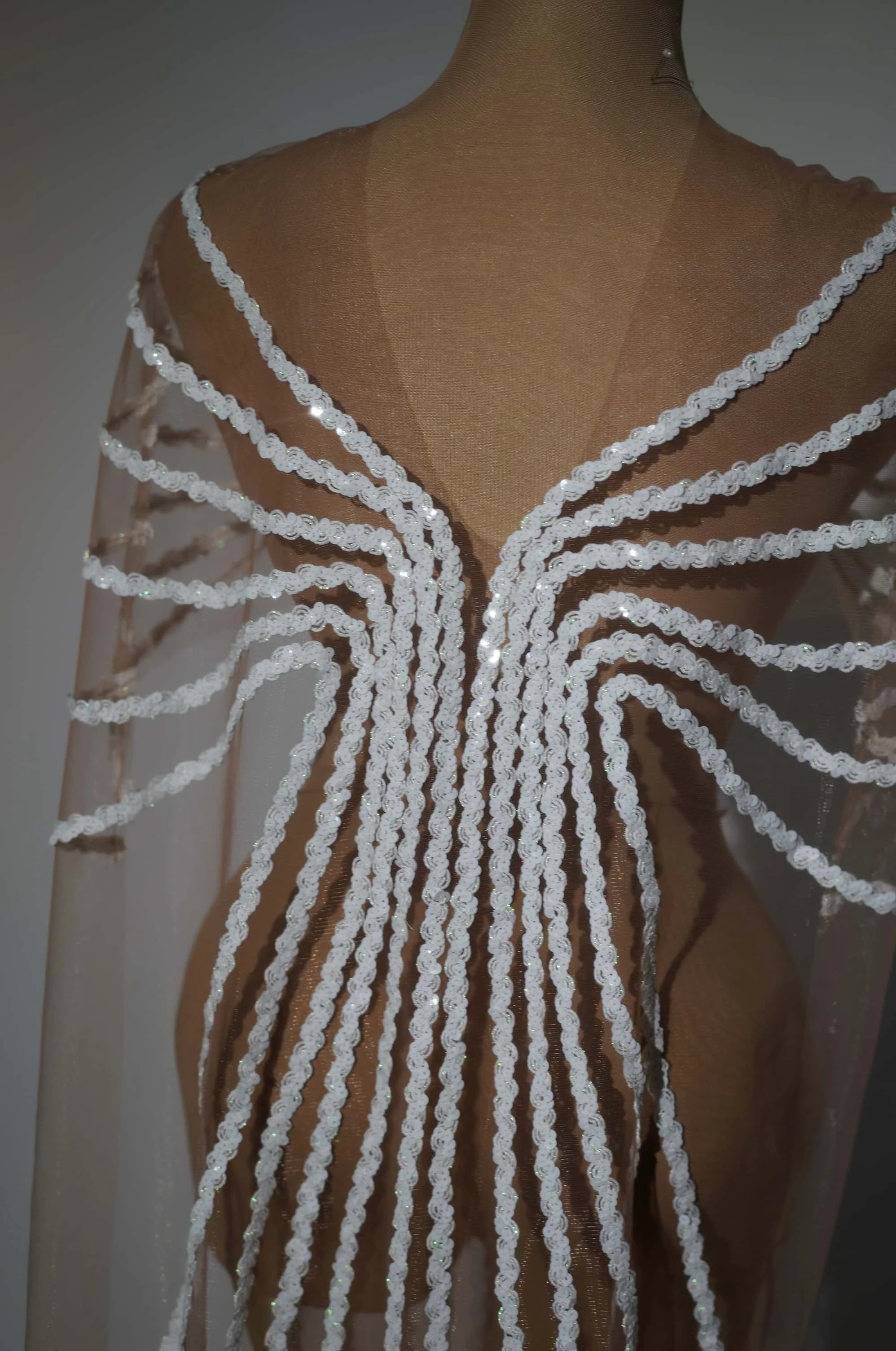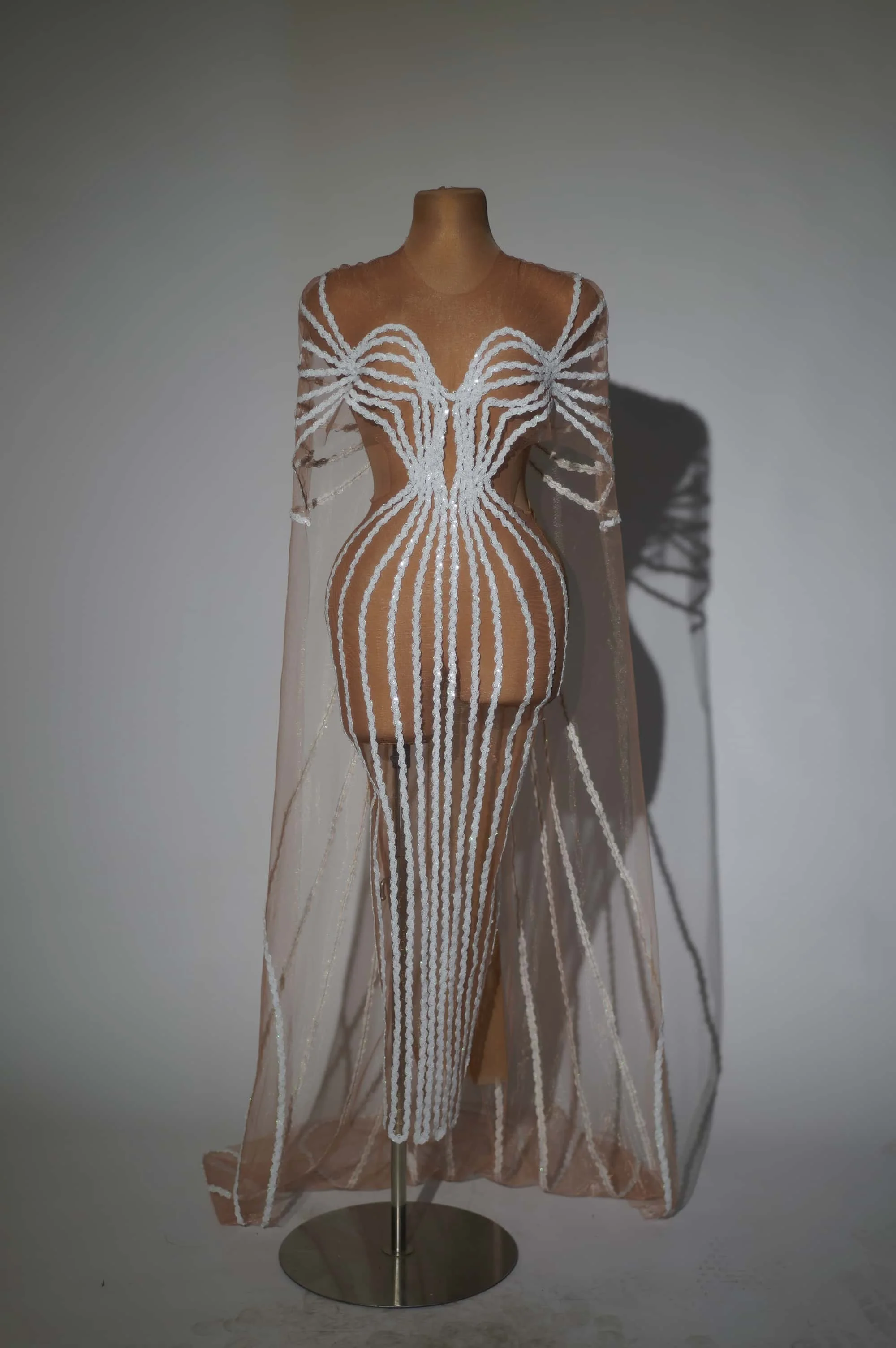 Sparkly White Sequins Cloak Dress Mesh Celebrate Evening Prom Birthday Long Dress Photo Shoot Singer Show Stage Wear Shiguang