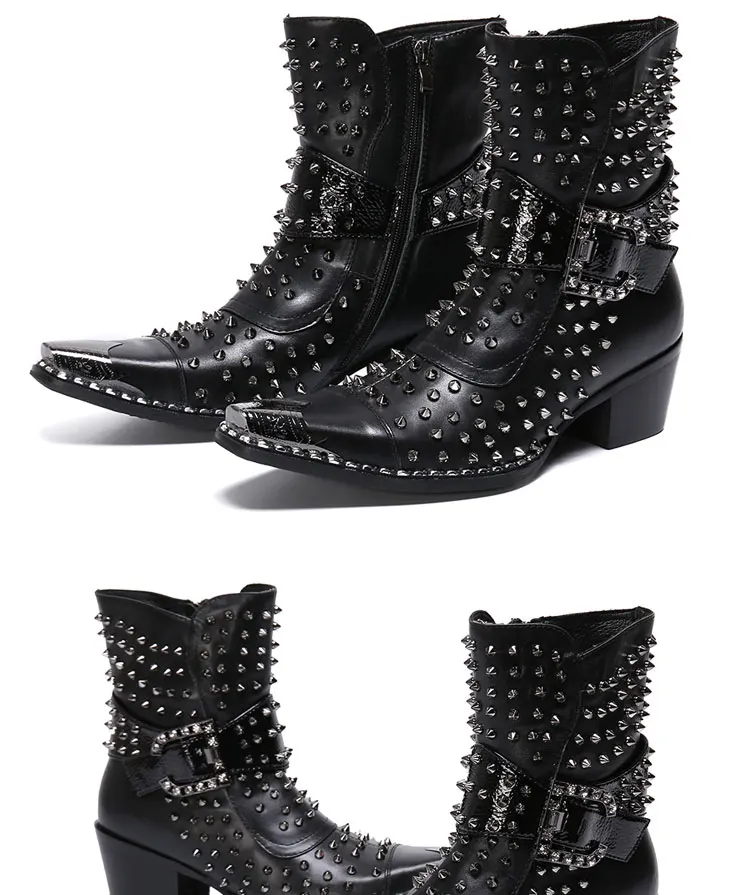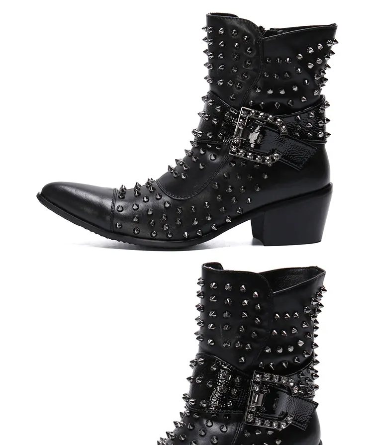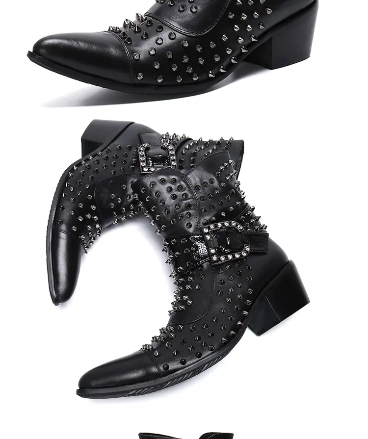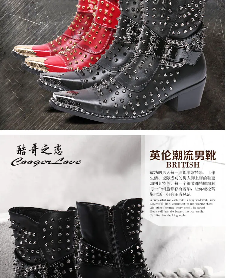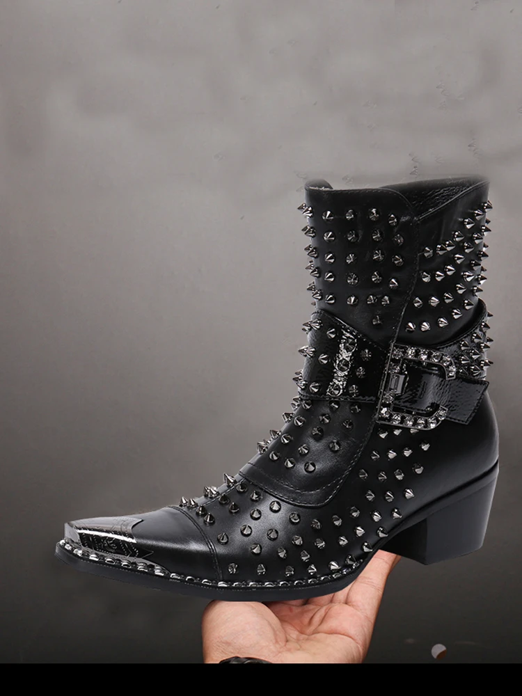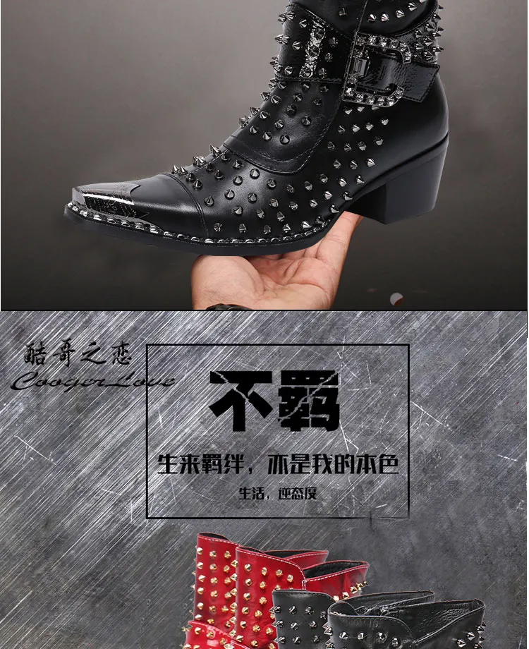 Spring and Autumn Fashion Singer Model Personality High Heel Pointed Leather Boots Men's Shoes Quality Rivet Men's Boots