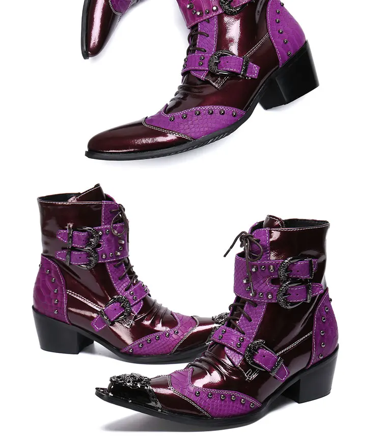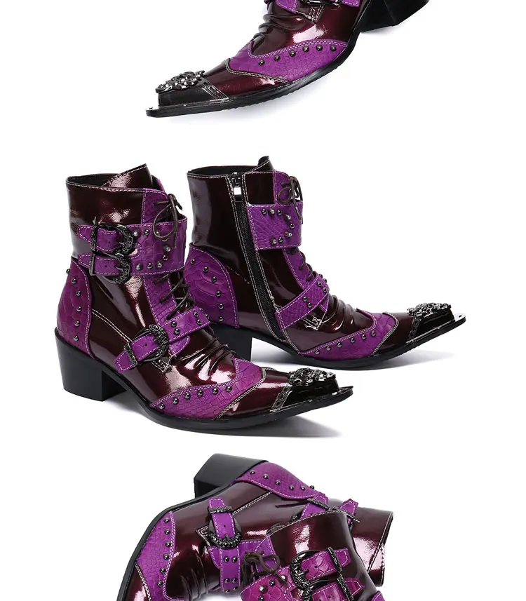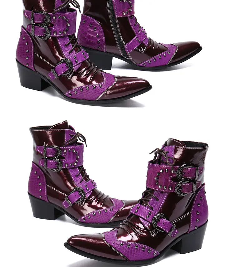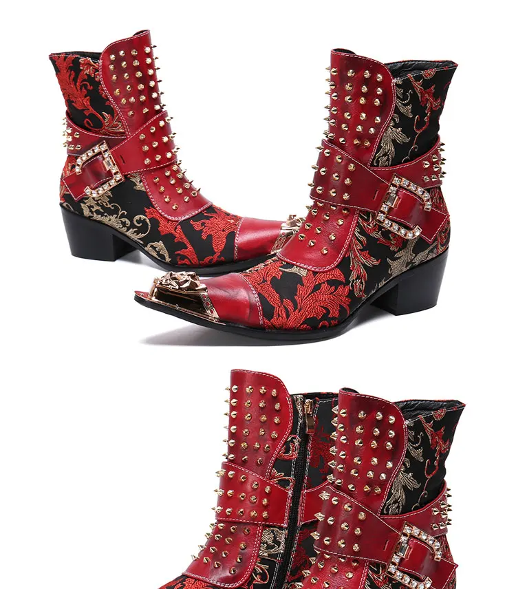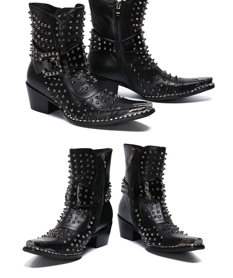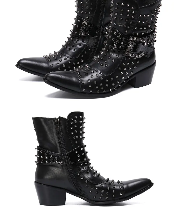 Spring and Autumn Fashion Singer Model Personality High Heel Pointed Leather Boots Men's Shoes Quality Rivet Men's Boots