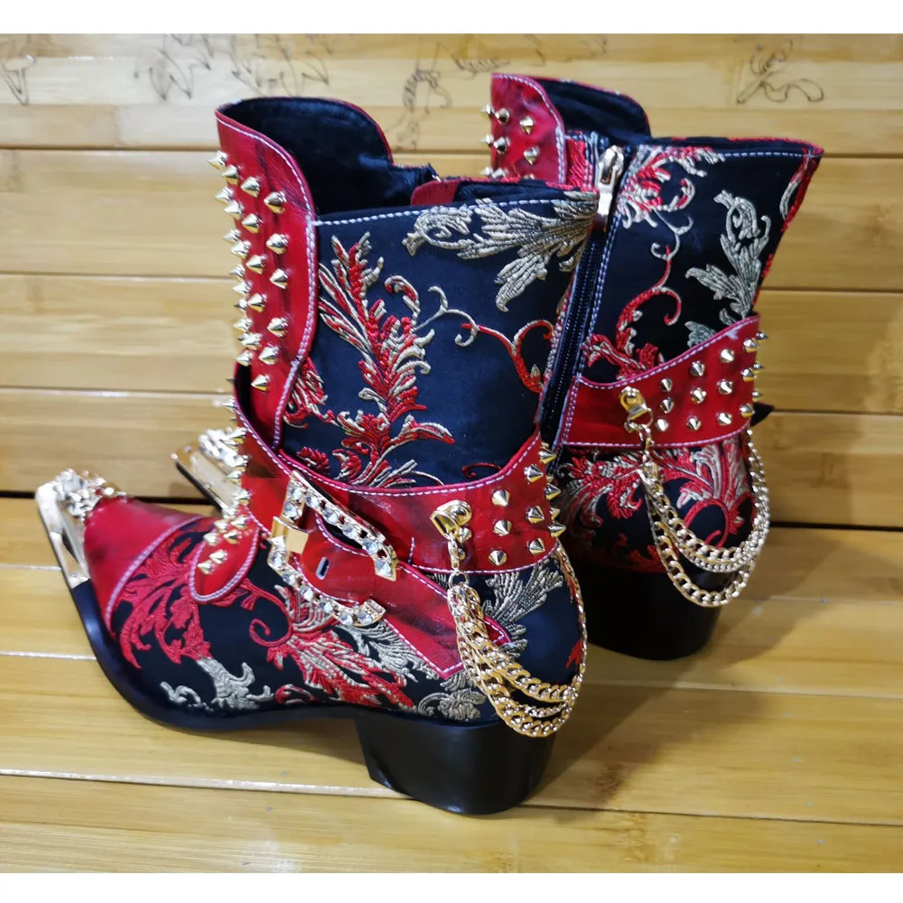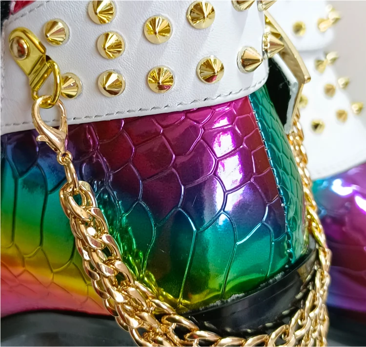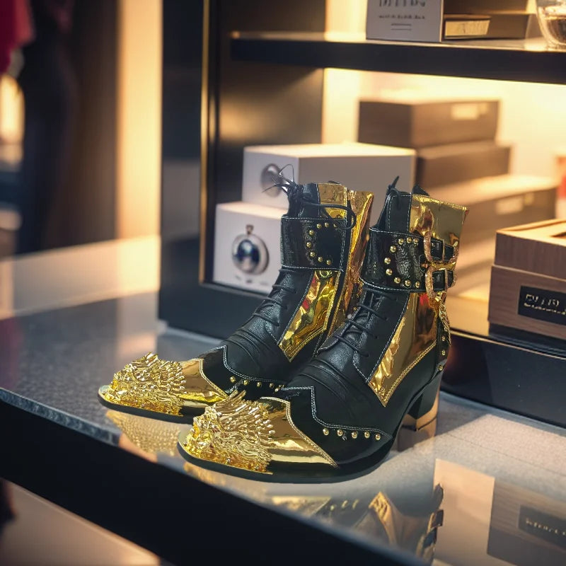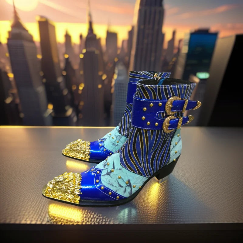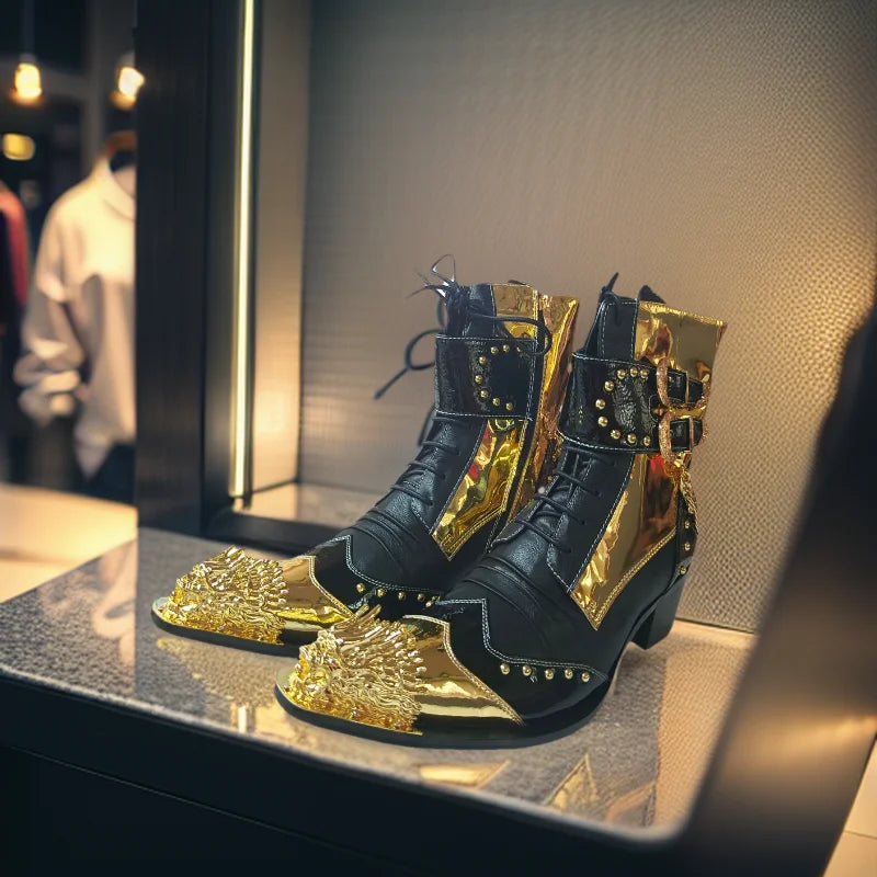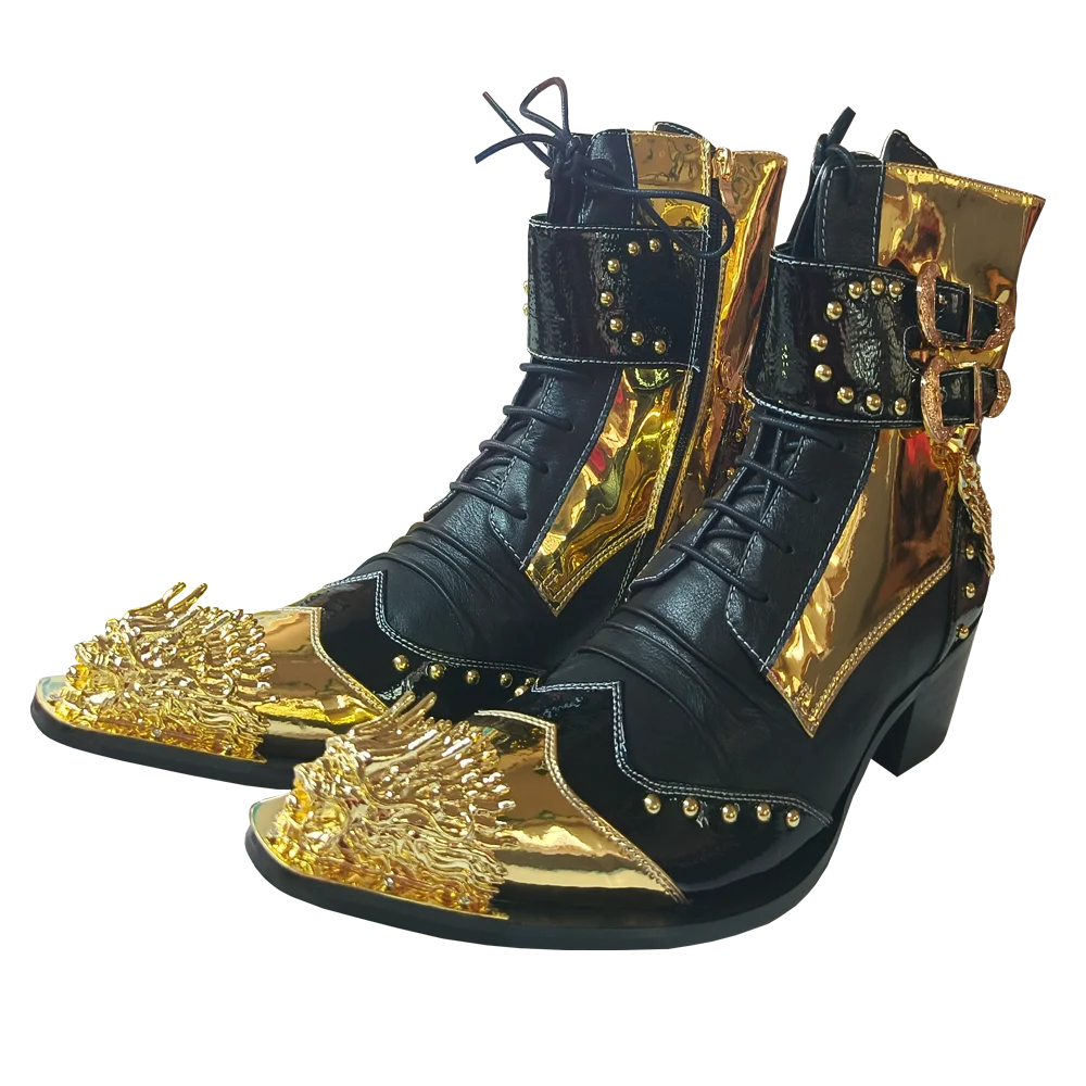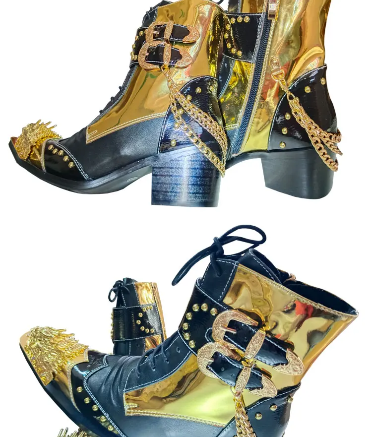 Spring High Heel Men's Boots Pointed Rivet Belt Buckle Genuine Leather Model Catwalk Luxury Increase Social Contact High Boots