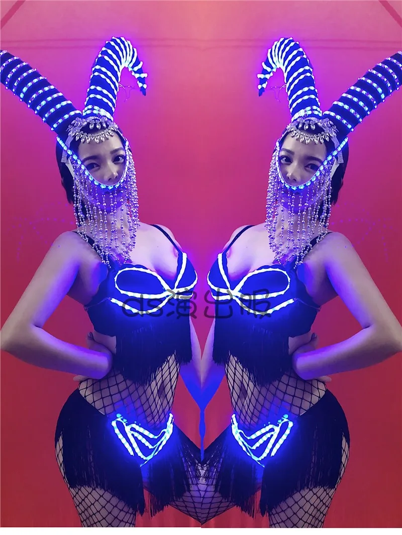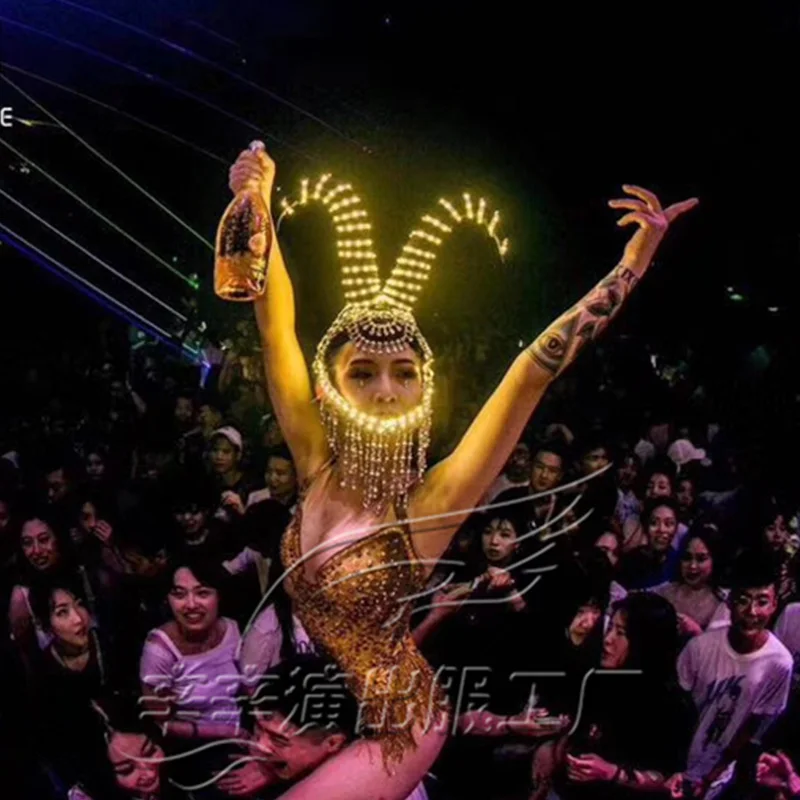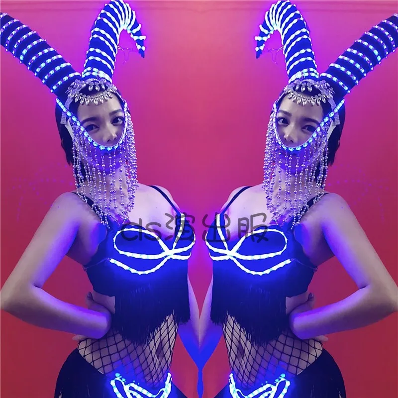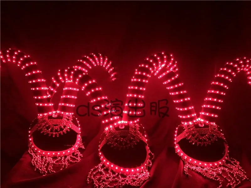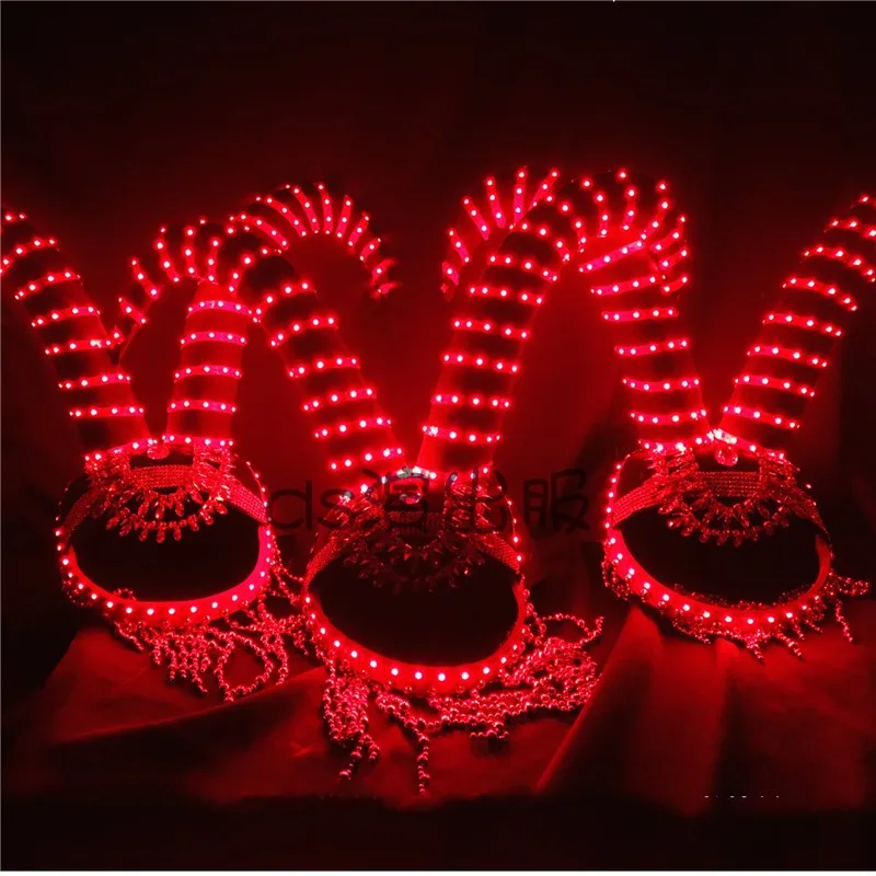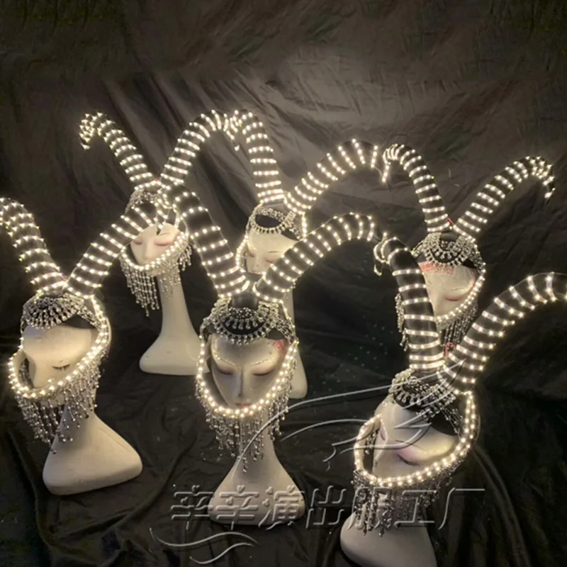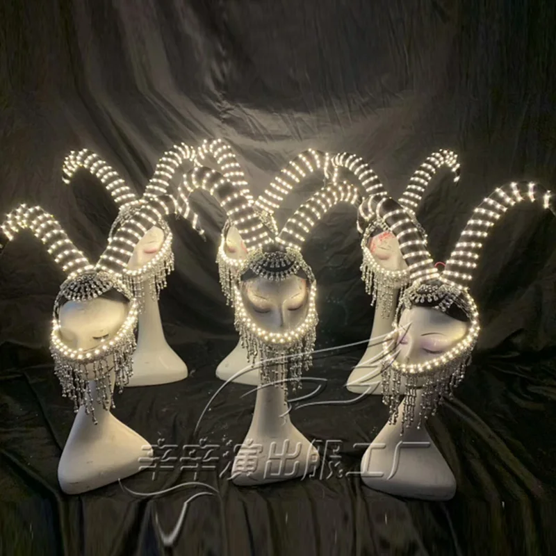 Stage Performance Wear Female Singer Props Male and Women Models Nightclub Bar Catwalk Show LED Luminous Horns Headdress